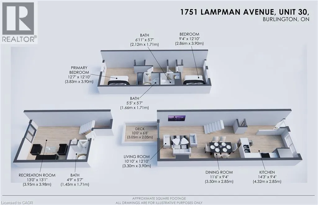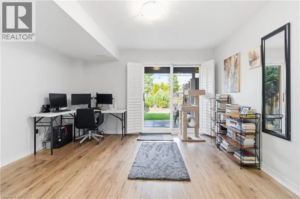 Appleby Line, East on Corporate Drove to Lampman Avenue Welcome to this beautifully maintained three-storey freehold POTL townhouse located in Burlingtonâs sought-after corporate district. Bright and spacious throughout, this carpet-free home offers a modern and functional layout perfect for professionals, small families, or commuters. Featuring two generously sized bedrooms and 2.5 bathrooms, this home provides both comfort and convenience. The stylish kitchen is equipped with stainless steel appliances and flows seamlessly into the main floor great room, which opens onto a private balcony overlooking the backyardâperfect for relaxing or entertaining. The lower level boasts a large recreation room with a walkout to the 40 foot deep backyard, offering additional living space ideal for a home office, gym, or media room. Enjoy the added convenience of direct access to the garage from the basement. Situated in a welcoming community, this home is just minutes from parks, shopping, dining, and all essential amenities. With easy access to major routes, itâs an excellent choice for commuters. A fantastic opportunity to own a move-in-ready home in one of Burlingtonâs most desirable areas! (id:27476)