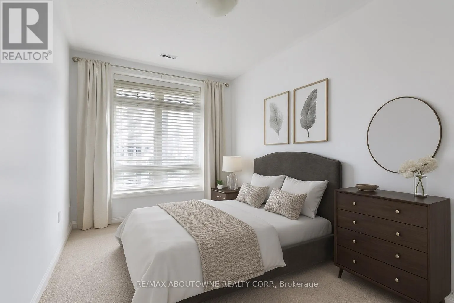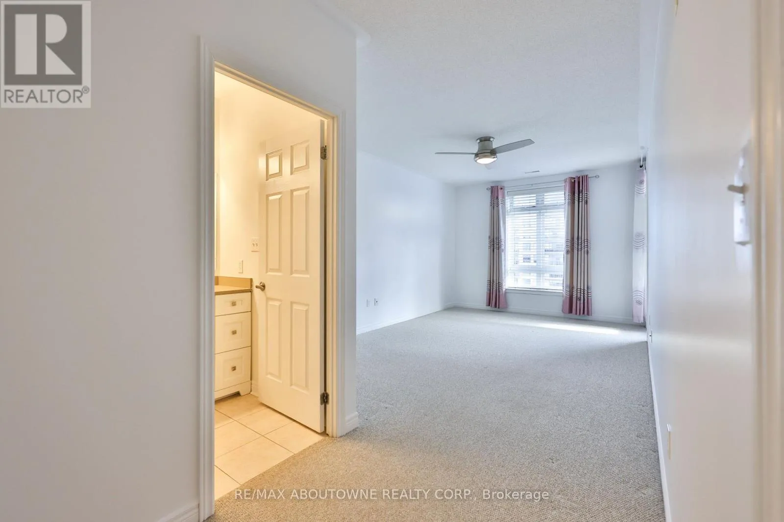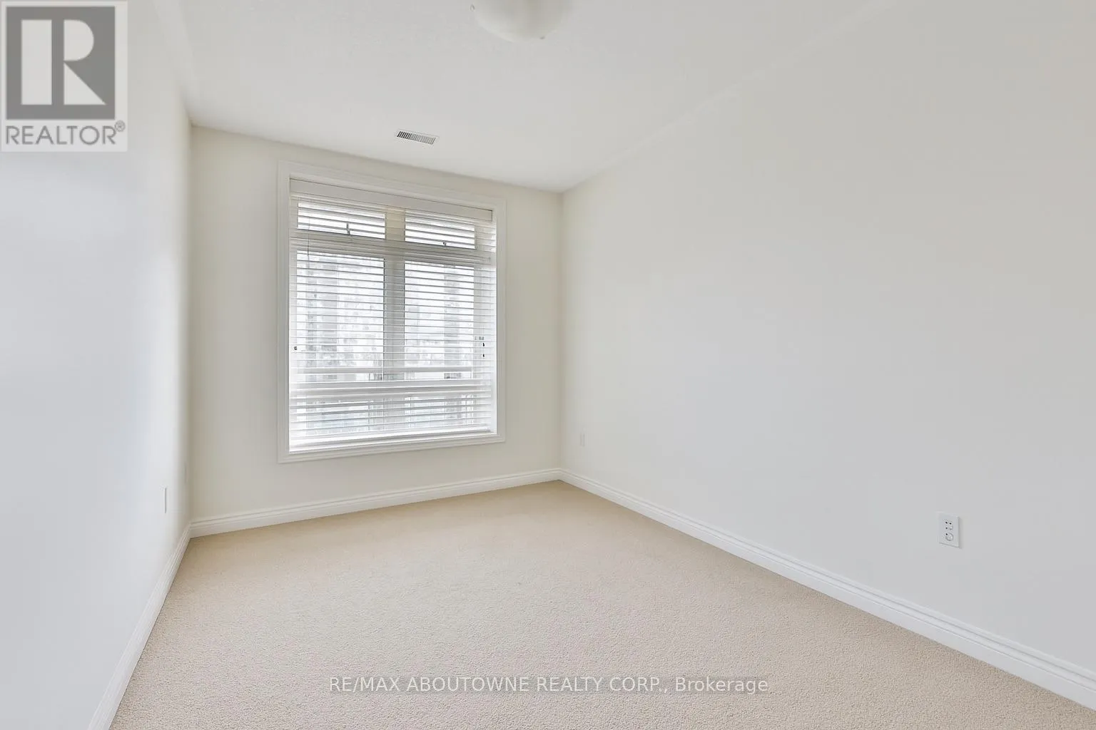 Appleby Line to Ironstone to Imperial Way Welcome to highly sought-after Appleby Woods, where comfort, convenience, and modern style come together. This beautifully upgraded 1,272 sq. ft. condo offers an exceptional layout with 2 bedrooms, 2 bathrooms, and a versatile den/office that can easily serve as a third bedroom. Perfectly positioned just steps to shopping, dining, and everyday necessities, this home delivers both lifestyle and convenience. Freshly painted and filled with natural light, the suite features a bright open-concept design, high ceilings, and elegant crown moulding. The updated kitchen impresses with new white cabinetry, granite counters, counter seating, stylish glass tile backsplash and accent wall, ample storage, and stainless steel appliances, including a new stove. The spacious primary bedroom includes a walk-in closet, a private 3-piece ensuite, and direct access to the large south-facing balcony-an ideal space for relaxing or entertaining. The second bedroom features brand-new carpeting, while the generous den offers flexible use options. A well-appointed 4-piece main bath and a convenient in-suite laundry room add to the home's appeal. This condo also includes 1 underground parking space and 1 locker for added convenience. Residents enjoy exceptional amenities: a party room, fitness center, residents' lounge, and games room. Appleby Woods is proudly energy-efficient, featuring solar panels and geothermal heating/cooling, offering comfort and sustainability. Experience elevated condo living in a vibrant, well-maintained community-welcome home to Appleby Woods. (id:27476)
