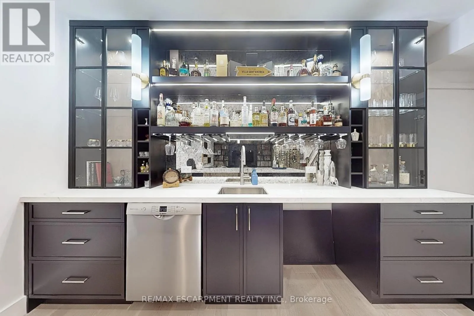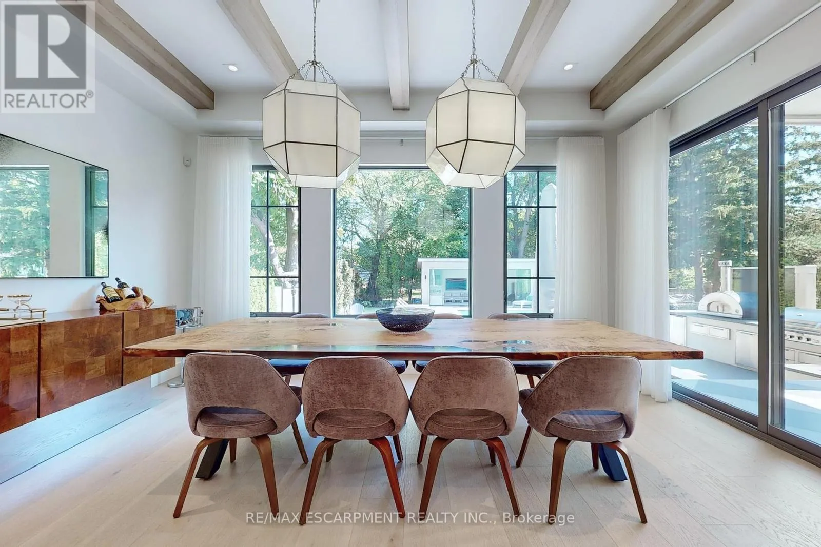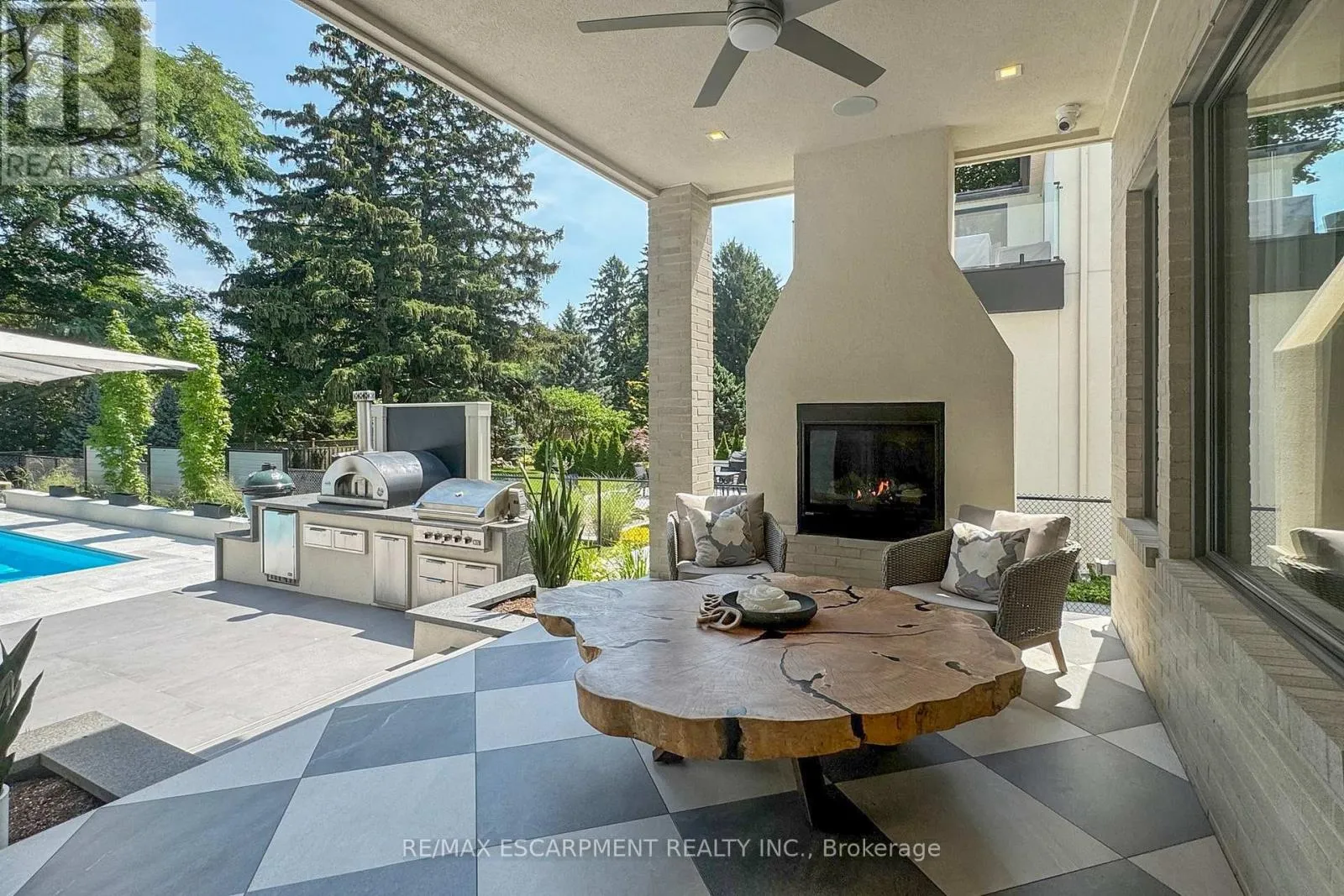 Cross Streets: Plains Rd W. ** Directions: South of Plains Road West. This stunning 2022 custom-built home sits on a deep 50 x 198 ft lot in Burlington's coveted Aldershot South, offering 4,700+ sq. ft. of refined living space and $500,000 in recent luxury upgrades. Designed for both everyday comfort and entertaining, the main level boasts soaring 10' ceilings, wide-plank oak floors, Control4 smart lighting, 8-zone Sonos system, and a warm modern great room with custom wall unit and sleek fireplace. The chef's kitchen features top-tier appliances, a built-in bar/servery with crystal glassware display, and seamless access to the covered patio with fireplace. Upstairs, the boutique-style primary retreat offers a private balcony and spa-inspired 5-piece ensuite with skylight, glass shower, soaker tub, heated towel rack, and automated heated toilet with bidet, complemented by three additional bedrooms and two baths. The fully finished lower level showcases a French-inspired custom bar, designer +/-60-bottle display, 1,100-bottle temperature-controlled wine cellar, spacious recreation area, and a private entrance ideal for an in-law or nanny suite. Outdoors, a resort-like oasis awaits: in-ground swimming pool with motorized cover, porcelain-tiled pool-deck, cabana lounge, Sonance speakers, landscape lighting, and a luxury outdoor kitchen with DCS grill, cabinetry, fridge, and Bella pizza oven. A 2 car garage with heated epoxy finished flooring and driveway parking for 8 completes this exceptional property. Close to top-rated schools, parks, waterfront, downtown Burlington, and GO access, this residence blends modern sophistication, smart-home technology, and resort-style living. Luxury Certified. (id:27476)