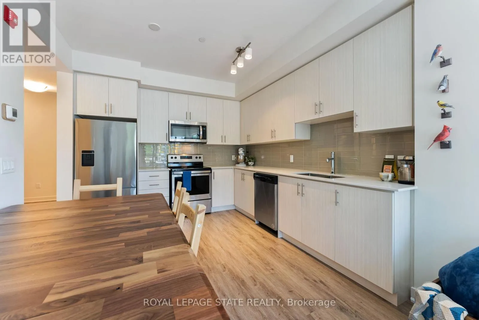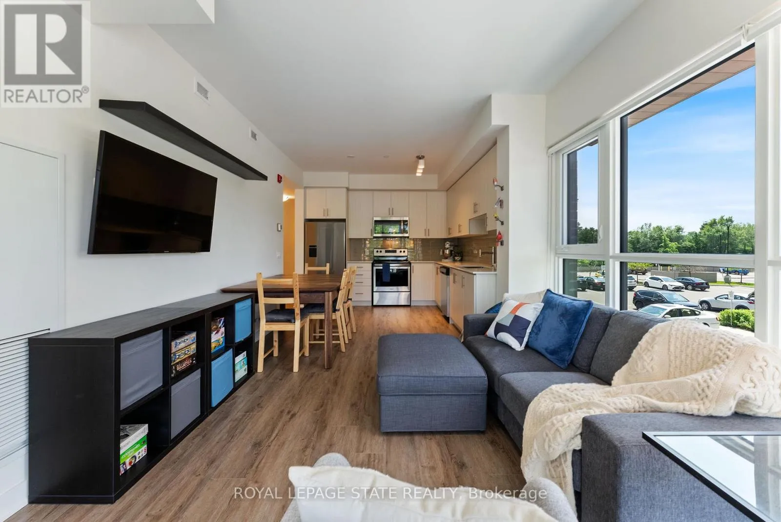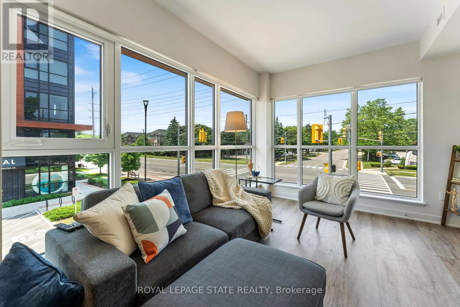Cross Streets: Plains /waterdown. ** Directions: Waterdown road and Plains Road East. Located in the heart of Central Aldershot, this stylish condominium offers the perfect blend of comfort and convenience. Situated in a new, well-maintained building, residents enjoy top-notch amenities including an exercise room, business center, party room, rooftop patio/garden, and ample visitor parking. The unit features an open-concept layout with tons of natural light, a modern kitchen complete with stainless steel appliances, generous storage, -ideal for everyday living and entertaining. The den is perfect for a home office, and the private balcony offers a great spot to unwind. Includes an owned underground parking space and owned storage locker. Just minutes to the Aldershot GO Station, major highways, RBG, downtown Burlington, shops, restaurants, parks, trails, and the lake. Also close to both Burlington and Hamilton hospitals, and McMaster University. In-suite laundry. (id:27476)