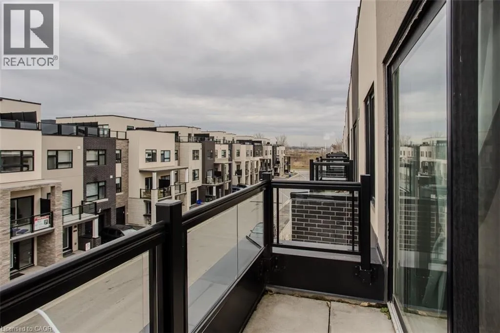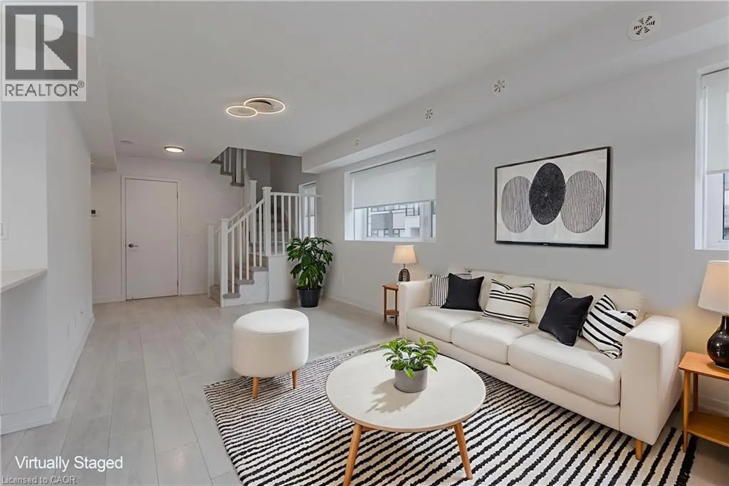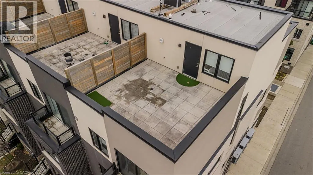 Located East of Waterdown Road off of Masonry Court Welcome to modern, low-maintenance living in a highly sought-after Burlington neighbourhood where convenience and lifestyle come together effortlessly. This upgraded 3-storey end-unit townhome offers underground parking, easy access to major highways, and the rare ability to walk to Aldershot GO â perfect for commuters and those who love staying connected. Just minutes away, enjoy the waterfront, Downtown Burlingtonâs vibrant dining scene, boutique shopping, scenic trails, and all your day-to-day essentials. Inside, the home has been freshly painted throughout and enhanced with upgraded light fixtures that elevate the contemporary feel. The open-concept layout is both functional and inviting, featuring light hardwood flooring and an airy flow ideal for everyday living and entertaining alike. The modern kitchen is a true highlight, complete with stainless steel appliances, quartz countertops, tile backsplash, and a stylish breakfast bar that opens into the bright dining area â perfect for hosting family dinners or enjoying relaxed mornings. The spacious living room offers plenty of space to unwind, while a convenient 2pc powder room rounds out the main level. Upstairs, the generous primary bedroom serves as a peaceful retreat with a spacious walk-in closet and private balcony, ideal for enjoying your morning coffee or winding down at the end of the day. An additional bedroom and a well-appointed 4pc main bath provide comfort and flexibility for guests, a home office, or personal space. Adding to its appeal is the expansive rooftop terrace â a standout feature offering the perfect setting for outdoor entertaining, summer evenings, or simply soaking up the sun in your own private escape. A move-in-ready opportunity that combines modern upgrades, thoughtful design, and an unbeatable location for a truly effortless lifestyle. (id:27476)