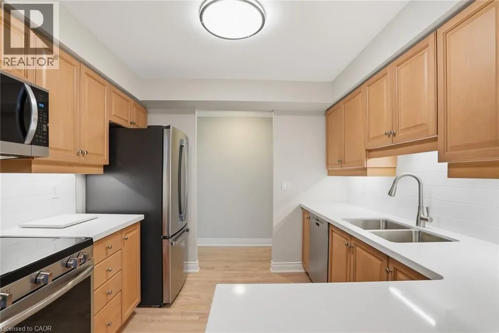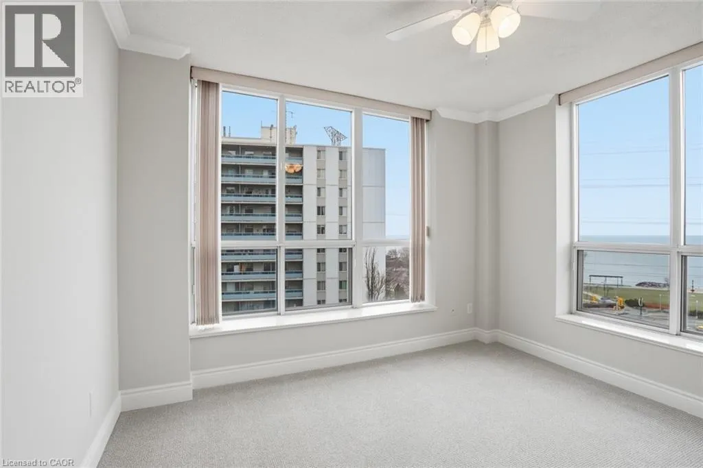 LAKESHORE RD & MAPLE AVE Do you enjoy breathtaking waterfront views and beautiful sunrises? Welcome to luxury living at Spencerâs Landingâone of Burlingtonâs most sought-after condo residences. Perfectly situated just steps to vibrant downtown Burlington and the Great Lakes Waterfront Trail, this quiet 7th-floor suite offers an exceptional lifestyle. This spacious 2+1 bedroom unit features an updated eat-in kitchen complete with brand new stainless steel appliances, new quartz countertops, new backsplash, and a second private balcony showcasing stunning lake views. The primary retreat offers serene water vistas, a large walk-in closet, new carpeting, and a beautiful ensuite with shower and jetted tub. The expansive living room with refinished hardwood floors is filled with natural light and opens to your private balcony, where you can enjoy sweeping 180º panoramic waterfront views. A versatile corner den provides the perfect space for a home office or potential third bedroom. The second bedroom is generously sized with new carpeting and is conveniently located next to a full bathroom. Additional features include in-suite laundry, one underground parking space, and a storage locker. Residents enjoy premium amenities including concierge/security, indoor pool, sauna, whirlpool, party room, fitness centre, bike storage, hobby room, outdoor BBQ area with gazebo, and an overnight guest suite. Rent includes heat, hydro, water, and cable/internet. Donât be TOO LATE® (id:27476)