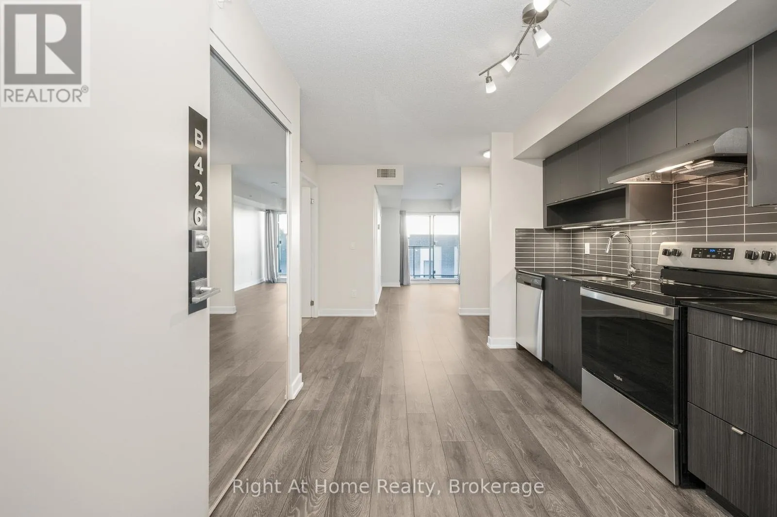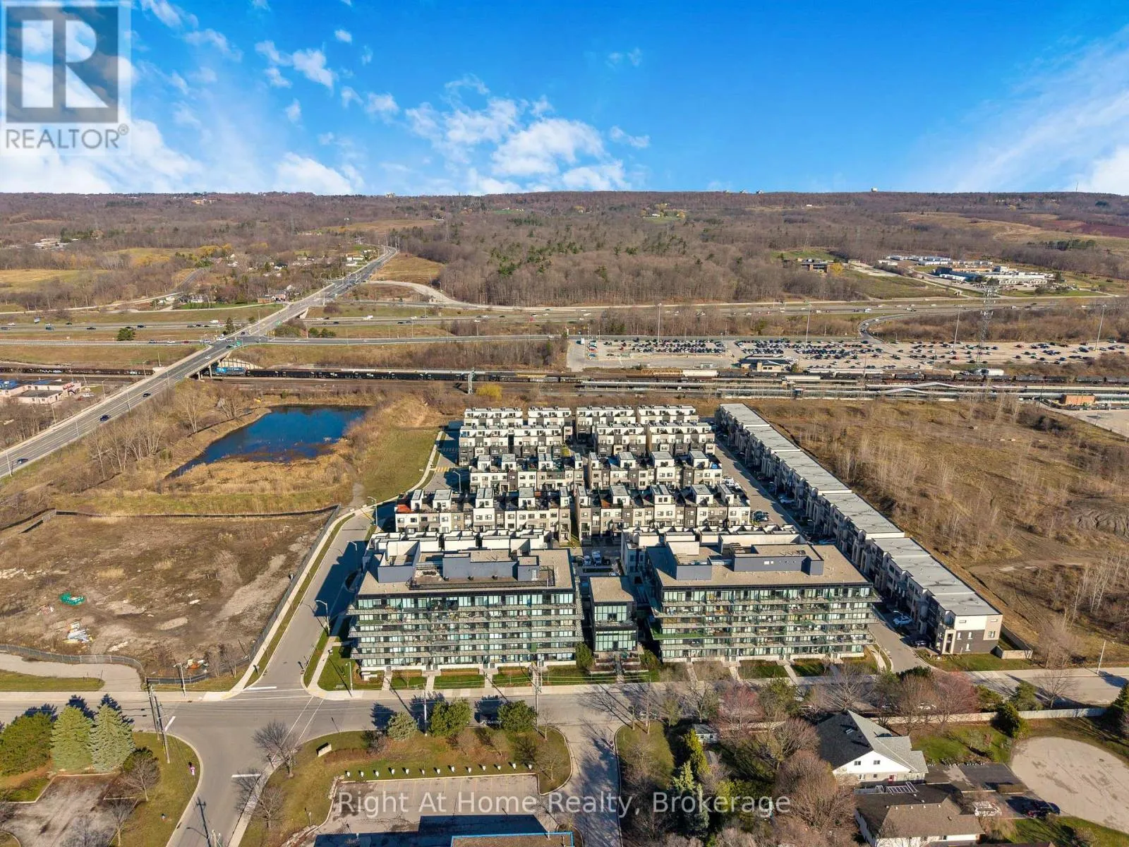 Cross Streets: Masonry Ct and Cooke Blvd. ** Directions: From the QEW Go South on Waterdown Road and then East on Masonry Ct. Bright and modern, this 1 bedroom + Den condo is just a short 5-minute walk to Aldershot GO, Offering modern luxury and unbeatable commuter convenience. Open-concept layout features full-sized stainless-steel appliances, sleek finishes, and gorgeous large windows that flood the unit with natural light. Enjoy the spacious private balcony for the evening sunsets with north-west views. The unit offers a spacious single bedroom with one 4pc bath. Plenty of storage between the large closet in the foyer and bedroom. Beautiful modern building amenities such as a fitness centre, rooftop terrace, party room, and concierge available to assist and accept your packages. Conveniently located near major highways (403, QEW) and a short drive to Malls, restaurants, parks, golf courses, and Lake Ontario. Includes one parking space and in-suite laundry. (id:27476)