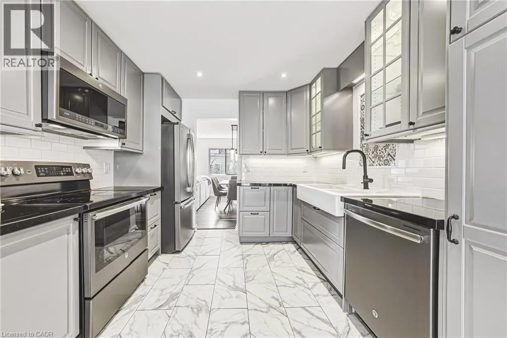 Upper Middle Rd & Walkers Line This beautifully updated townhome offers 3 spacious bedrooms, 1.5 bathroom and private backyard! Situated in the sought-after Millcroft community, this unit boasts almost 1500 square feet of living space. The home has a great open concept floorplan with plenty of natural light and beautiful finishes / fixtures throughout. The main level features a large living/dining room combination with a gas fireplace, smooth ceilings and access to the backyard deck. The kitchen offers ample cabinetry, granite & wood counters stainless steel appliances and a Juliette balcony! There is also main floor laundry and a 2-piece bathroom! The upper level includes 3 generous sized bedrooms and an updated 4-piece bathroom. There is also a single car garage! This home is move in ready and is steps from shopping, top rated schools, parks and all amenities! (id:27476)