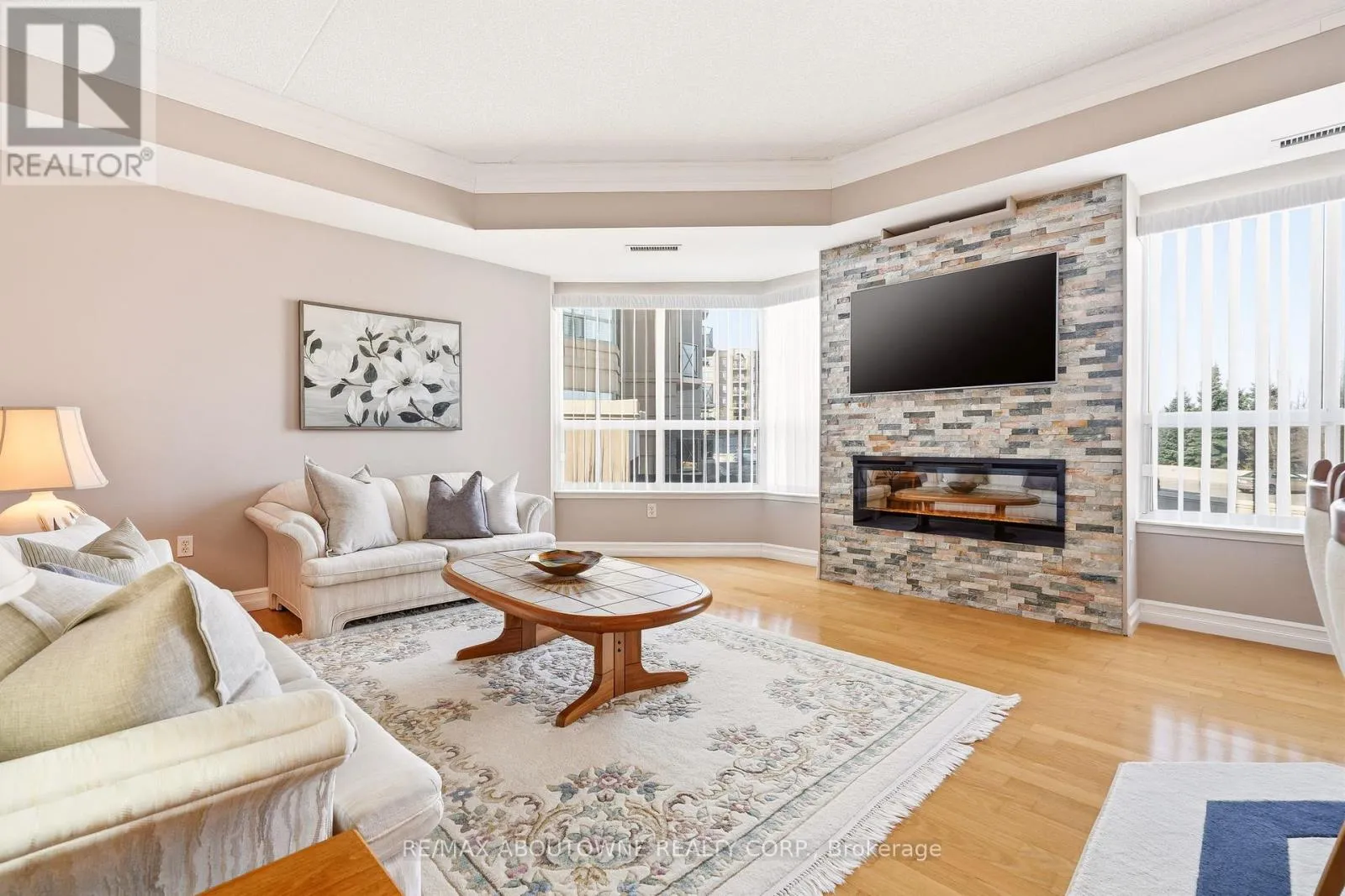 Brant St. & Amherst Heights Dr. RENOVATED! This exceptionally well-maintained 2-bedroom, 2-bathroom suite with a covered terrace offers the move you've been waiting for. Featuring approximately XX sq. ft. of beautifully updated living space and many accessible features, this home boasts a spacious, open-concept layout, quality finishes, and soaring 9-foot ceilings throughout. A welcoming, oversized foyer with wall-to-wall closets leads into a wide hallway connecting all principal rooms. The eat-in kitchen is thoughtfully designed with ample cabinetry, granite countertops, and stainless steel appliances-perfect for everyday living and entertaining alike. The bright and expansive living and dining areas provide plenty of space to relax or host guests. Both bedrooms are generously sized, complemented by two full bathrooms (including a primary ensuite) (ensuite reno 2017, secondary bathroom 2023), thoughtfully equipped with safety bars for added comfort. A full-size laundry room adds to the home's exceptional functionality and storage. Enjoy the convenience of two parking spaces (one underground and one just steps from the front entrance), a locker, and access to fantastic building amenities including a gym, party room, gazebo, BBQ area, and visitor parking. Ideally located close to Costco, golf courses, parks, shopping centres, restaurants, transit, and with easy highway access-this is a fantastic opportunity to call The Balmoral home (id:27476)