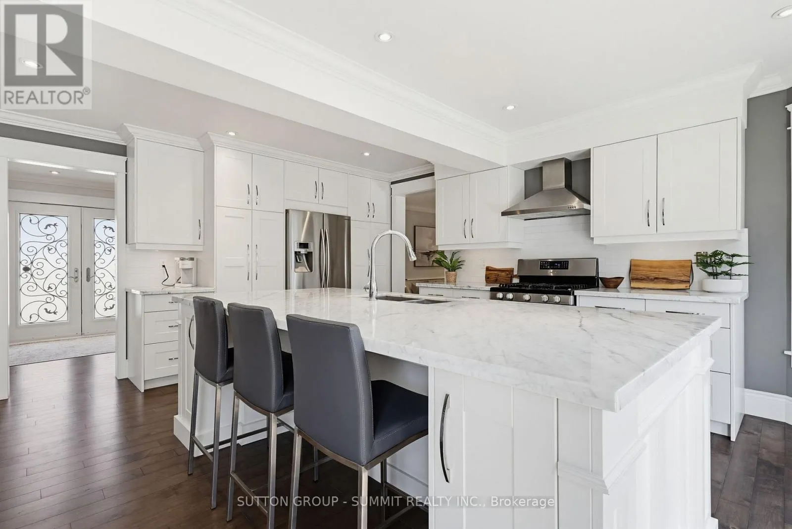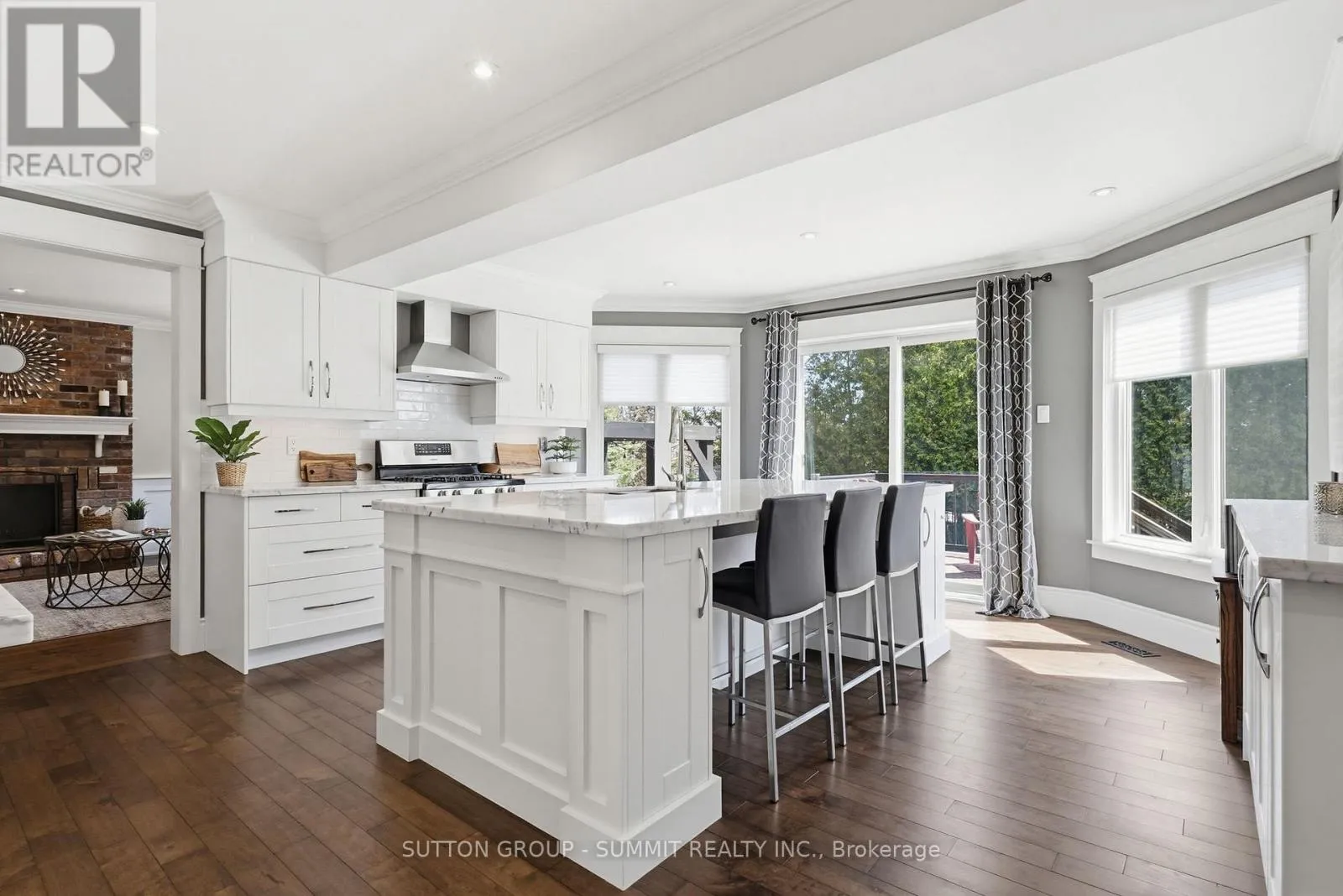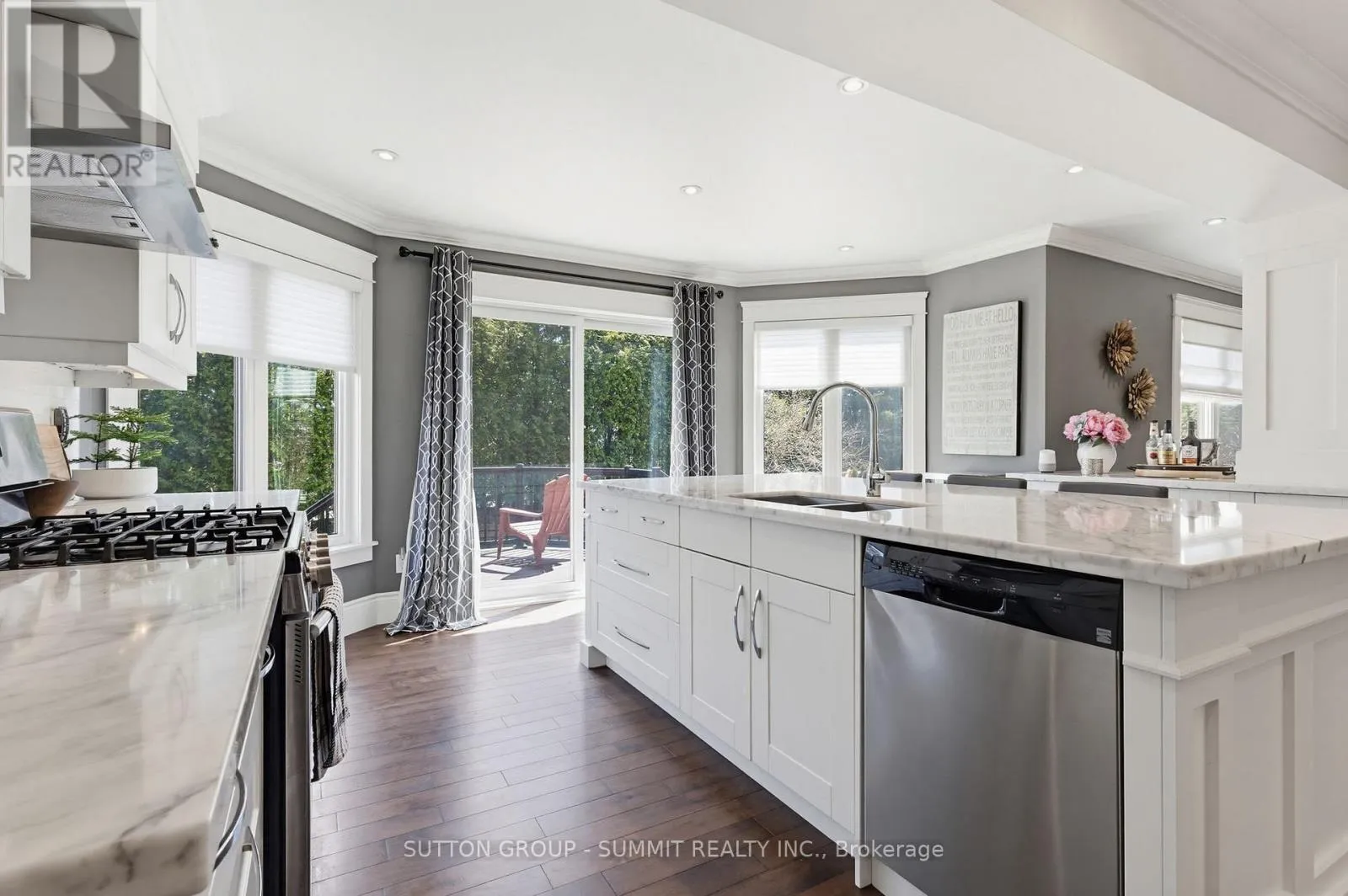 Cross Streets: Kerns/Winterberry. ** Directions: North Service Road to Kerns to Winterberry. Welcome to this beautifully maintained home in the highly sought-after Tyandaga neighbourhood of Burlington, set on a quiet, family-friendly street and backing onto a ravine for added privacy. With excellent curb appeal and a double car garage, this home offers a perfect blend of space, comfort, and setting. The main floor features an open concept layout with separate living, dining, and family rooms, ideal for both everyday living and entertaining. The living room offers a bright, welcoming space with a gas fireplace, while the family room provides a relaxed setting with a wood-burning fireplace. Hardwood flooring runs throughout, complemented by California shutters, crown moulding, large baseboards, and pot lights throughout the main floor. The updated kitchen features an oversized centre island, stylish backsplash, and a seamless flow into the dining area. A sliding glass door leads to the backyard, filling the space with natural light and creating easy indoor-outdoor living. Main floor laundry adds convenience. Upstairs offers four generously sized bedrooms, providing comfortable accommodations for families of all sizes. The primary suite serves as a private retreat, featuring dual closets and a spacious ensuite complete with double sinks, a separate shower, heated floors, and a deep soaker tub. The additional bedrooms are bright and spacious, each offering ample closet space and flexibility for children, guests, or a dedicated home office. The finished basement extends the living space with a large recreation area and a separate bedroom, ideal for guests, a home office, or extended family, along with additional space for storage. The backyard is a standout, set on a larger lot backing onto a ravine, offering a private and peaceful setting with mature trees and frequent wildlife. Enjoy a heated pool and a low-maintenance two-tier composite deck, perfect for relaxing, entertaining, and summergatherings. Close to schools, parks, golf, shopping, and major highways. (id:27476)