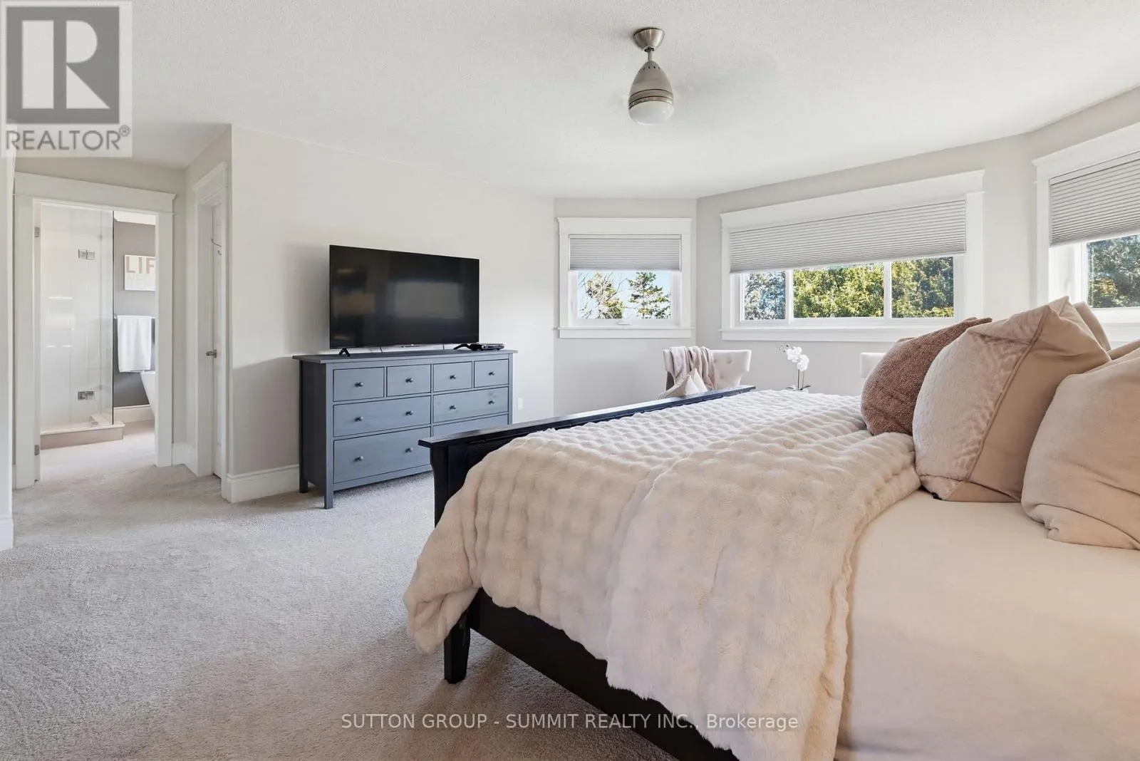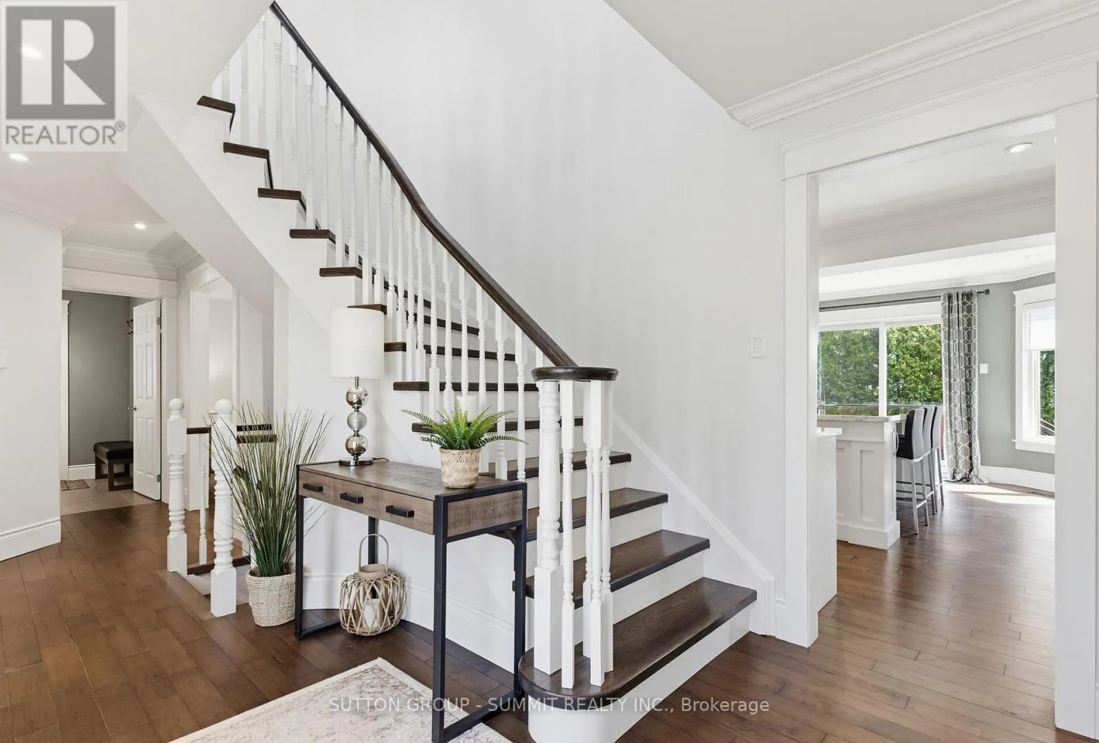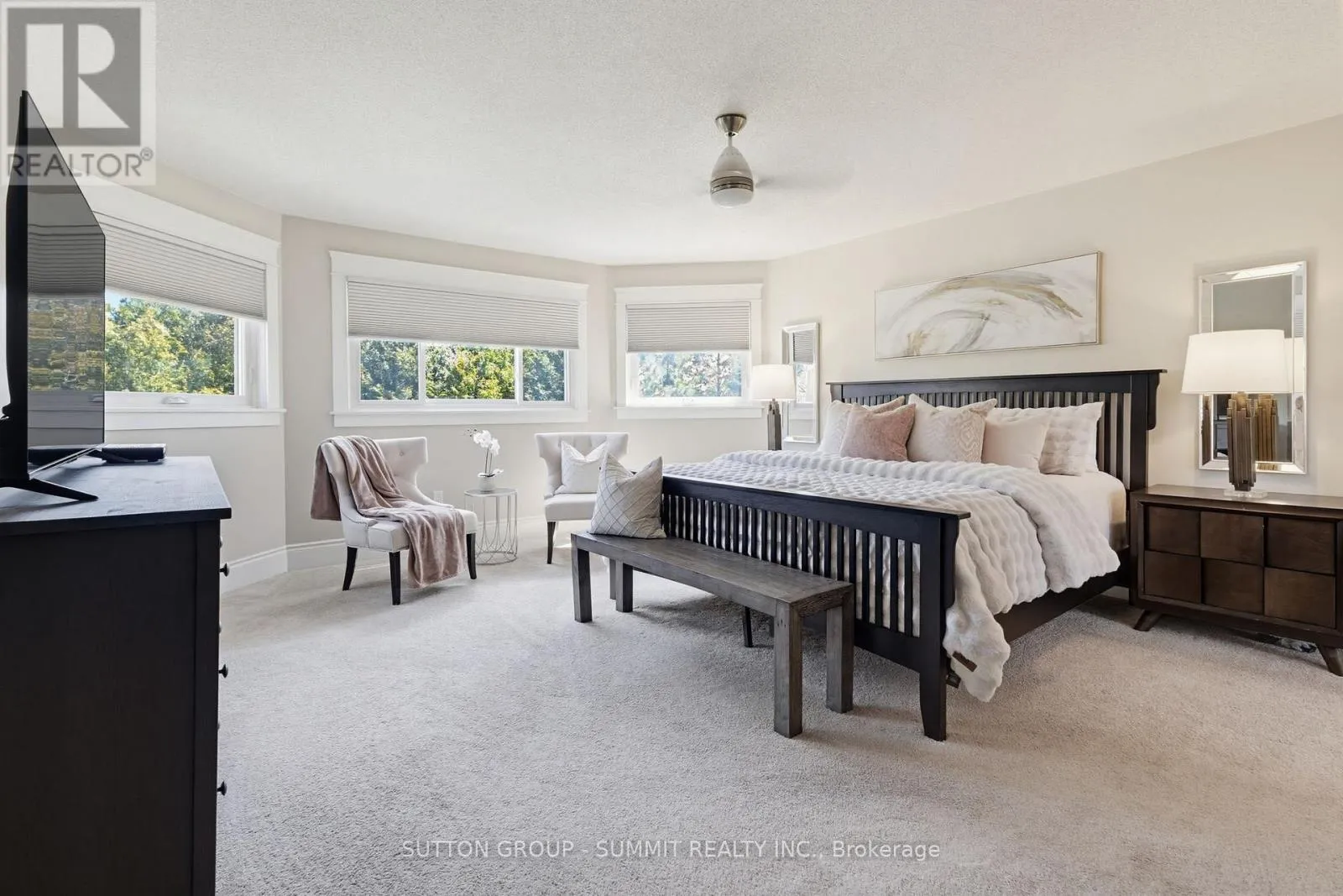 Cross Streets: Kerns/Winterberry. ** Directions: North Service Road to Kerns to Winterberry. Welcome to this beautifully maintained home in the highly sought-after Tyandaga neighbourhood of Burlington, set on a quiet, family-friendly street and backing onto a ravine for added privacy. With excellent curb appeal and a double car garage, this home offers a perfect blend of space, comfort, and setting. The main floor features an open concept layout with separate living, dining, and family rooms, ideal for both everyday living and entertaining. The living room offers a bright, welcoming space with a gas fireplace, while the family room provides a relaxed setting with a wood-burning fireplace. Hardwood flooring runs throughout, complemented by California shutters, crown moulding, large baseboards, and pot lights throughout the main floor. The updated kitchen features an oversized centre island, stylish backsplash, and a seamless flow into the dining area. A sliding glass door leads to the backyard, filling the space with natural light and creating easy indoor-outdoor living. Main floor laundry adds convenience. Upstairs offers four generously sized bedrooms, providing comfortable accommodations for families of all sizes. The primary suite serves as a private retreat, featuring dual closets and a spacious ensuite complete with double sinks, a separate shower, heated floors, and a deep soaker tub. The additional bedrooms are bright and spacious, each offering ample closet space and flexibility for children, guests, or a dedicated home office. The finished basement extends the living space with a large recreation area and a separate bedroom, ideal for guests, a home office, or extended family, along with additional space for storage. The backyard is a standout, set on a larger lot backing onto a ravine, offering a private and peaceful setting with mature trees and frequent wildlife. Enjoy a heated pool and a low-maintenance two-tier composite deck, perfect for relaxing, entertaining, and summergatherings. Close to schools, parks, golf, shopping, and major highways. (id:27476)