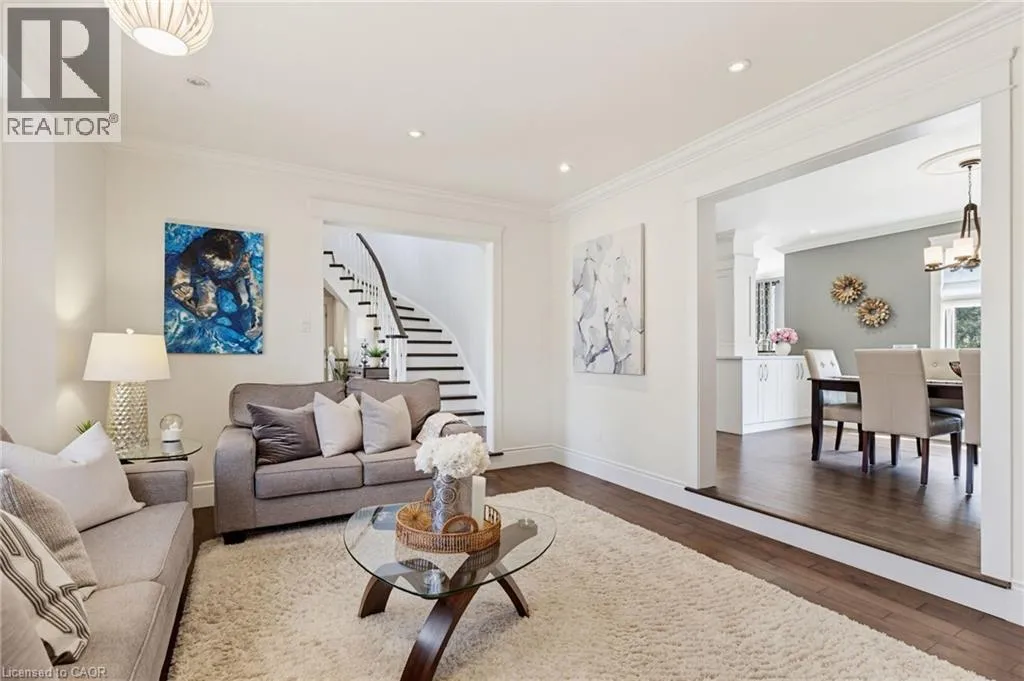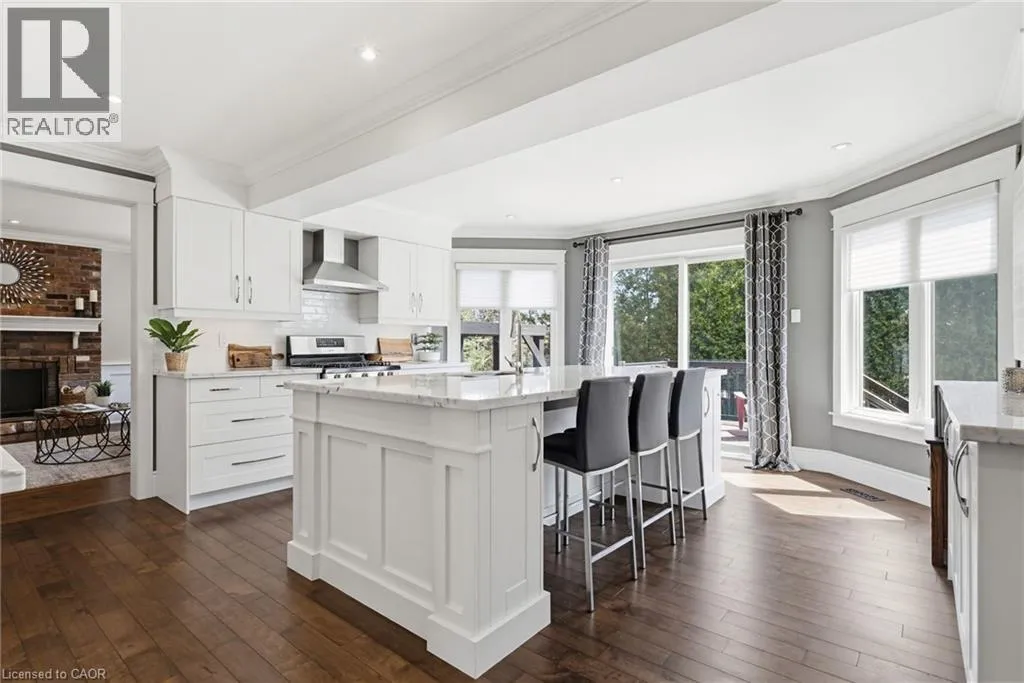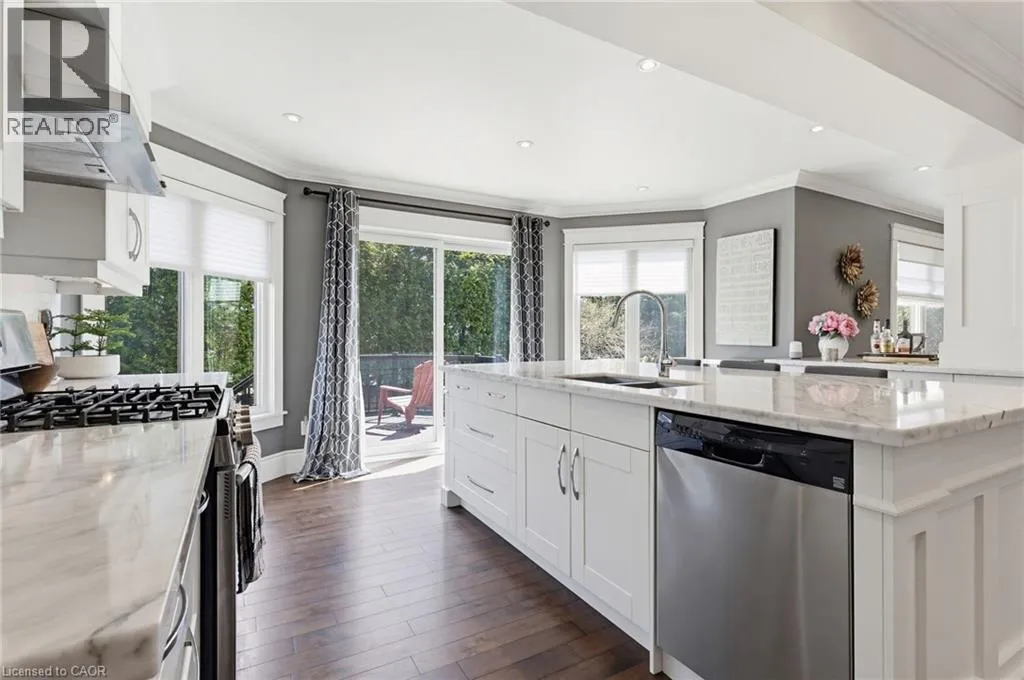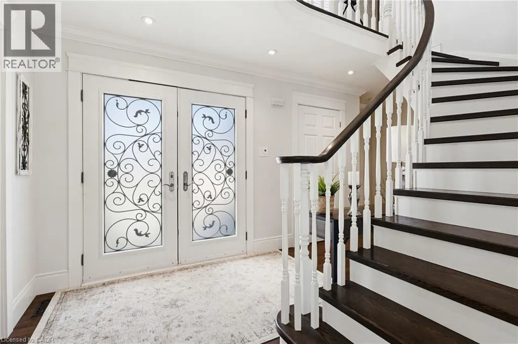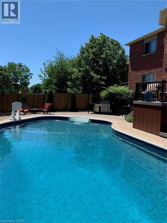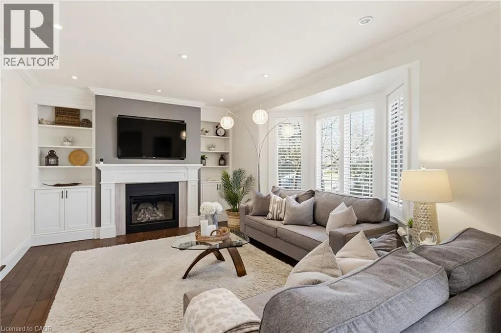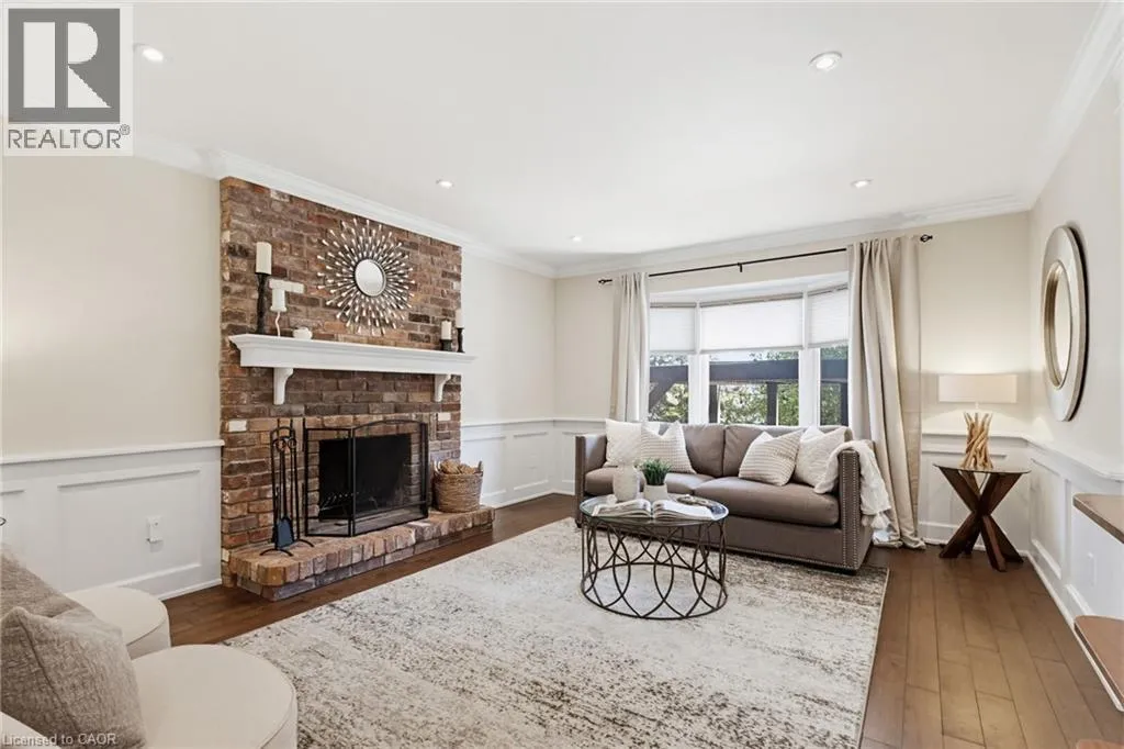 Welcome to this beautifully maintained home in the highly sought-after Tyandaga neighbourhood of Burlington, set on a quiet, family-friendly street and backing onto a ravine for added privacy. With excellent curb appeal & a double car garage, this home offers a perfect blend of space, comfort, and setting. The main floor features an open concept layout with separate living, dining, and family rooms, ideal for both everyday living and entertaining. The living room offers a bright, welcoming space with a gas fireplace, while the family room provides a relaxed setting with a wood-burning fireplace. Hardwood flooring runs throughout, complemented by California shutters, crown moulding, large baseboards, and pot lights throughout the main floor. The updated kitchen features an oversized centre island, stylish backsplash, and a seamless flow into the dining area. A sliding glass door leads to the backyard, filling the space with natural light and creating easy indoor-outdoor living. Main floor laundry adds convenience. Upstairs offers four generously sized bedrooms, providing comfortable accommodations for families of all sizes. The primary suite serves as a private retreat, featuring dual closets and a spacious ensuite complete with double sinks, a separate shower, heated floors, and a deep soaker tub. The additional bedrooms are bright and spacious, each offering ample closet space and flexibility for children, guests, or a dedicated home office. The finished basement extends the living space with a large recreation area and a separate bedroom, ideal for guests, a home office, or extended family, along with additional space for storage. The backyard is a standout, set on a larger lot backing onto a ravine, offering a private and peaceful setting with mature trees and frequent wildlife. Enjoy a heated pool and a low-maintenance two-tier composite deck, perfect for relaxing, entertaining, and summer gatherings. Close to schools, parks, golf, shopping, & major highways. (id:27476)