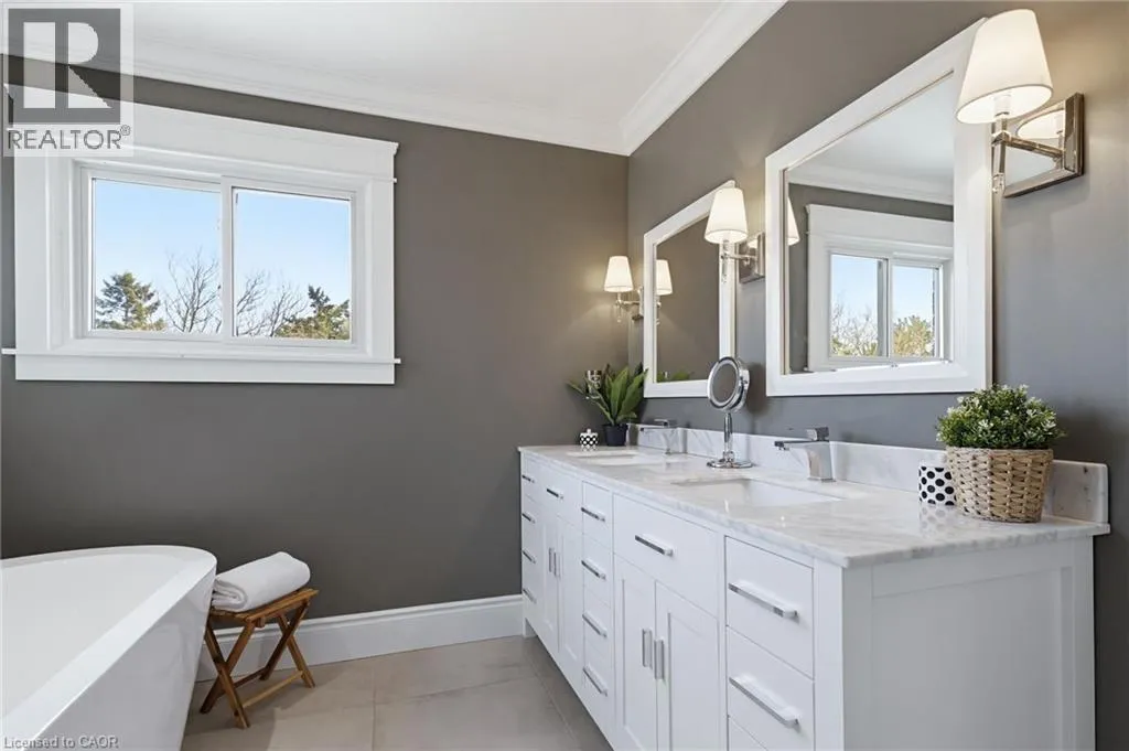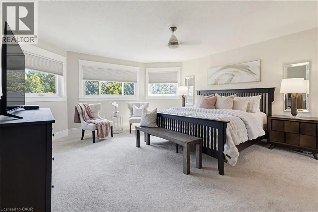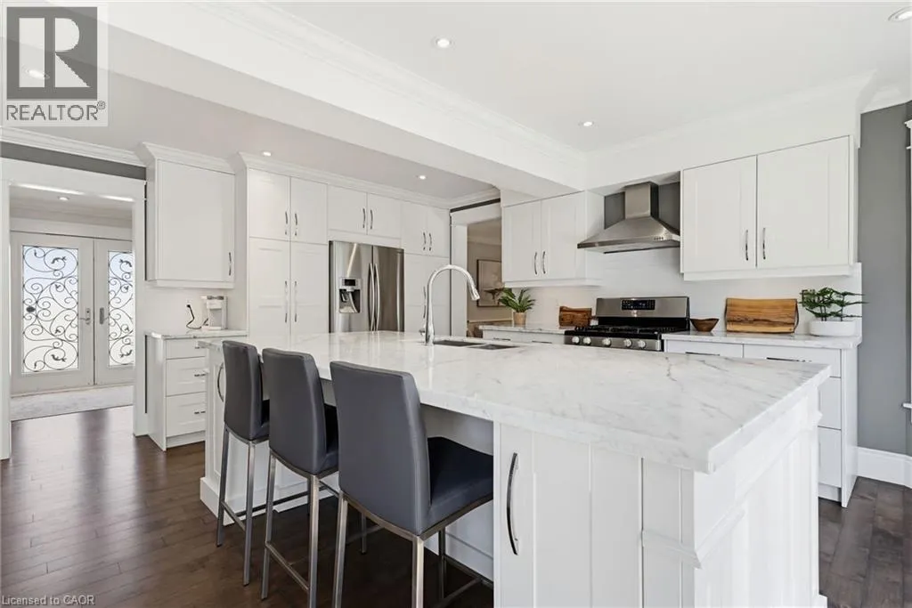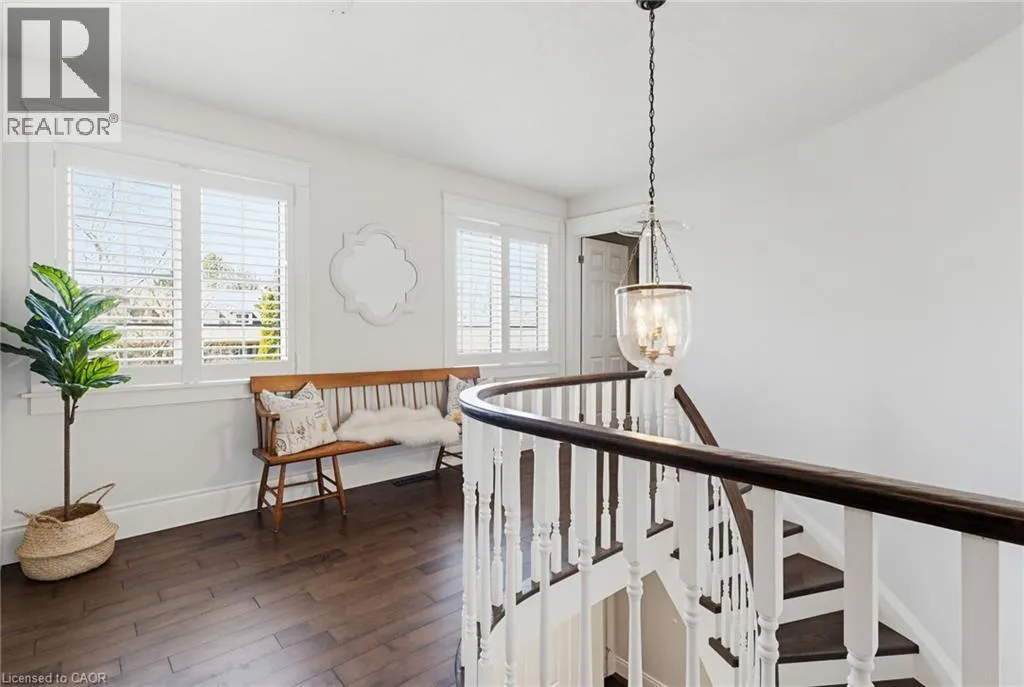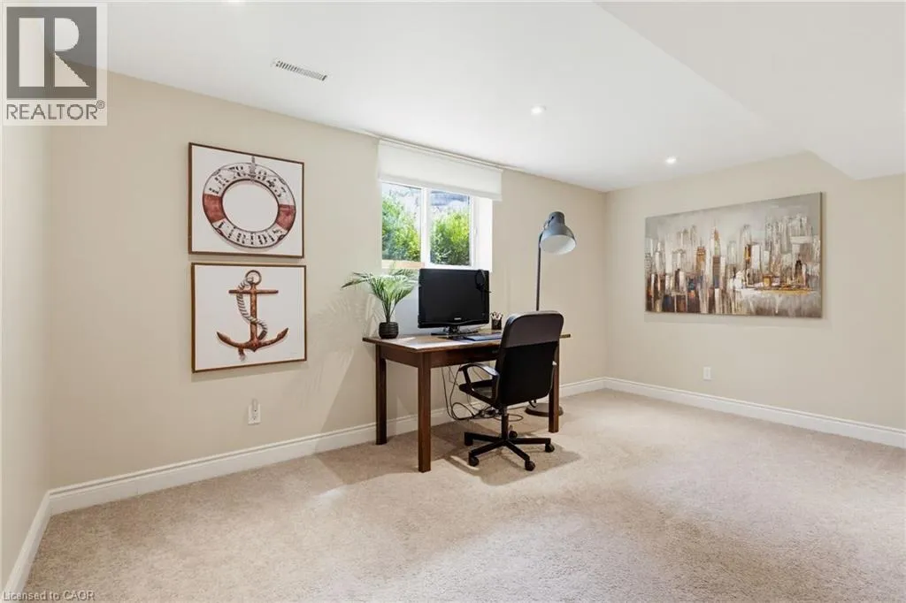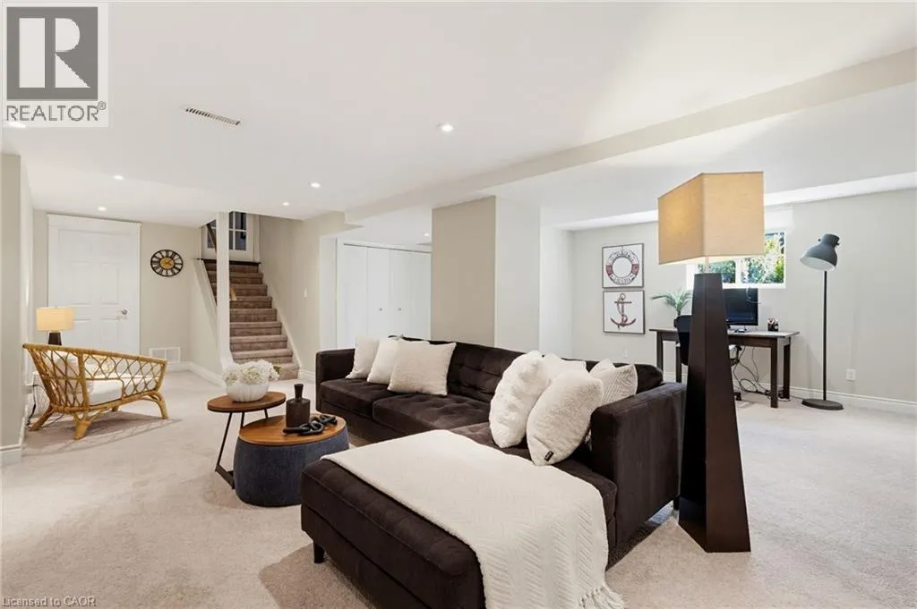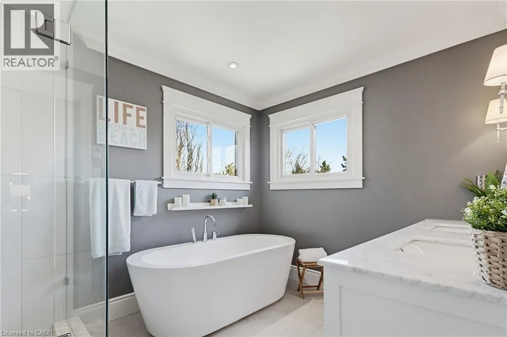Welcome to this beautifully maintained home in the highly sought-after Tyandaga neighbourhood of Burlington, set on a quiet, family-friendly street and backing onto a ravine for added privacy. With excellent curb appeal & a double car garage, this home offers a perfect blend of space, comfort, and setting. The main floor features an open concept layout with separate living, dining, and family rooms, ideal for both everyday living and entertaining. The living room offers a bright, welcoming space with a gas fireplace, while the family room provides a relaxed setting with a wood-burning fireplace. Hardwood flooring runs throughout, complemented by California shutters, crown moulding, large baseboards, and pot lights throughout the main floor. The updated kitchen features an oversized centre island, stylish backsplash, and a seamless flow into the dining area. A sliding glass door leads to the backyard, filling the space with natural light and creating easy indoor-outdoor living. Main floor laundry adds convenience. Upstairs offers four generously sized bedrooms, providing comfortable accommodations for families of all sizes. The primary suite serves as a private retreat, featuring dual closets and a spacious ensuite complete with double sinks, a separate shower, heated floors, and a deep soaker tub. The additional bedrooms are bright and spacious, each offering ample closet space and flexibility for children, guests, or a dedicated home office. The finished basement extends the living space with a large recreation area and a separate bedroom, ideal for guests, a home office, or extended family, along with additional space for storage. The backyard is a standout, set on a larger lot backing onto a ravine, offering a private and peaceful setting with mature trees and frequent wildlife. Enjoy a heated pool and a low-maintenance two-tier composite deck, perfect for relaxing, entertaining, and summer gatherings. Close to schools, parks, golf, shopping, & major highways. (id:27476)