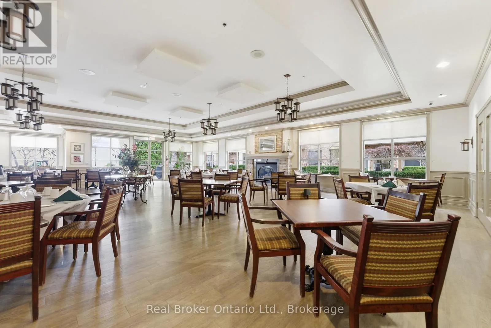 Burloak and Lakeshore Welcome to Hearthstone by the Lake, an exceptional lakeside retirement community where independent living meets comfort, connection, and peace of mind. This bright and beautifully maintained 2-bedroom + den, 2-bath suite offers sought-after lake views with breathtaking sunrises from both bedrooms, filling the home with natural light each morning.The thoughtfully designed layout features a spacious living and dining area, a freshly updated kitchen with crisp white cabinetry and stainless steel appliances, and a versatile den perfect for a home office, reading room, or hobbies. The generous second bedroom is ideal for overnight guests or visiting grandchildren, while the primary suite offers a relaxing retreat.Residents of Hearthstone enjoy a truly unique lifestyle with resort-inspired amenities including an elegant dining room, indoor pool, fitness centre, wellness centre, library, lounge, concierge, and beautifully landscaped grounds just steps from Lake Ontario. The mandatory Club Fee provides valuable services designed to support comfort and confidence, including dining credits, housekeeping, 24/7 on-site nursing staff, emergency response services, and handyman assistance. Additional a-la-carte wellness and personal care services are also available as needs evolve.Enjoy the freedom of home ownership with the reassurance of a caring community and vibrant social opportunities. A rare opportunity to enjoy lakefront living with security, services, and an exceptional sense of community. (id:27476)