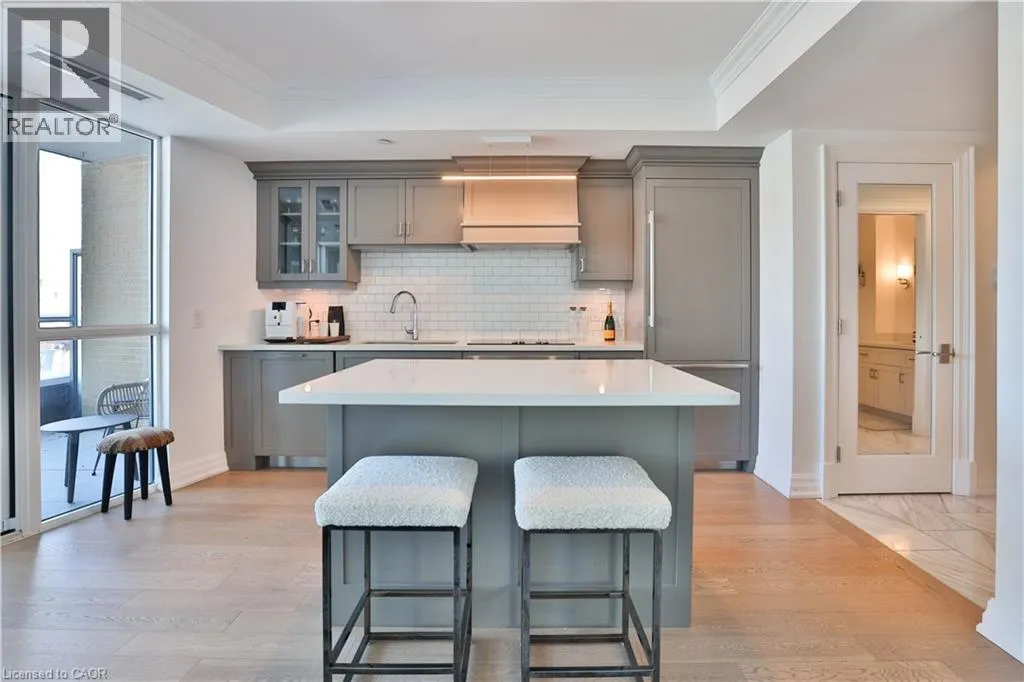 South on Brant St., East on Lakeshore to 2060 Lakeshore Rd on the South side Luxurious living awaits at the prestigious Bridgewater Residences on Lake Ontario situated in the heart of Burlingtonâs vibrant downtown waterfront. This exceptional 2 bed,2 bath corner suite offers a blend of elegance, comfort and breathtaking surroundings with coveted north and east exposures and stunning Lake Ontario sunrise views. Bright and spacious, the suite features high ceilings, floor-to-ceiling windows and two walkouts that flood the home with natural light. Enjoy seamless indoor-outdoor living with two large private balconies equipped with natural gas and water hookups ideal for entertaining and relaxing by the lake. Refined finishes elevate every detail and include hardwood flooring, marble and porcelain tile, tray ceilings, crown moulding, pot lights, Kohler fixtures, custom closet built-ins and high-end appliances. The open-concept living/dining area flows effortlessly into a gourmet kitchen showcasing Barzotti cabinetry with valence lighting, integrated Thermador appliances, a large island, quartz countertops and subway tile backsplash. The luxurious primary suite offers a walk-in closet with built-ins, a walkout to a spacious balcony and a spa-inspired 5-piece ensuite complete with heated floor, soaker tub, frameless glass shower and double vanity. The second bedroom features a heated floor, a walk-in closet with built-ins and expansive windows. A stylish 3-piece ensuite and laundry closet provide for additional functionality and convenience. Included are a preferred parking space and a large double-size locker. Residents enjoy world-class amenities including 8th-floor terrace with BBQs and panoramic lake views, two fitness centres, party room with billiards and piano, spa-like indoor pool, boutique-style lobby with 24-hour concierge, direct access to the Pearle Hotel, Isabelle Restaurant, Pearle Café and monthly social events. Parking is P4-R72 under the west tower beside elevators. Prime extra long spot as not near other cars (id:27476)