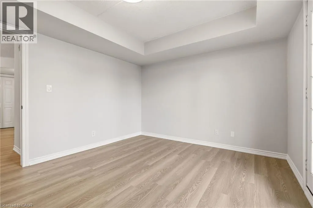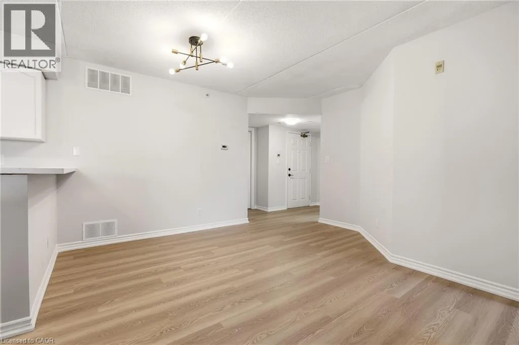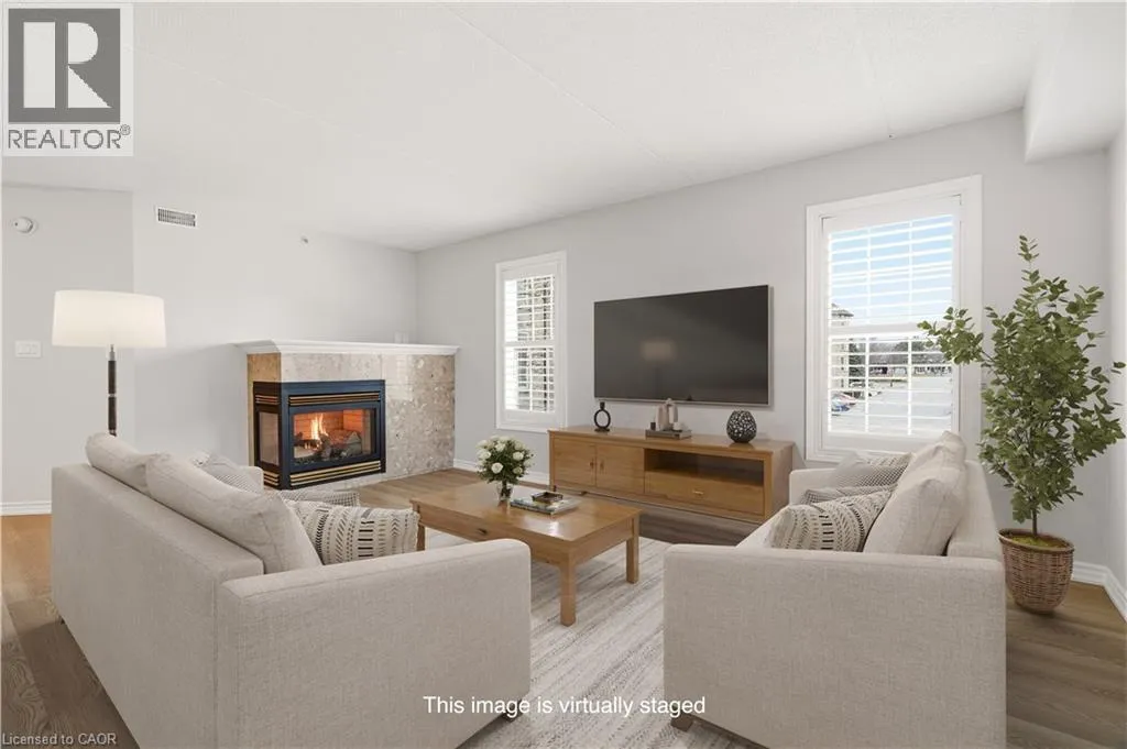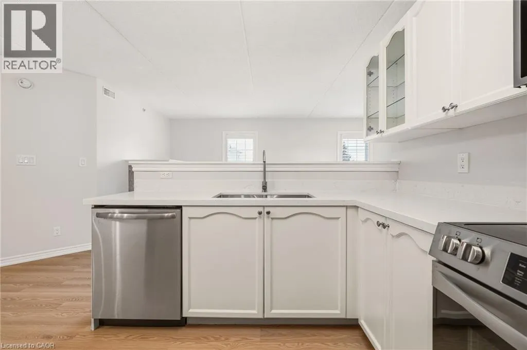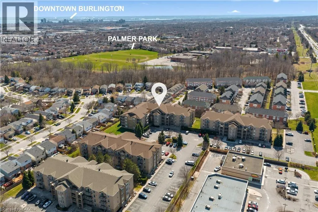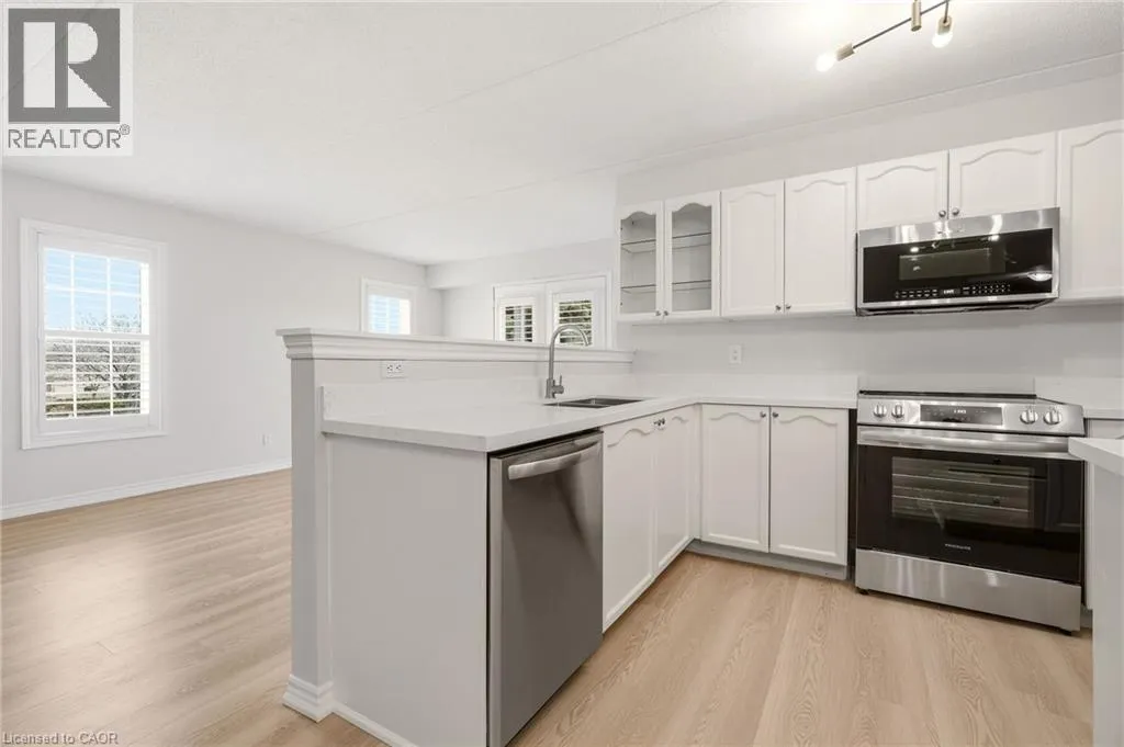 Upper Middle & Walkers Line Updated end-unit condo with all major improvements already completed for its new owner. Step inside to a bright, open layout that sets this unit apart. The entry flows seamlessly into the dining area and kitchen, with the living space just beyond, creating an easy setting for both everyday living and entertaining. The kitchen features new countertops, sinks, and never-used appliances, complemented by contemporary light fixtures. Large windows fill the space with natural light, highlighting the luxury vinyl plank flooring throughout. This rare end-unit offers two private balconies, adding valuable outdoor space. The primary bedroom features large windows and an updated 3-piece ensuite. The second bedroom features direct access to its own private balcony. Both bathrooms have been refreshed with new countertops, sinks, toilets, and modern hardware. Additional features include in-suite laundry, an exclusive underground parking space, and a storage locker, along with access to a gym and party room. Located in the heart of Burlington, close to schools, shopping, groceries, and public transit, this unit offers a truly move-in ready opportunity. (id:27476)