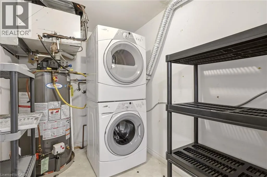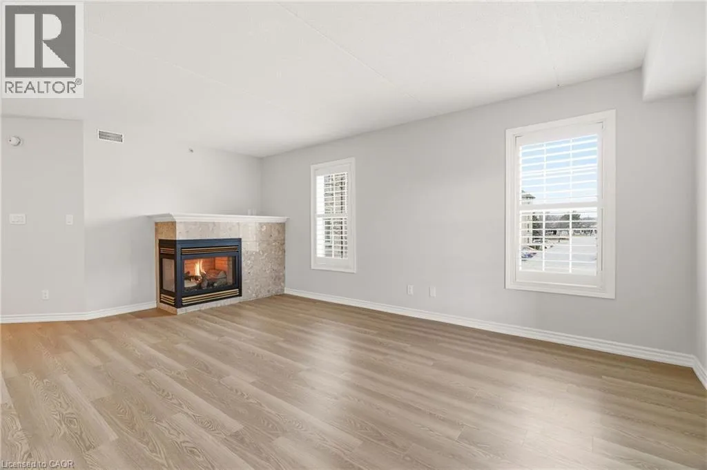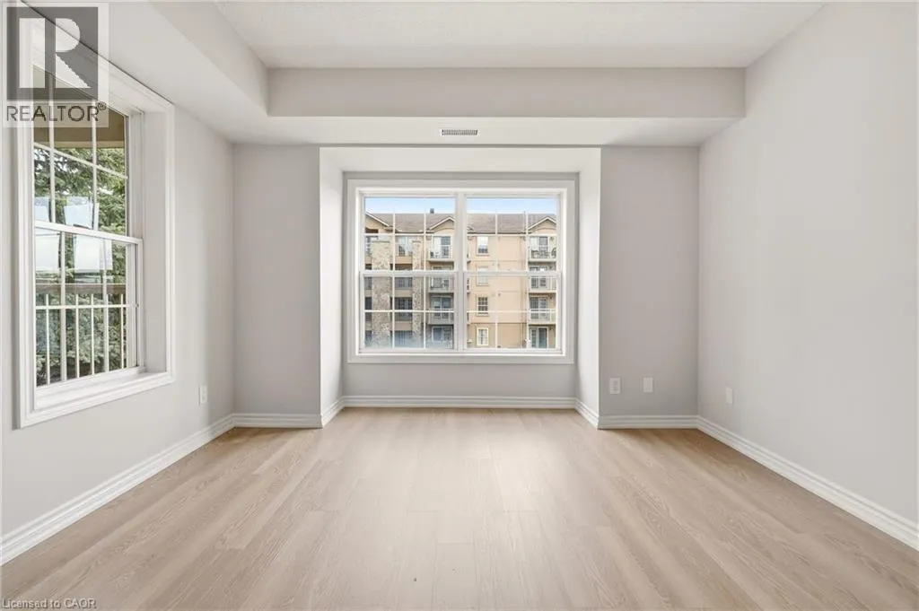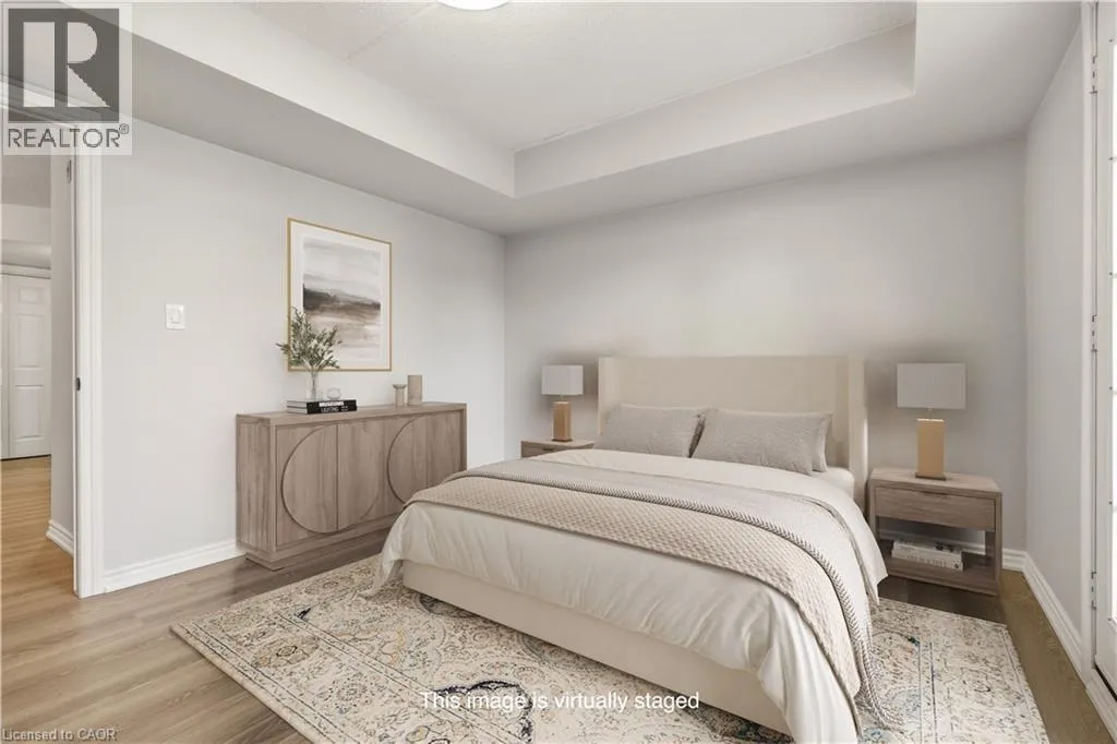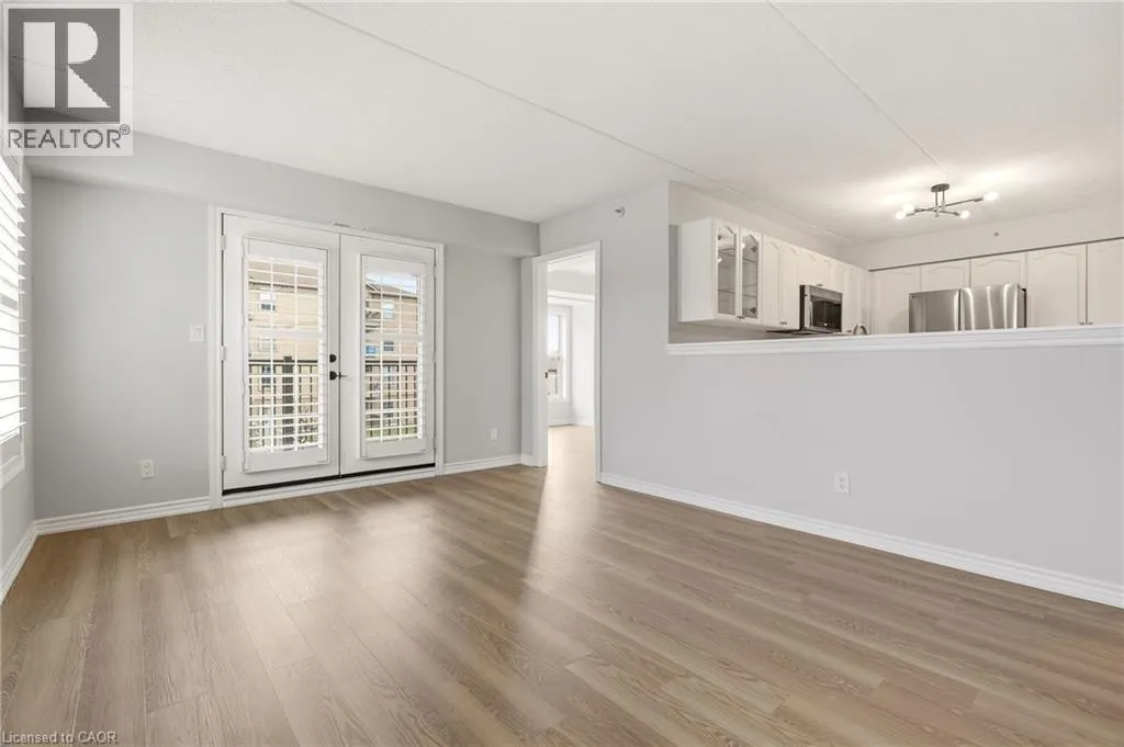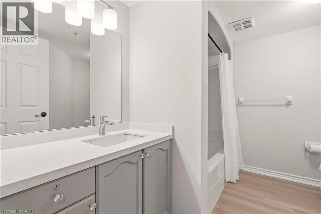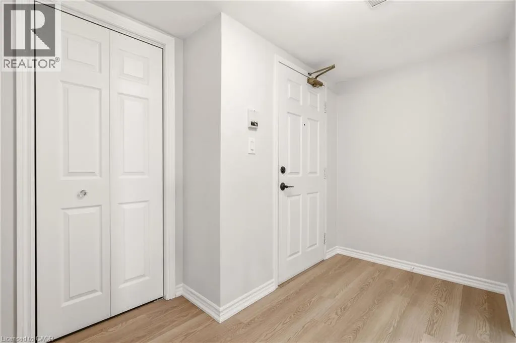 Upper Middle & Walkers Line Updated end-unit condo with all major improvements already completed for its new owner. Step inside to a bright, open layout that sets this unit apart. The entry flows seamlessly into the dining area and kitchen, with the living space just beyond, creating an easy setting for both everyday living and entertaining. The kitchen features new countertops, sinks, and never-used appliances, complemented by contemporary light fixtures. Large windows fill the space with natural light, highlighting the luxury vinyl plank flooring throughout. This rare end-unit offers two private balconies, adding valuable outdoor space. The primary bedroom features large windows and an updated 3-piece ensuite. The second bedroom features direct access to its own private balcony. Both bathrooms have been refreshed with new countertops, sinks, toilets, and modern hardware. Additional features include in-suite laundry, an exclusive underground parking space, and a storage locker, along with access to a gym and party room. Located in the heart of Burlington, close to schools, shopping, groceries, and public transit, this unit offers a truly move-in ready opportunity. (id:27476)