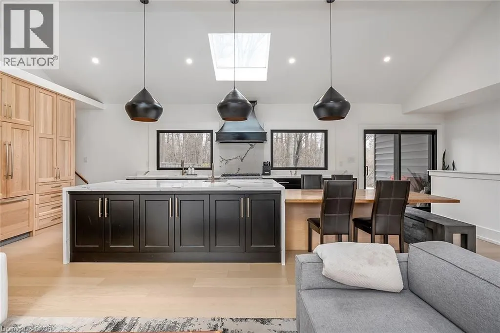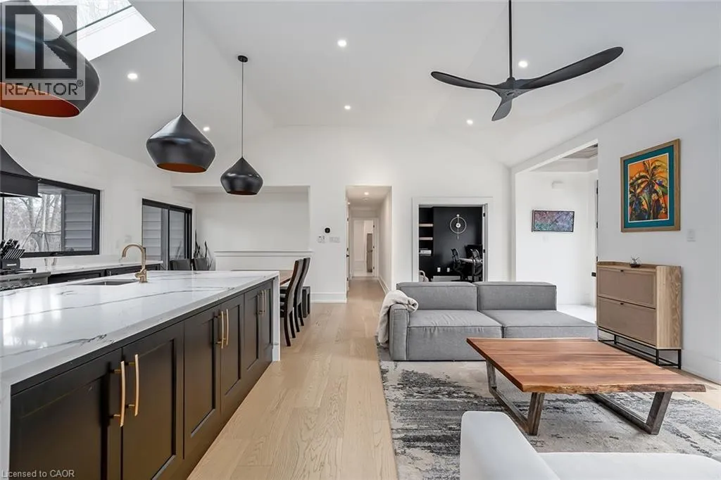 COMPLETELY REIMAGINED FROM TOP TO BOTTOM â INSIDE AND OUT! This exceptional bungalow is set on a coveted 80â x 125â mature lot in prestigious Shoreacres, backing onto lush trees & Shoreacres Park. Offering 3+1 bedrooms, 3.5 bathrooms and approx. 1900 sq ft PLUS a fully finished lower level. This home is paired with a true backyard oasis featuring a heated inground salt water pool and hot tub. Thoughtfully redesigned, the open-concept layout showcases wide plank engineered hardwood, smooth ceilings and an abundance of natural light. The main level features a breathtaking great room with 12â ceilings, a gas fireplace and a showpiece kitchen. The kitchen includes an oversized island, quartz counters, custom cabinetry, and integrated stainless/panelled appliances with access to the backyard. Also on this level are 2 generous bedrooms and a dedicated office. The primary retreat offers a spa-inspired 5-piece ensuite with heated floors, walk-in closet and backyard access. A beautifully updated 4-piece bath completes the level. The loft offers a private 3rd bedroom and 2-piece bath. The finished lower level boasts a spacious family room, 4th bedroom, 3-piece bath, laundry, den and ample storage. Outside, the professionally landscaped grounds feature striking curb appeal, a double wide drive and attached garage. The private, fenced backyard is an entertainerâs dream with a wood deck, pool, hot tub and mature greenery. Unbeatable location close to top-rated schools, parks, amenities and transit. (id:27476)