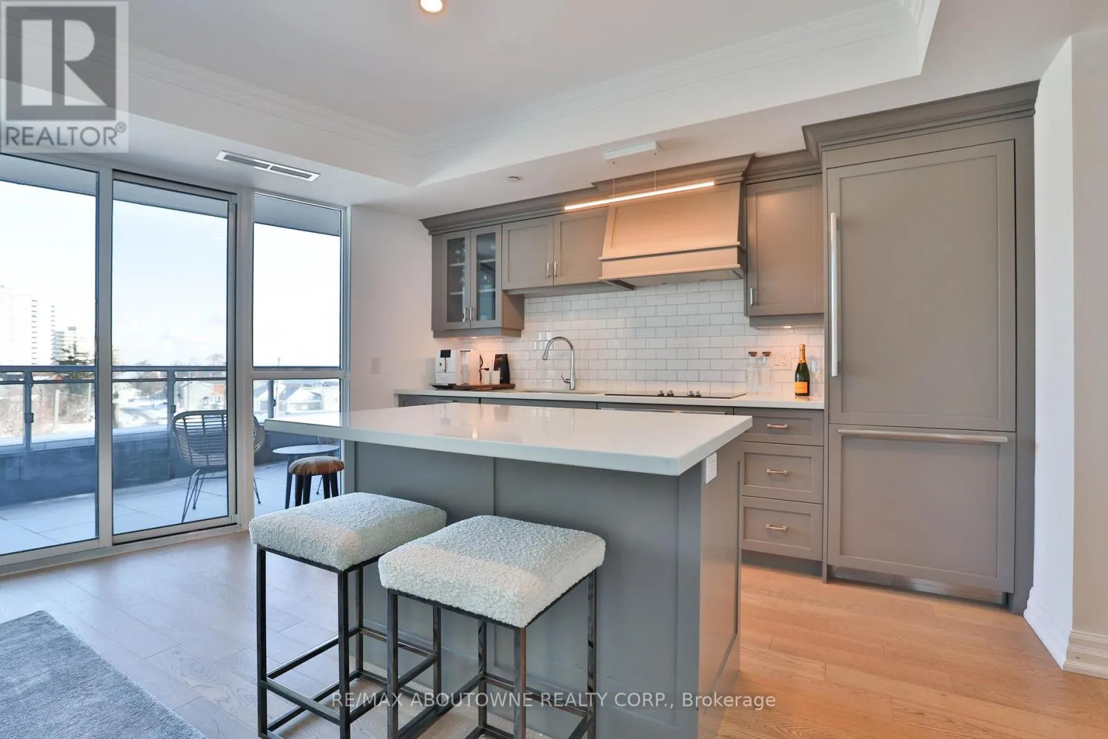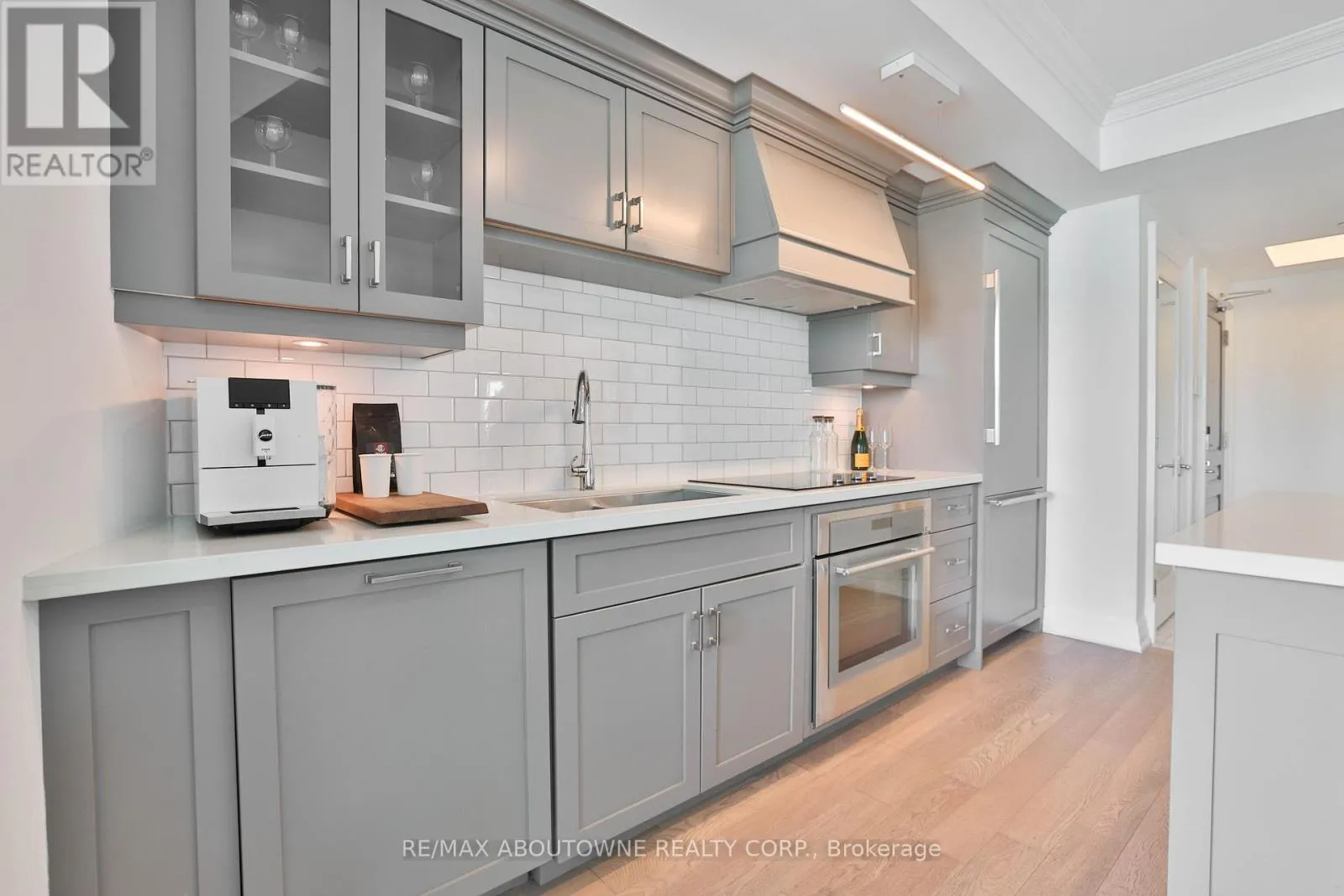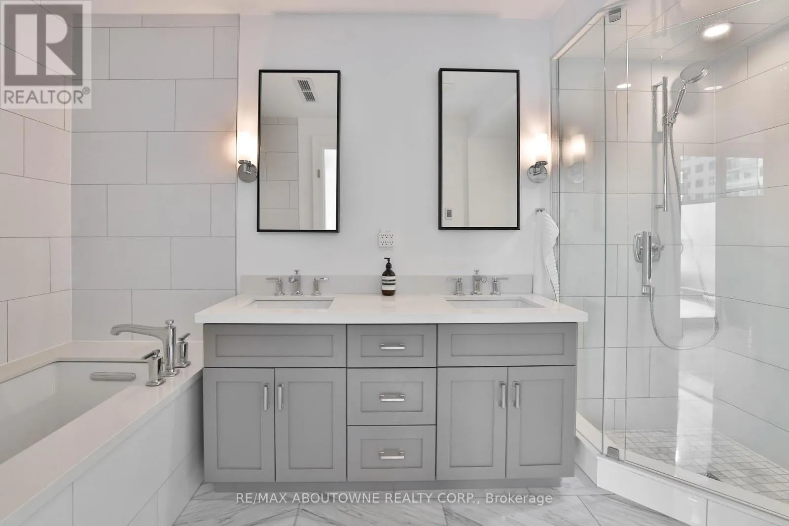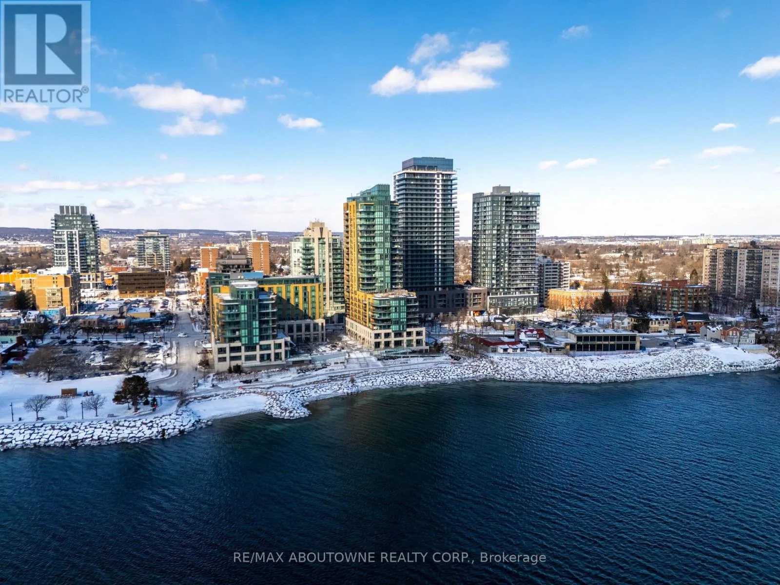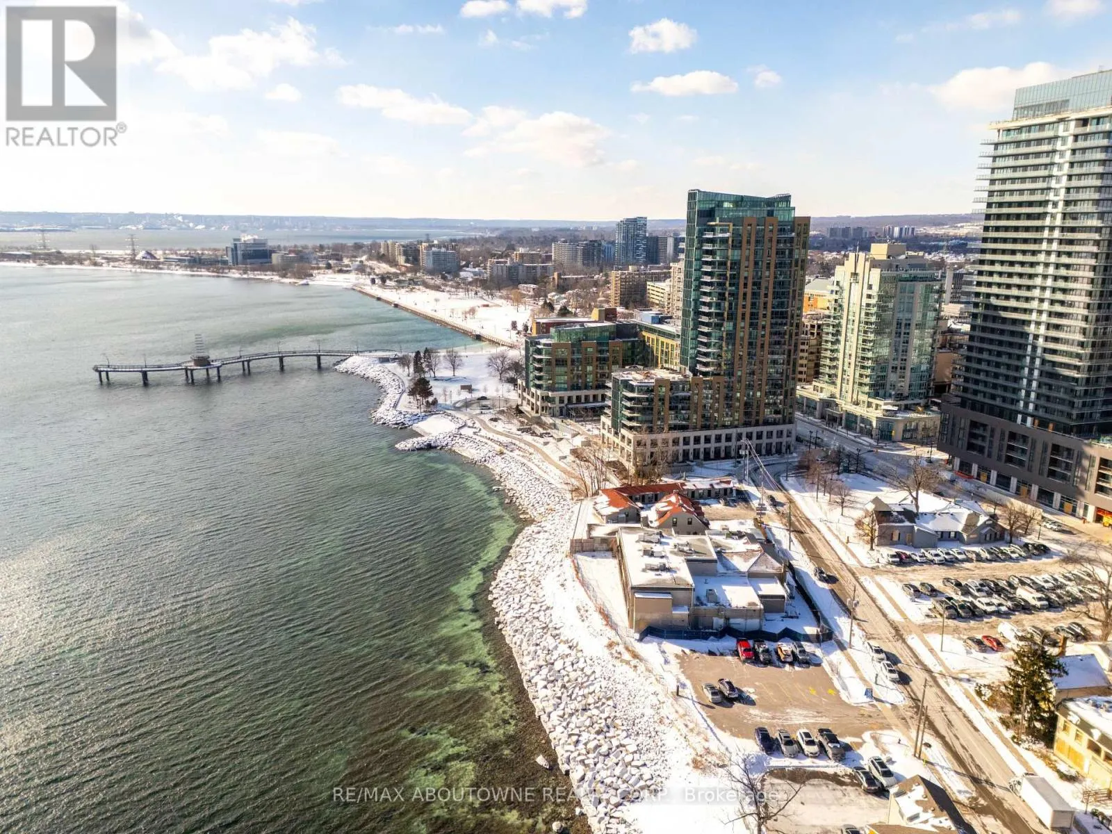 Brant/Lakeshore Luxurious living awaits at the prestigious Bridgewater Residences on Lake Ontario situated in the heart of Burlington's vibrant downtown waterfront. This exceptional 2 bed,2 bath corner suite offers a blend of elegance, comfort and breathtaking surroundings with coveted north and east exposures and stunning Lake Ontario sunrise views. Bright and spacious, the suite features high ceilings, floor-to-ceiling windows and two walkouts that flood the home with natural light. Enjoy seamless indoor-outdoor living with two large private balconies equipped with natural gas and water hookups ideal for entertaining and relaxing by the lake. Refined finishes elevate every detail and include hardwood flooring, marble and porcelain tile, tray ceilings, crown moulding, pot lights, Kohler fixtures, custom closet built-ins and high-end appliances. The open-concept living/dining area flows effortlessly into a gourmet kitchen showcasing Barzotti cabinetry with valence lighting, integrated Thermador appliances, a large island, quartz countertops and subway tile backsplash. The luxurious primary suite offers a walk-in closet with built-ins, a walkout to a spacious balcony and a spa-inspired 5-piece ensuite complete with heated floor, soaker tub, frameless glass shower and double vanity. The second bedroom features a heated floor, a walk-in closet with built-ins and expansive windows. A stylish 3-piece ensuite and laundry closet provide for additional functionality and convenience. Included are a preferred parking space and a large double-size locker. Residents enjoy world-class amenities including 8th-floor terrace with BBQs and panoramic lake views, two fitness centres, party room with billiards and piano, spa-like indoor pool, boutique-style lobby with 24-hour concierge, direct access to the Pearle Hotel, Isabelle Restaurant, Pearle Café and monthly social events-all redefining waterfront luxury living. This is the epitome of urban luxury-don't miss this exceptional opportunity. (id:27476)