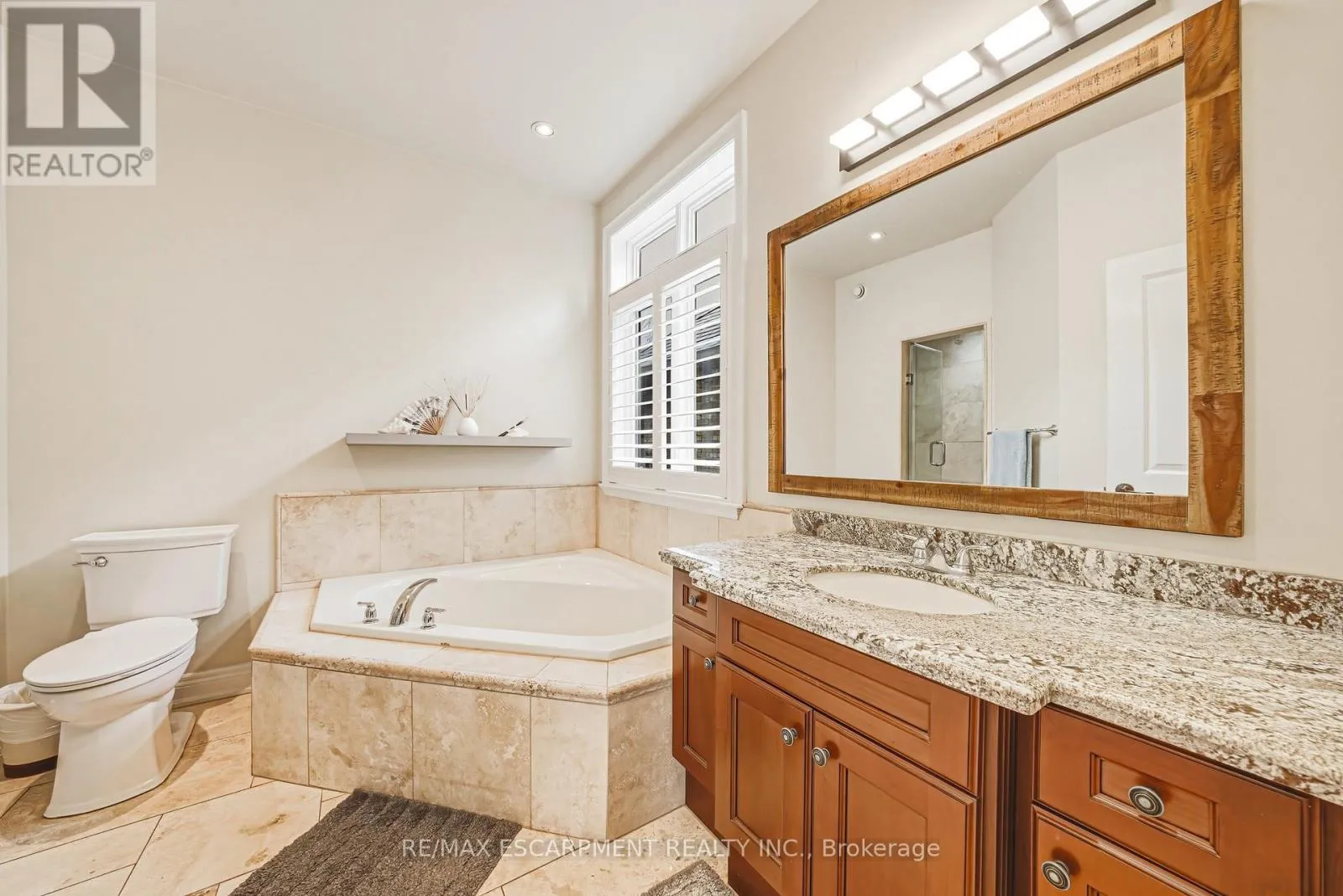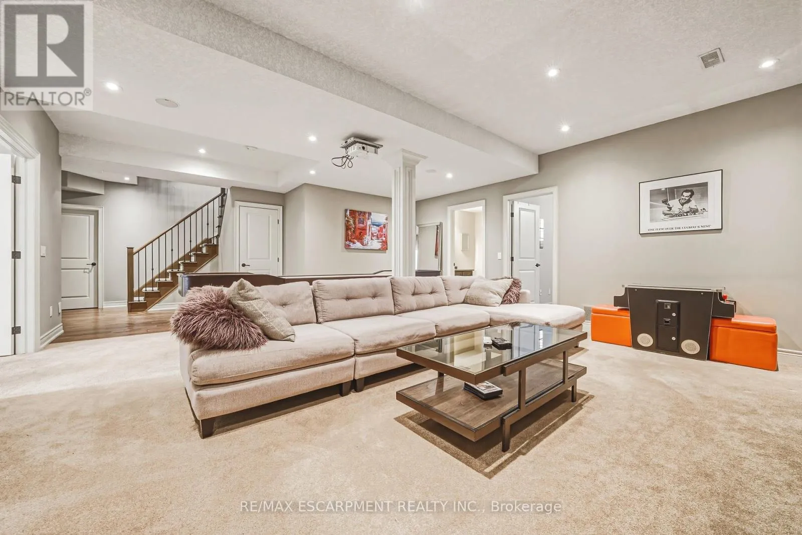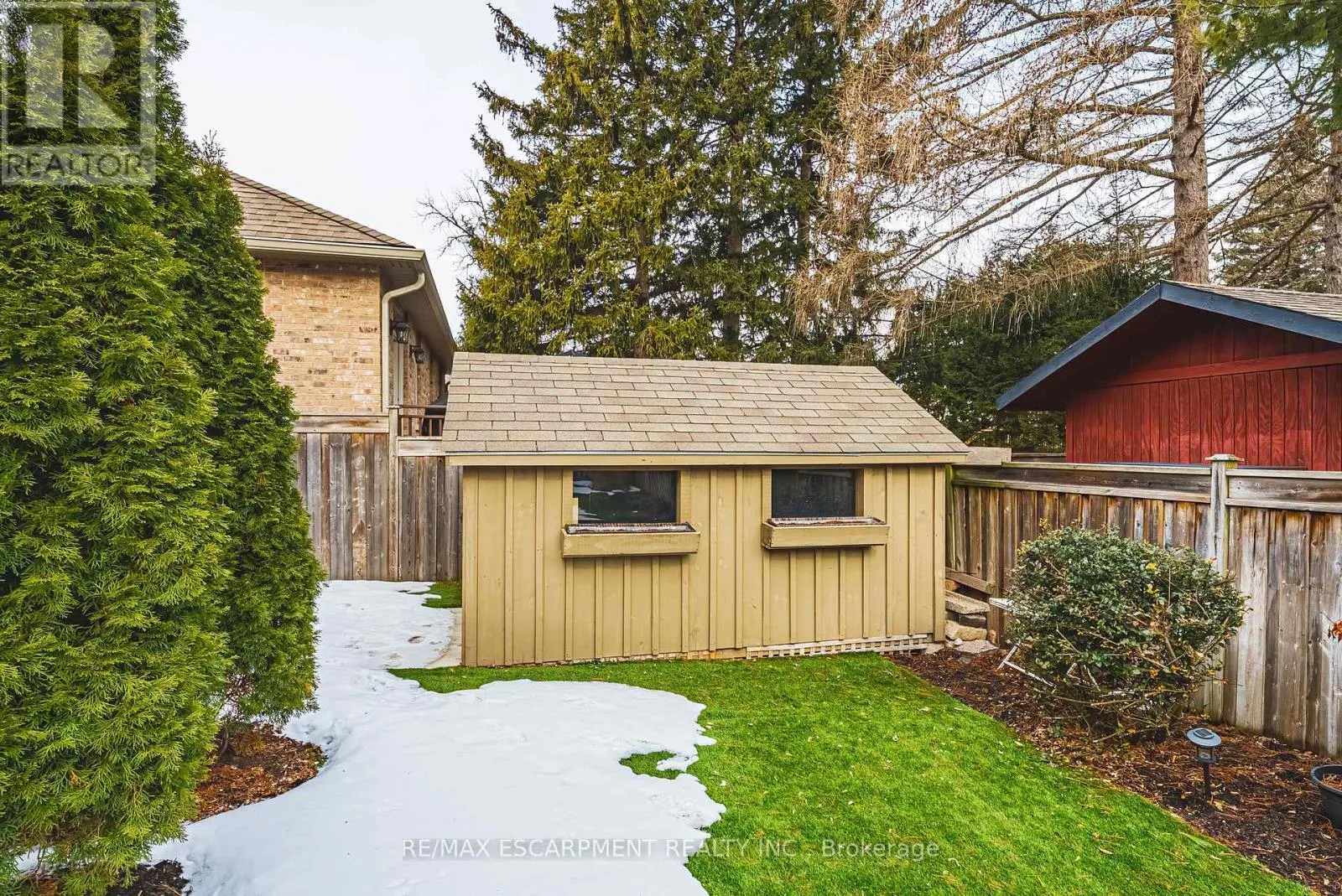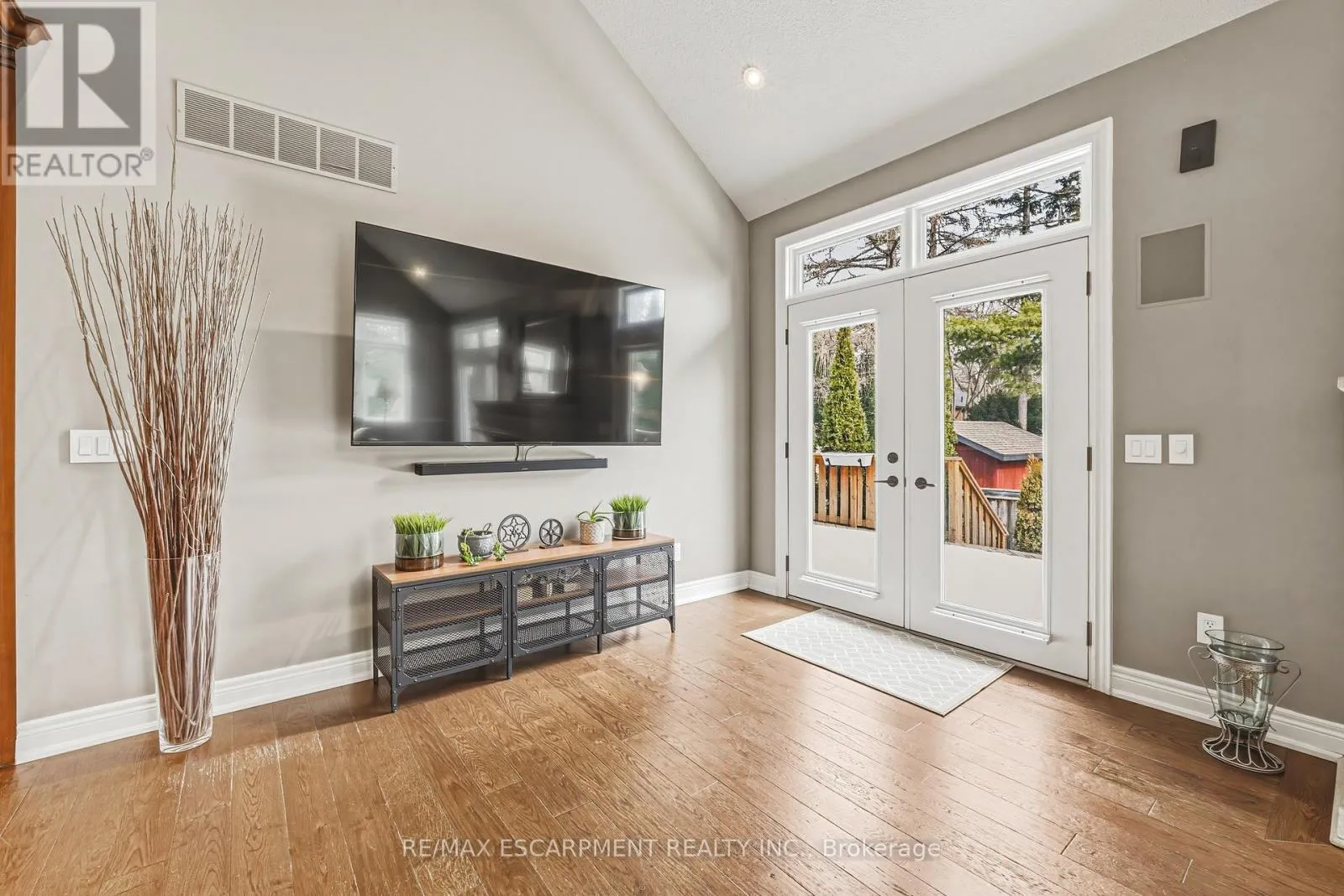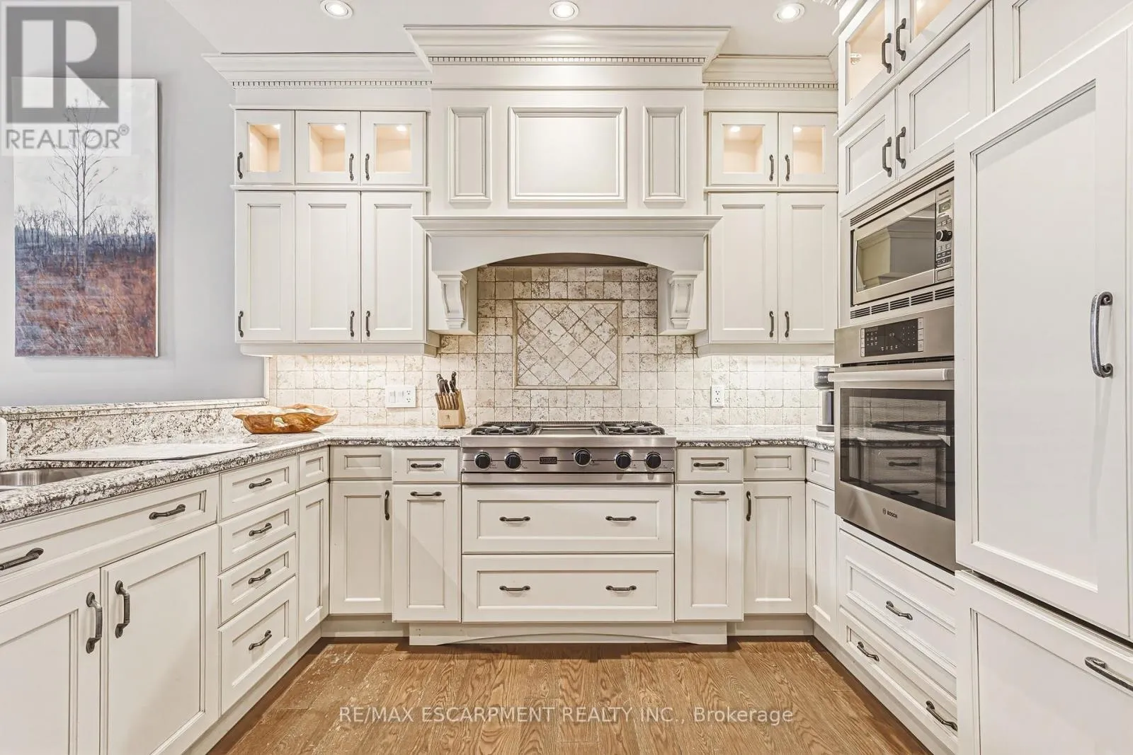Plains Rd E & Shadeland Ave This STUNNING renovated, detached BUNGALOFT sits in a quiet enclave in Aldershot. Featuring 3+2 bedrooms, 3.5 bathrooms, over 2400 square feet PLUS a fully finished lower level and a DOUBLE car garage! The home features quality designer finishes and fixtures throughout. The open concept floor plan boasts vaulted ceilings, hardwood flooring and plenty of natural light. The large foyer opens to the dramatic, oversized dining room with 14' ceilings. The incredible kitchen features custom cabinetry, a large accent island, granite counters and top-quality appliances. The kitchen flows directly to the large 2-storey family room which includes custom built-ins, a gas fireplace, in-wall speakers and two sets of french doors leading to the private backyard. The large primary bedroom has a walk-in closet and a spa-like 4-piece ensuite with heated flooring. The main level also includes a separate powder room and garage access! The 2nd level includes 2 spacious bedrooms, a beautiful 4-piece bathroom and laundry room. The professionally finished lower level features 9 ft ceilings, radiant in-floor heat flooring throughout, 2 bedrooms AND a den, a 3-piece bathroom, large rec room / media room and plenty of storage space! The exterior of the home has been extensively landscaped and features a private low maintenance backyard with a large deck and turf! Amazing location- close to all amenities and transportation! (id:27476)