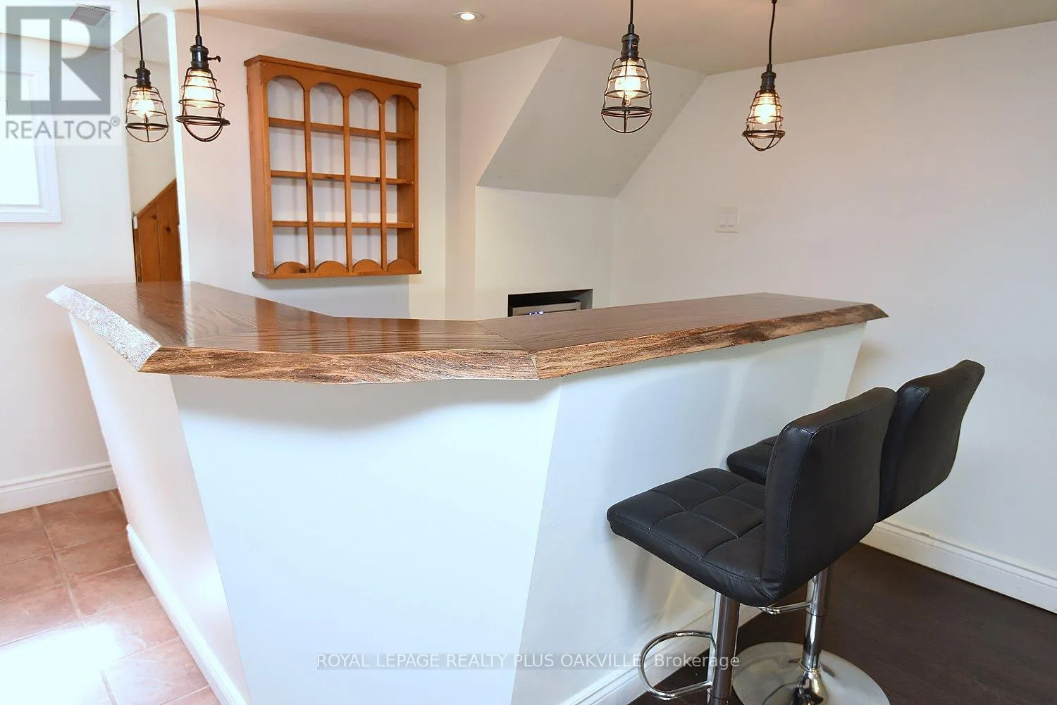 Cross Streets: Brant Street and Upper Middle. ** Directions: Mount Forest, North on Royal Drive to Bunnell Drive. Fabulous bungalow on a quiet street, just around the corner from Mountainside Park and wooded trails. The main floor has an easy, open flow with the gas fireplace and a large front window that fills the space with natural light. The kitchen is functional and inviting with stainless steel appliances (2020), and eat - in area, and moveable island that adds flexibility . There are three comfortable bedrooms on the main level along with a nicely renovated bathroom. Downstairs offers great additional living space with a recreation room, built - in bar, second fireplace, and good - sized windows that keep it feeling bright and usable. Important updates have already been taken care of, including furnace, and A/C (2020), updated electrical panel, owned hot water tank, new basement windows, updated switches, roof (2012), and a new side door. Outside, the private backyard features a large aggregate patio, perfect for a relaxing or entertaining. The 1.5 car garage is a real bonus, with a loft and currently used as a "man cave," complete with its own electrical panel and automatic opener, along with a new eavestroughs and a new utility door. A well-cared-for home with a solid foundation, offering the opportunity to make it your own in a great neighborhood, highway access, and shopping. (id:27476)