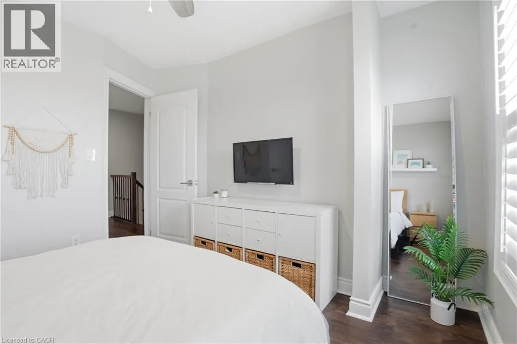 Appleby Line North of Dundas; West on Thomas Alton Welcome to this exceptional 3-storey, 4-bedroom townhouse condo in sought-after Alton Village! Offering rare functionality and thoughtful design, this beautifully maintained home features a double car garage plus double driveway parking â comfortably fitting 4 vehicles. Inside, youâll find a highly desirable ground-floor bedroom complete with its own private ensuite, perfect for in-laws, guests, a home office, or multigenerational living. The main level showcases a bright, open-concept layout with tasteful updates throughout, ideal for todayâs discerning buyer. The spacious kitchen flows seamlessly to a large private balcony â perfect for barbecuing, outdoor dining, and relaxing evenings. Upstairs, three bedrooms provide ideal separation for families, including a well-appointed primary retreat. An unfinished basement offers excellent storage or future potential to customize additional living space. Stylish, functional, and move-in ready â this is a rare opportunity in one of Burlingtonâs most family-friendly communities, close to schools, parks, shopping, and commuter routes. Turnkey living with space, parking, and flexibility â this one checks all the boxes. Upgrades: California shutters, Railings, Powder room vanity, Entry floor tile, Quartz Countertops (kitchen), Kitchen appliances (dishwasher, stove, microwave, fridge), Kitchen backsplash, Updated lighting/ceiling fans, Landscaping, Furnace/AC/humidifier (2020) (id:27476)