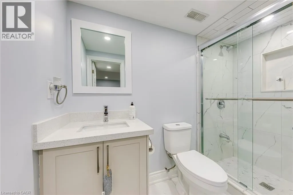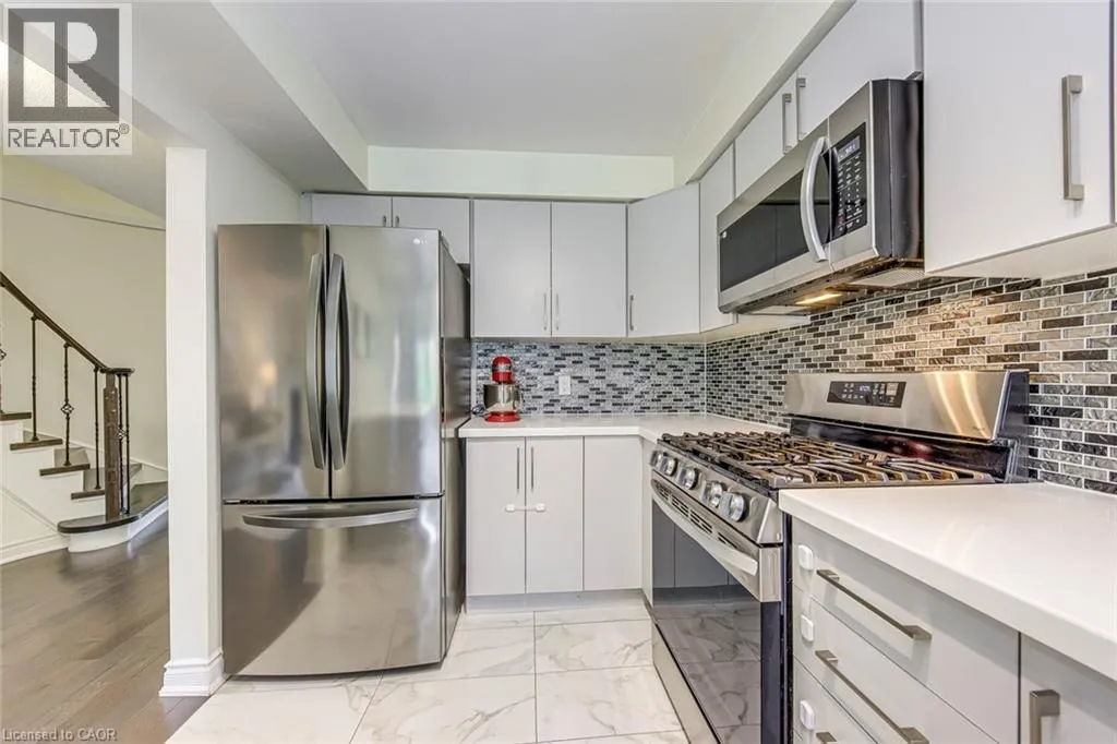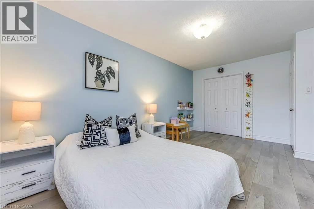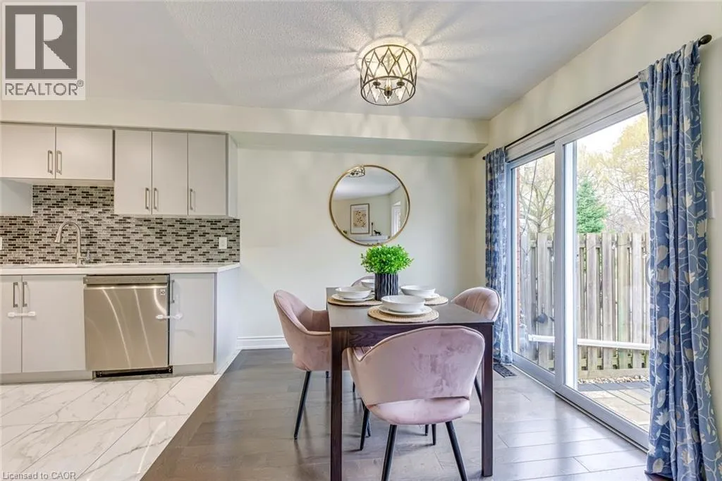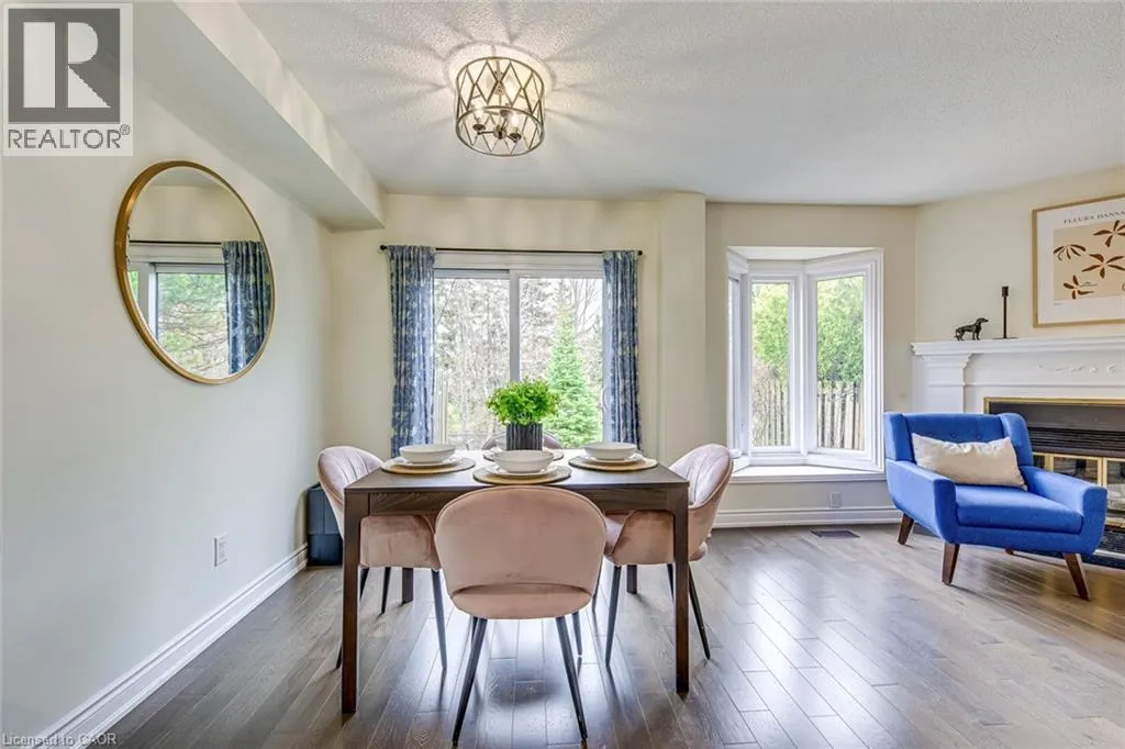 Guelph Line to New Street Step inside this recently renovated townhome tucked away in a quiet, family-friendly enclave in Burlington. From the moment you arrive, the setting feels private and peaceful-perfectly positioned in a low-traffic community that offers comfort, safety and convenience.As you walk through the front door, you're welcomed into a bright and inviting main level where the layout flows effortlessly from space to space. The living room is warm and welcoming, anchored by a cozy fireplace, an ideal spot to unwind or gather with friends and family. Just beyond, the dining area connects seamlessly, creating an easy, functional flow for everyday living and entertaining. The spacious kitchen, fully renovated in 2021, is thoughtfully designed at the heart of the home, offering both practicality and connection to the main living areas with updated finishes.Upstairs, the home continues to impress with two generously sized bedrooms, each offering its own ensuite bathroom-an incredibly desirable feature that provides comfort and privacy. The primary suite feels like a true retreat, complete with a custom built-in wardrobe (2022), while the second bedroom is equally versatile-perfect for guests, family, or a home office. Updated laminate flooring (2021) and modernized vanities (2021) add a fresh, cohesive feel throughout.The fully finished basement (2023) adds even more living space-ideal for a recreation room, media lounge, or home gym. Recent updates including new stairs (2023) and main floor hardwood and tile flooring (2023) further enhance the home's appeal.Step outside to a beautifully refreshed backyard (2022), offering a private outdoor space perfect for relaxing or entertaining. Complete with parking, low-maintenance living, and a well-managed condo setting, this home offers an exceptional opportunity for first-time buyers, down sizers, or investors. Located close to parks, schools, shopping, and major routes, it delivers the perfect balance of lifestyle and location. (id:27476)
