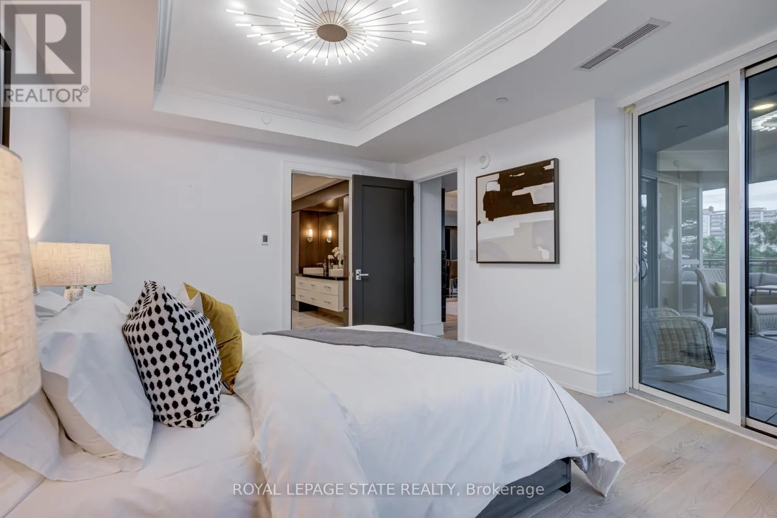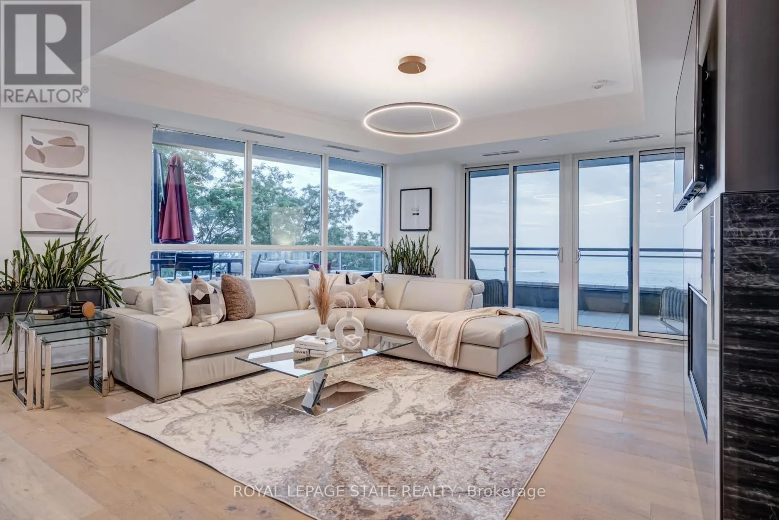 Cross Streets: Elizabeth and Lakeshore. ** Directions: Lakeshore Road to Elizabeth Street. Luxury Waterfront Living in the Heart of Downtown Burlington at the prestigious Bridgewater Residences - where timeless elegance meets lakeside tranquility. Spanning 2,200 square feet of refined living space, plus an expansive 725+ square foot private wrap-around terrace, this southeast-facing corner suite offers breathtaking, unobstructed views of Lake Ontario. Designed with meticulous attention to detail, this 2- bedroom plus den, 3-bathroom residence is rich with luxury upgrades and sophisticated design elements. Soaring floor-to-ceiling windows flood the space with natural light, while the open-concept layout features a gas fireplace and a spectacular gourmet kitchen equipped with premium Thermador appliances, a generous granite island, and custom cabinetry - ideal for both everyday living and entertaining. The hotel-inspired primary suite is a true retreat, complete with terrace access, panoramic lake views, a spacious walk-in closet, and a spa-like ensuite featuring an oversized glass shower and elegant finishes. A second bedroom with ensuite and a separate den/home office (easily adaptable as a third bedroom) ensure flexibility and privacy for guests or family. A dedicated laundry room and a stylish powder room round out the suite's thoughtful layout. Step outside to your private terrace and take in the serenity of waterfront living - the perfect backdrop for morning coffee, summer dining, or evening relaxation. As a Bridgewater resident, enjoy access to resort-style amenities, including a rooftop terrace, party lounge, fitness centre, piano room, and VIP privileges at The Pearle Hotel & Spa, featuring a second gym and a luxurious indoor pool. This rare offering also includes two premium accessible parking spaces next to the elevator, as well as a private storage locker. Experience the best of Downtown Burlington - just steps to the Waterfront Trail, Spencer Smith Park, the Pier, and a vibrant mix of boutique shopping, fine dining, and cultural attractions. (id:27476)