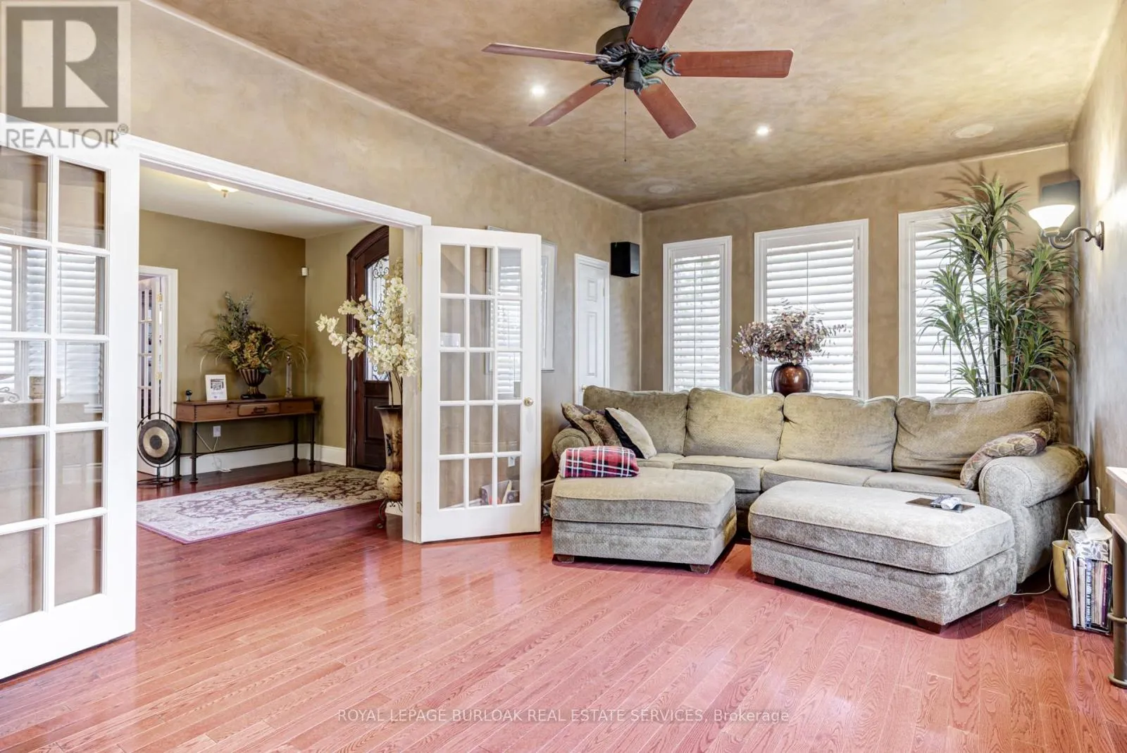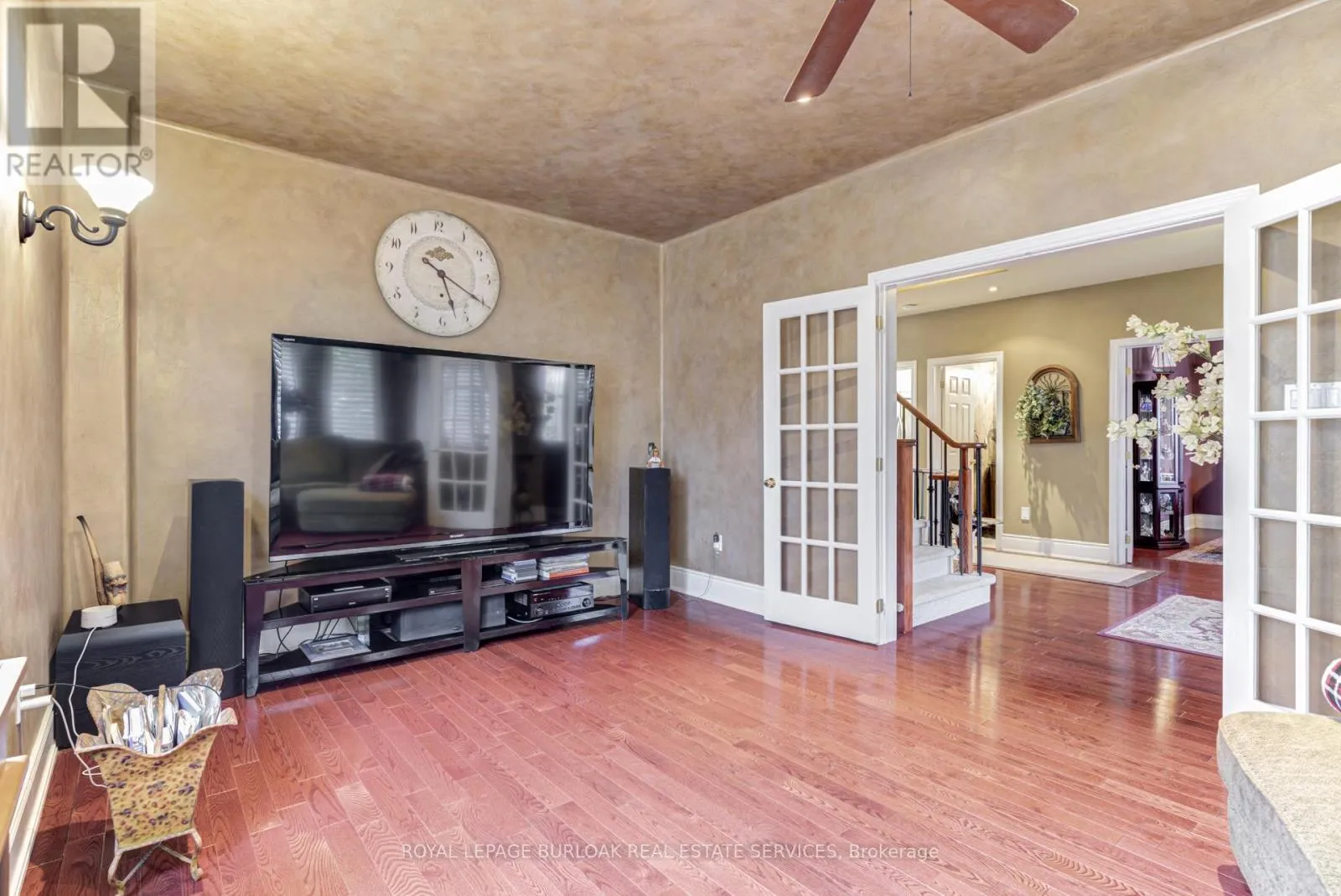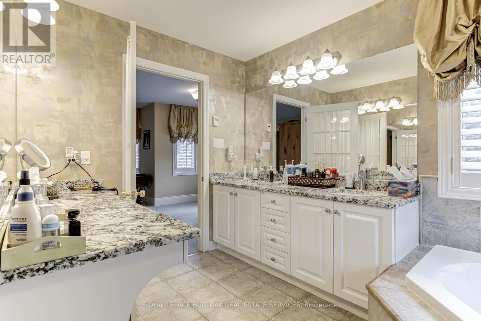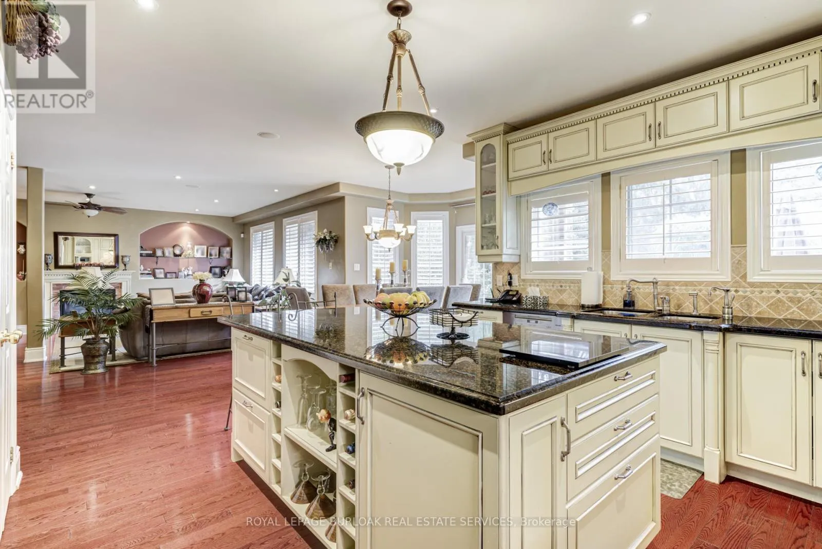 Cross Streets: Millcroft Park Drive. ** Directions: Millcroft Park Drive to Clubview Drive. A home built to last, set on a large lot in prestigious Millcroft. This impressive two-storey residence offers over 5,300 sq. ft. of living space, including a fully finished basement, and backs onto the scenic Millcroft Golf Course for ultimate privacy. Designed for those who appreciate a classic layout, the main floor features a formal living room and a private home office off the spacious foyer. The heart of the home spans the rear, where the kitchen, dining, and family room create a seamless space ideal for both entertaining and everyday living. The gourmet eat-in kitchen showcases solid cabinetry with detailed millwork, stone countertops, and stainless steel appliances. A custom laundry room with access to the tandem garage, along with a powder room, completes the main level. Upstairs, you'll find four generously sized bedrooms, two with ensuite access. The west-facing primary suite is filled with natural light and includes a luxurious 5-piece ensuite with double vanity, soaker tub, walk-in shower, water closet, and dedicated makeup area. A large walk-in closet and cozy gas fireplace add both function and comfort. The finished lower level adds over 1,700 sq. ft., featuring a spacious recreation area, 3-piece bath with sauna, a den with potential for a fifth bedroom, and walk-up access to the garage. Step outside to a private backyard retreat with an interlock patio, multiple seating areas, and a custom water garden with a two-tier waterfall overlooking the ravine. Additional highlights include heated floors in all upstairs bathrooms, a tandem garage with parking for four cars, and a four-car driveway. Built by Monarch, this home offers exceptional quality and craftsmanship on a quiet corner lot. (id:27476)