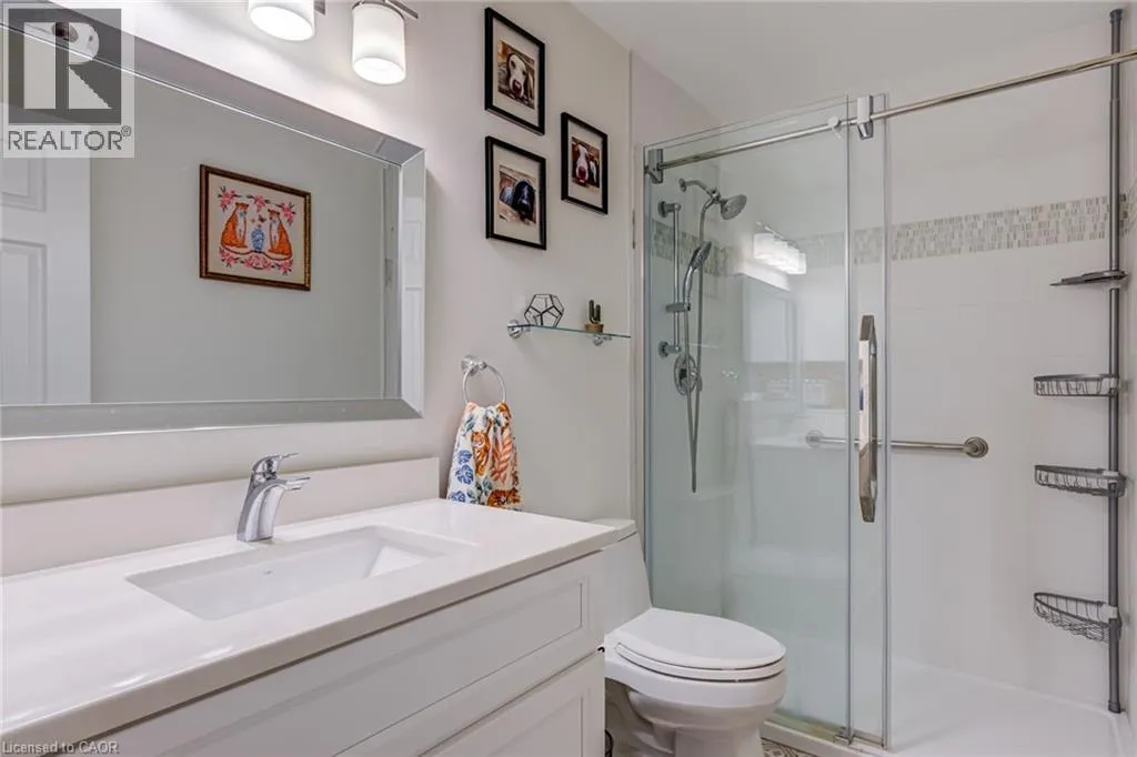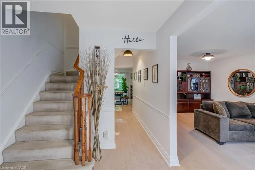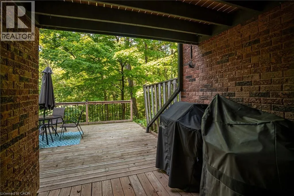 Welcome to your happy place! This beautifully cared-for 3-bedroom townhome (in one of Burlington's most sought-after complexes!) backs right onto a storybook ravine and babbling creek. Step outside to your massive private deck and soak in the peaceful, forest views â perfect for moming coffee or sunset cocktails. Inside, the main floor is made for entertaining! The updated kitchen sparkles with quartz countertops, sleek modern cabinetry, a GE induction stove, and a Bosch dishwasher. Whip up dinner while chatting with guests in the open-concept dining/living room, then cozy up around the gas fireplace. The family room off the kitchen is a sunlit retreat, with huge windows framing those gorgeous ravine views. Upstairs, the home has been reimagined into 2 spacious bedrooms, each with their own ensuite (but yes â it can be converted back to 3 bedrooms if you prefer!). The primary suite boasts an updated ensuite, a dreamy screened balcony, and plenty of room to unwind. The second bedroom is equally spoiled with a private full bath, and luxury vinyl floors done throughout the 2nd floor (2025). The lower level is another slice of paradise â a bright above-grade bedroom, a rec room with a walk-out to that jaw-dropping deck, plus laundry and storage. Bonus? You get outdoor space on EVERY level â a rare treat! You'll also enjoy a double-wide driveway, private garage, and a friendly community with an outdoor pool, party room, and snow removal right to your doorstep. Love the outdoors? Kems Park, golf, and tennis are all within walking distance. Need to commute? You're minutes from the 403, 407, and QEW. This is more than a home â ifs a lifestyle. Don't miss your chance to make it yours! (id:27476)