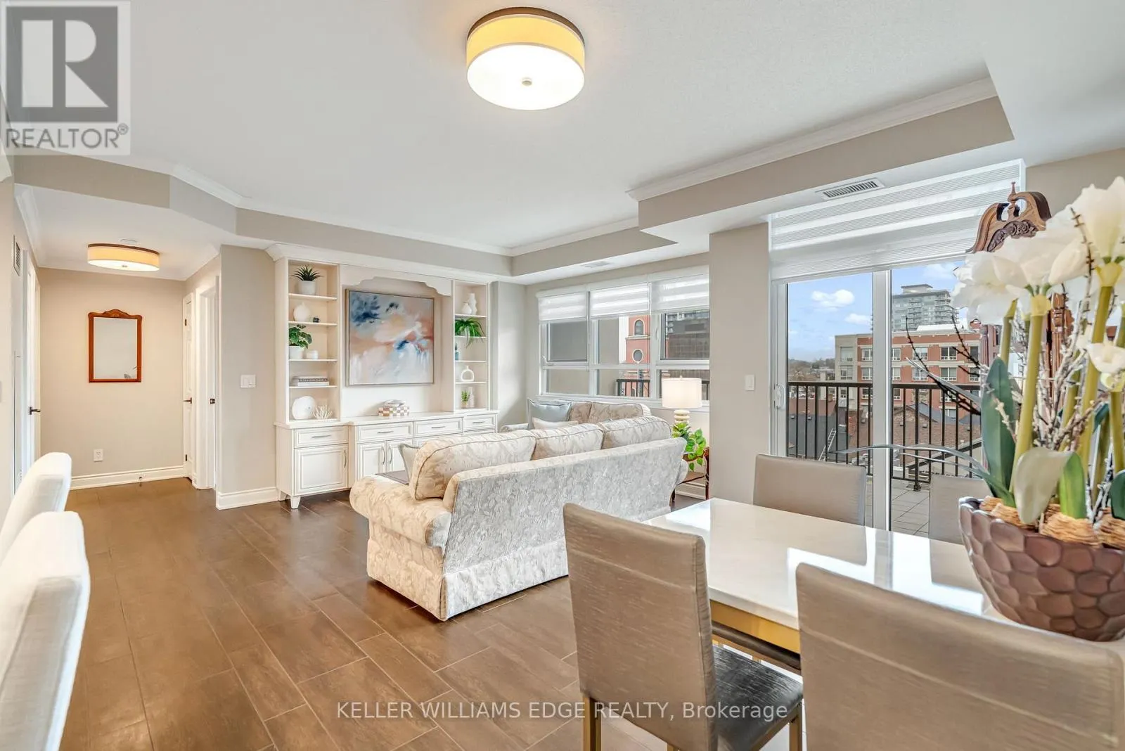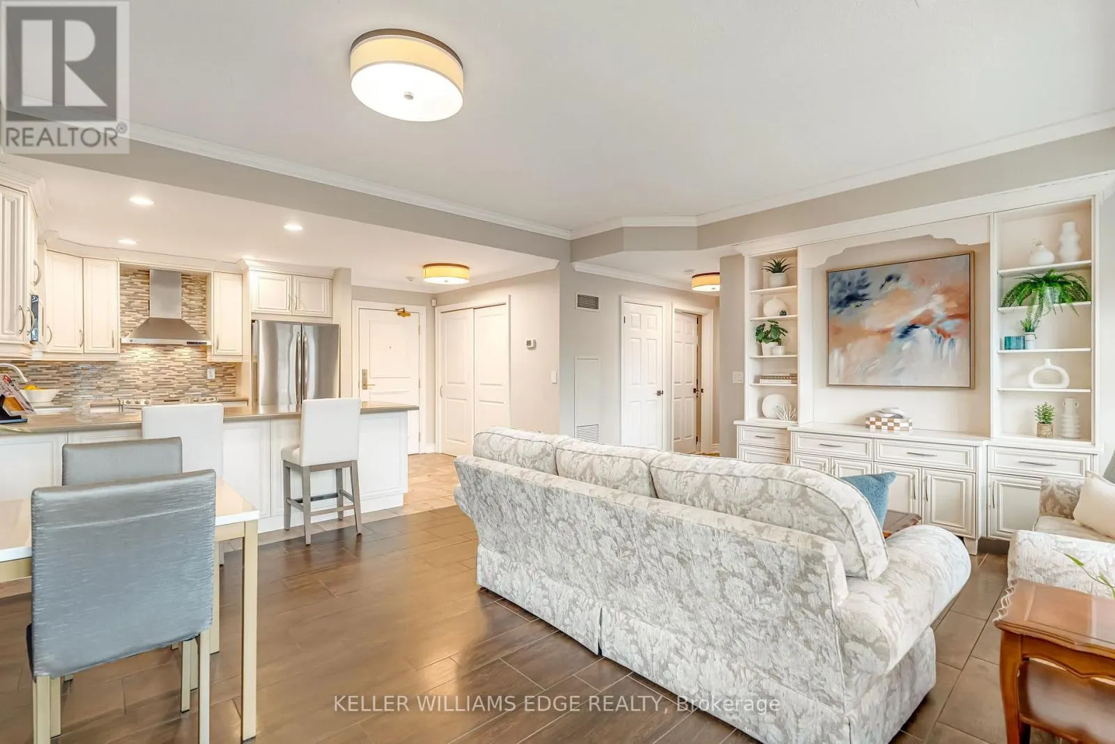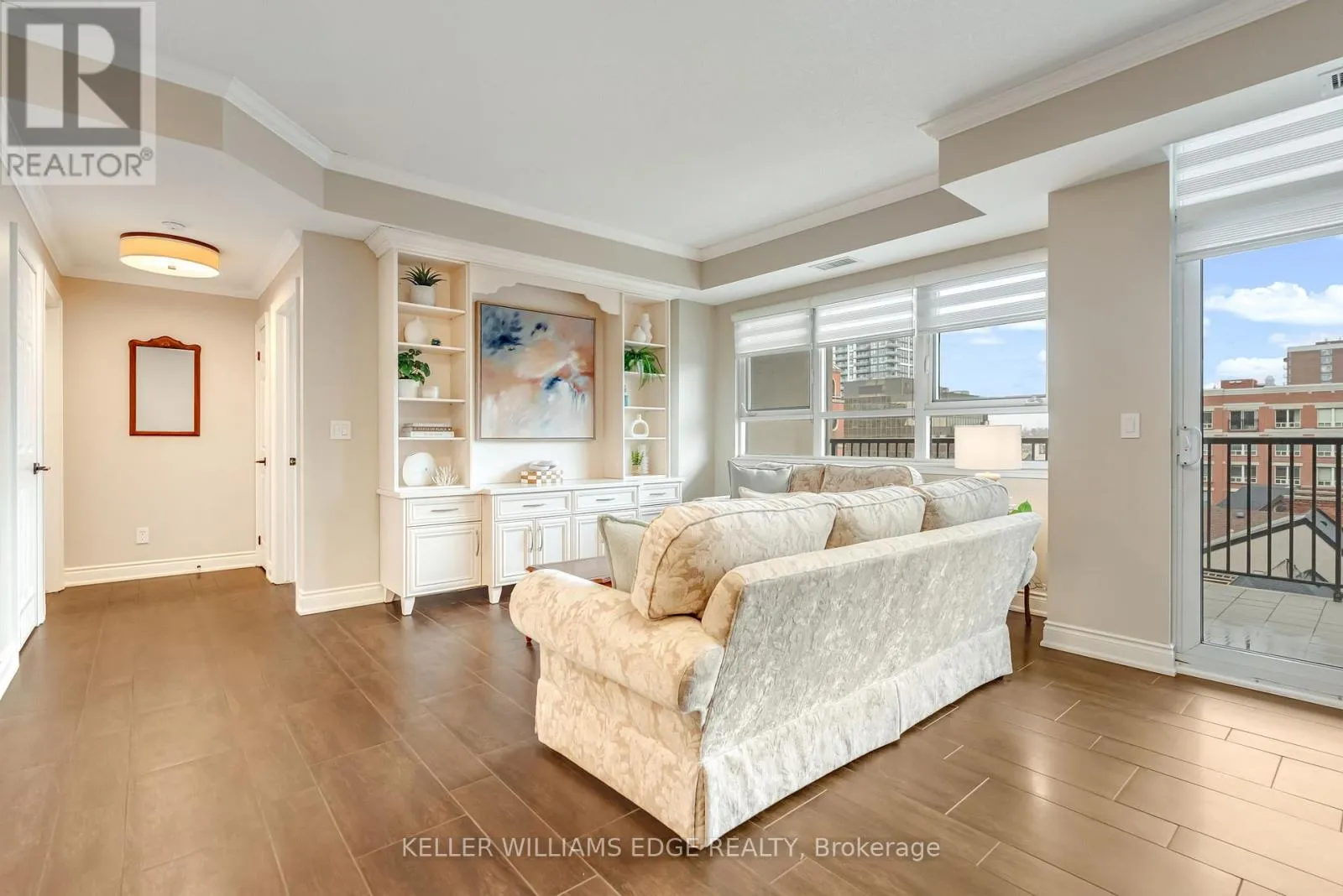 Cross Streets: Lakeshore Road. ** Directions: Lakeshore Road to Elizabeth Street. Location, location. Welcome to The Baxter, one of downtown Burlington's most desirable condo residences, where everything you need is right at your doorstep; restaurants, boutique shopping, grocery stores, the lakefront, Spencer Smith Park, and scenic walking and biking trails. This spacious and beautifully updated one-bed, one-bath suite on the fifth floor offers approximately 871 sq. ft. of thoughtfully designed living space. The unit has been tastefully renovated with a custom kitchen featuring soft-close cabinetry, Caesarstone countertops, pot drawers, and custom millwork, complemented by new flooring and updated lighting throughout. A large north-facing balcony extends your living space outdoors and overlooks The Village Square.Additional highlights include ensuite laundry, an oversized storage locker conveniently located just across the hall, and secure underground parking. Residents enjoy recently renovated common areas, concierge service, and exceptional value with all-inclusive maintenance fees covering heat, hydro, water, parking, locker, and - as of June 1 - high-speed internet and cable with streaming services. An ideal opportunity to enjoy a low-maintenance lifestyle in Burlington's vibrant and ever-growing downtown core. (id:27476)