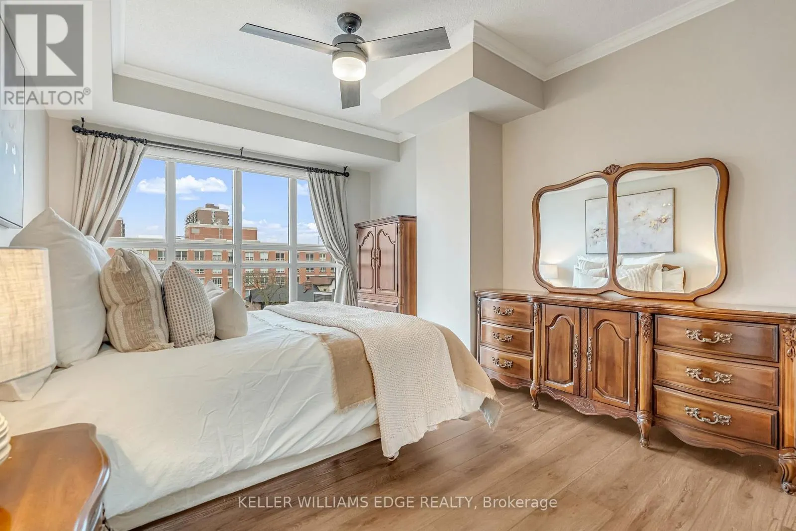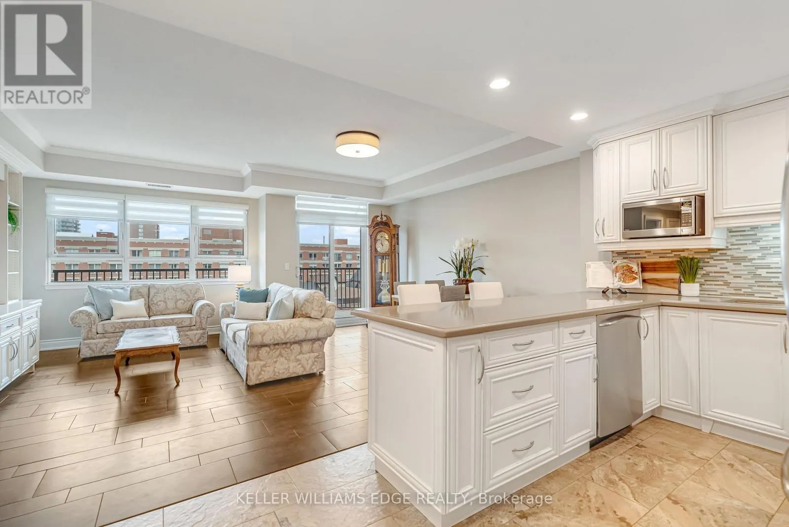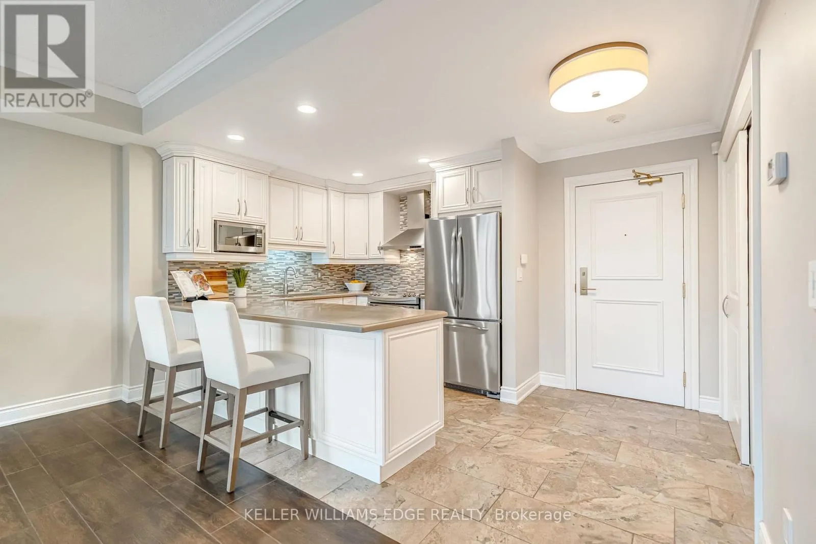 Cross Streets: Lakeshore Road. ** Directions: Lakeshore Road to Elizabeth Street. Location, location. Welcome to The Baxter, one of downtown Burlington's most desirable condo residences, where everything you need is right at your doorstep; restaurants, boutique shopping, grocery stores, the lakefront, Spencer Smith Park, and scenic walking and biking trails. This spacious and beautifully updated one-bed, one-bath suite on the fifth floor offers approximately 871 sq. ft. of thoughtfully designed living space. The unit has been tastefully renovated with a custom kitchen featuring soft-close cabinetry, Caesarstone countertops, pot drawers, and custom millwork, complemented by new flooring and updated lighting throughout. A large north-facing balcony extends your living space outdoors and overlooks The Village Square.Additional highlights include ensuite laundry, an oversized storage locker conveniently located just across the hall, and secure underground parking. Residents enjoy recently renovated common areas, concierge service, and exceptional value with all-inclusive maintenance fees covering heat, hydro, water, parking, locker, and - as of June 1 - high-speed internet and cable with streaming services. An ideal opportunity to enjoy a low-maintenance lifestyle in Burlington's vibrant and ever-growing downtown core. (id:27476)