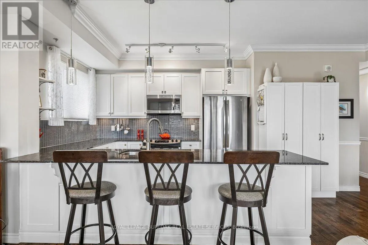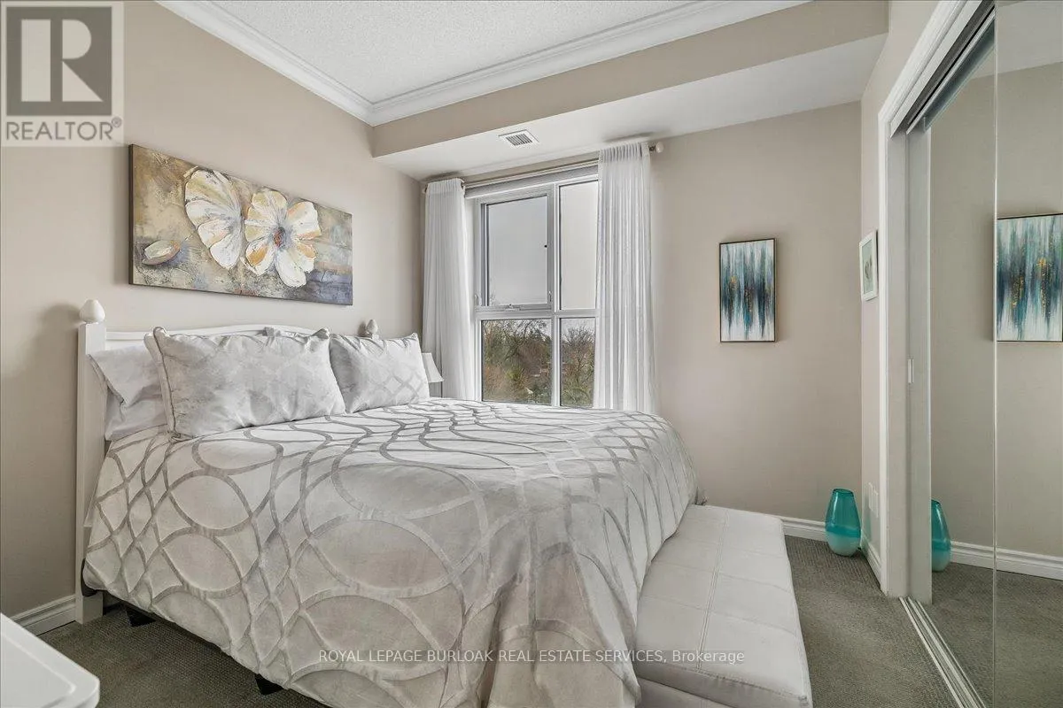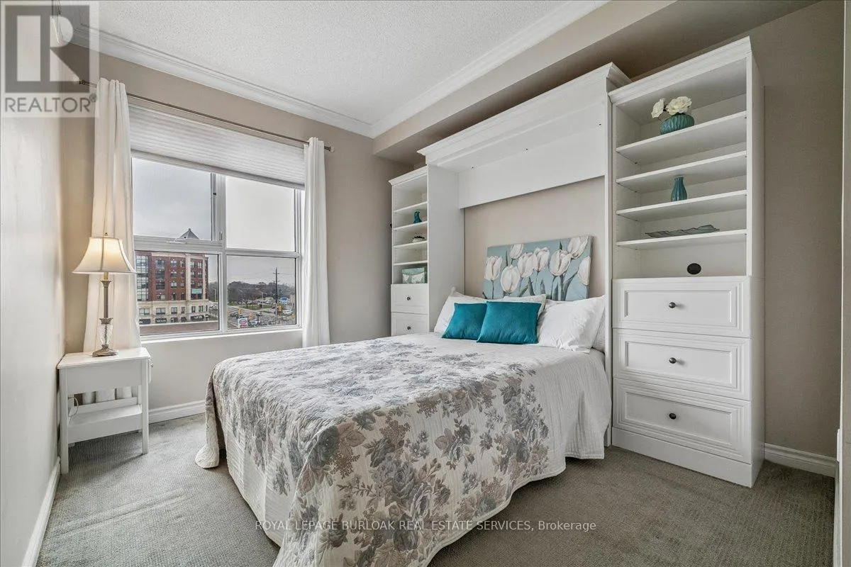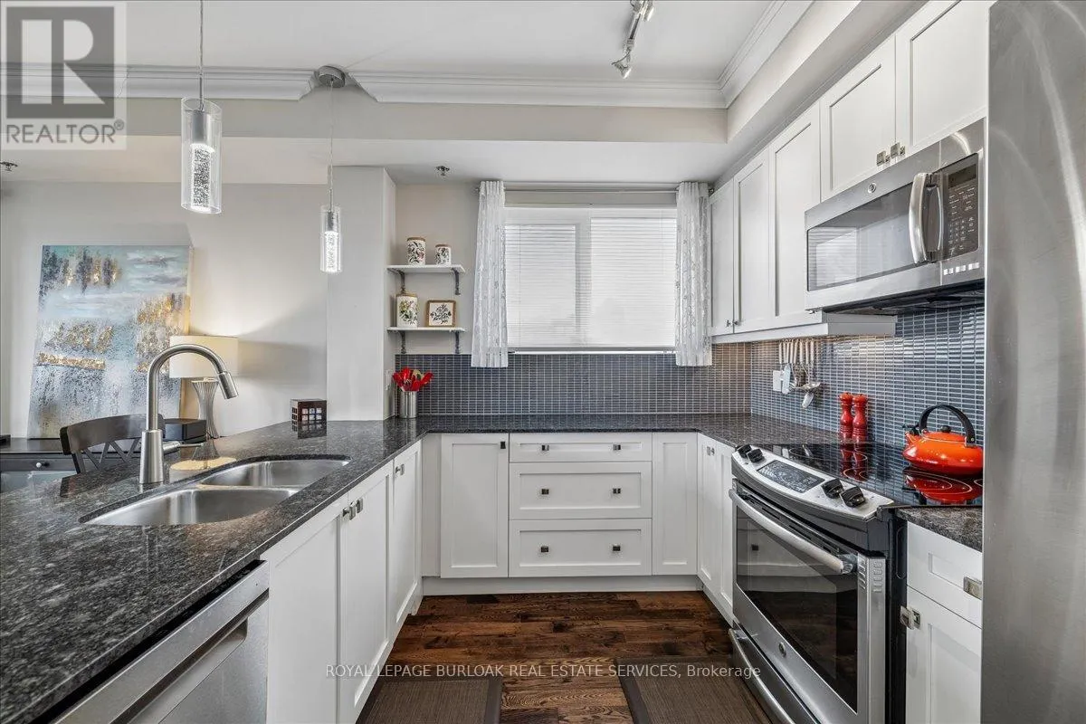 Cross Streets: Waterdown and LaSalle Park Road. ** Directions: Waterdown Road south to Plains Road and turn East. Welcome to Suite 408 @ 34 Plains Road East in Aldershot. A gorgeous "Boutique styled" 1,147 sq ft condo with South West exposure to beautifully landscaped backyards - just like having your own backyard, with no maintenance required! Huge living and dining area that holds a large built-in entertainment/TB console. Step out of the entertainment area thru French doors onto a 220 sq ft outdoor "Retreat" with retractable screen doors and a semi-covered roof, for rainy evenings. 2 spacious bedrooms with lots of light and escarpment views and 2 bathrooms supply lots of alternatives for guests. Chef's style upgraded kitchen with squeaky-clean Stainless Steel appliances, all soft close cupboards and drawers and granite counters. Note: bed in the master is a Murphy bed, which can be included. Mint condition. Hardwood throughout this unit, except for the 2 beds and 2 baths. Short stroll to LaSalle Park and the Marina. Also short walk to the Aldershot GO and quick driving access to the 403. Large storage locker and 2 parking spots make it a wonderful home in a wonderful location! (id:27476)