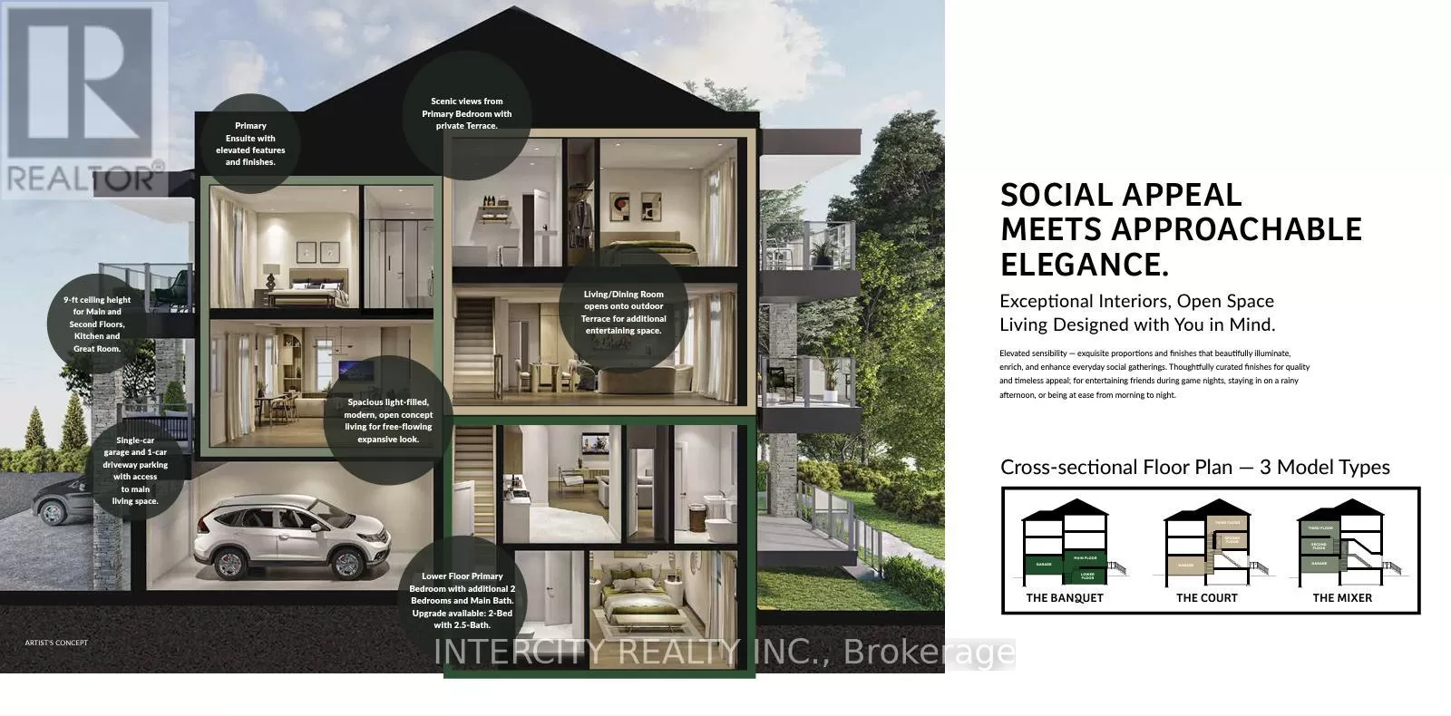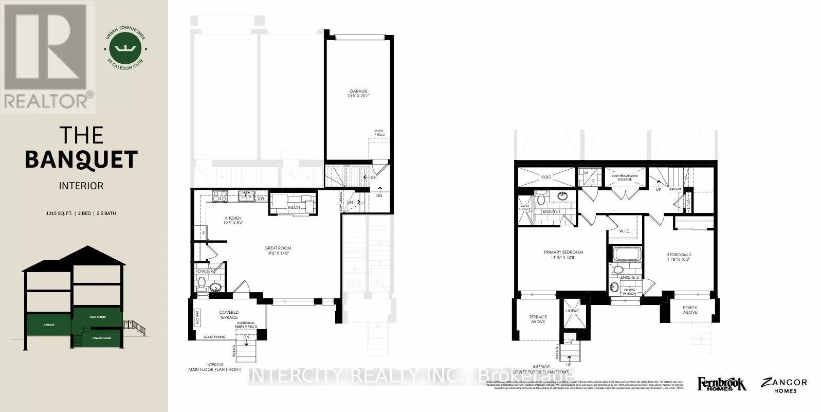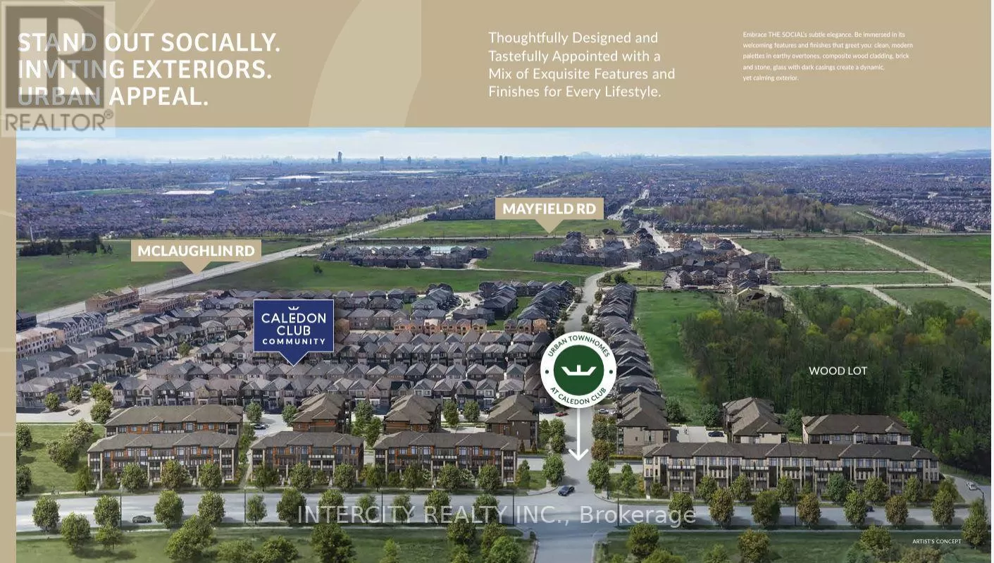 Tim Manley & Petch ave Welcome to this stylish and contemporary 2 bedroom with 2 ensuite Urban Townhouse. Boasting a spacious 1315 Sq.Ft over two floors located in prestigious Caledon Club community. Direct access to private garage with additional driveway space. Enjoy your morning coffee on your covered terrace (BBQ Allowed). Bright and sunny large windows: bedroom 72'w x 24' bathroom 60' x 42'h. Bonus package: cap dev charges, 3 S/S appliances & white stacked washer/dryer, free assignment, right to lease, 9' smooth on main, 7 9/16' laminate flooring & 12 x 24 porcelain tiles. Custom designed deluxe kitchen cabinets with taller upper cabinets, soft close doors and drawers, cutlery divider and stone countertops. Don't miss out! Book your sales appointment today! **EXTRAS** Pre-construction sales occupancy 2025 (id:27476)