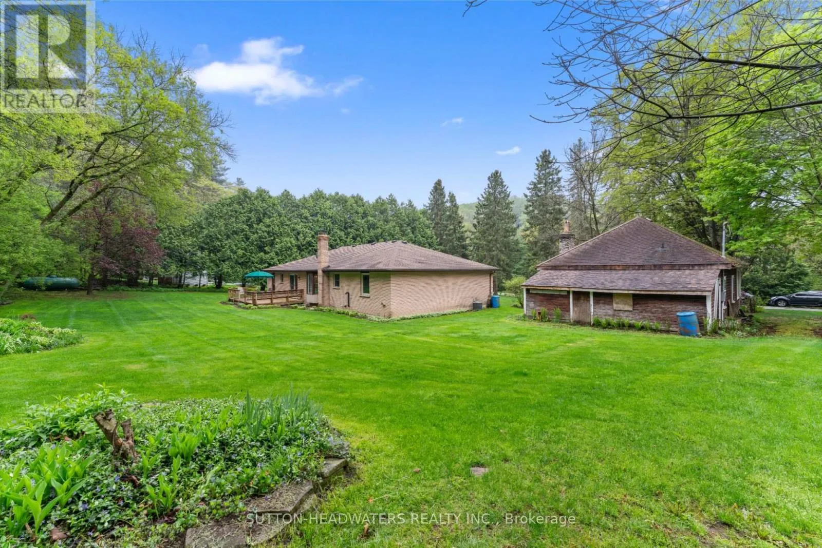 Cross Streets: forks of the credit / Dominion st. ** Directions: Dominion st. Nestled on the serene and sought-after Dominion St. in the historic hamlet of Brimstone, this charming bungalow is hitting the market for the first time. Backing onto a mature forested yard, the property boasts a private, large lot with an as-is accessory building. The primary bedroom features a luxurious ensuite, while the homes cozy layout is perfect for relaxed living. Steps from Forks of the Credit Park and the Bruce Trail, and minutes to Caledon Ski Club and Pulpit Golf Club, outdoor enthusiasts will feel right at home. Just 35 minutes to Pearson Airport and under an hour to downtown Toronto, this retreat offers the best of both worlds. Buyer/buyers agent to conduct due diligence. (id:27476)