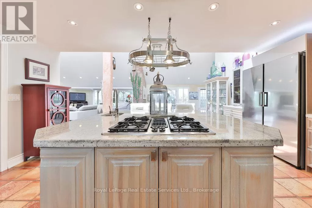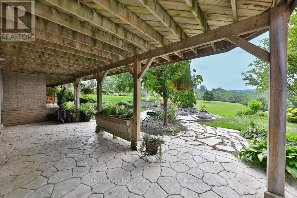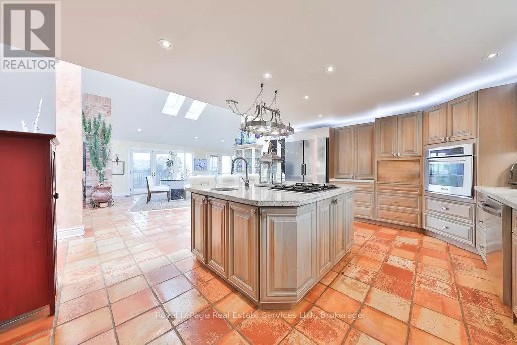 Cross Streets: Hurontario St. & Olde Base Line Rd. ** Directions: Google Map Address. Welcome to 12 Ingleview Drive in charming Inglewood offering the serenity of country living with city convenience nearby. Set on a breathtaking 3.4-acre lot, this beautifully maintained bungalow boasts nearly 5,000 sq ft of finished living space with panoramic views and stunning sunsets. With 3+1 bedrooms and 3 full bathrooms, the home is thoughtfully designed for comfort, multigenerational living, and wheelchair accessibility. Features include an elevator lift, extra-wide hallways and doorways, roll-in showers, and a fully finished lower level with its own kitchen, family room, laundry, and private entry ideal for an in-law suite or separate rental opportunity. The main level showcases an open-concept layout filled with natural light from large picture windows and skylights. The kitchen is a chefs dream with granite countertops and backsplash, oversized island, gas range, built-in oven, side-by-side fridge/freezer, and a prep sink.The living and family rooms share a double-sided gas fireplace and offer wall-to-wall views of the peaceful landscape. The primary bedroom includes a walk-in closet, double garden doors to the deck, and a spa-like ensuite with a jet tub, bidet, and new toilet (2024). The lower level offers a second full kitchen, rec room, family room with gas fireplace, large bedroom, roll-in shower, second laundry, and abundant storage including a cedar-lined closet and finished cantina.Additional home highlights: Brazilian cherry hardwood, stamped concrete patio, full-width deck with remote awning, pond with new liner (2025), central vac, 3-car garage with elevator lift access, horseshoe driveway, gas BBQ hook-up, and workshop. Roof (approx. 12 yrs), furnace and A/C (approx. 10 yrs). A rare estate that blends space, functionality, and elegance in a beautiful setting. (id:27476)