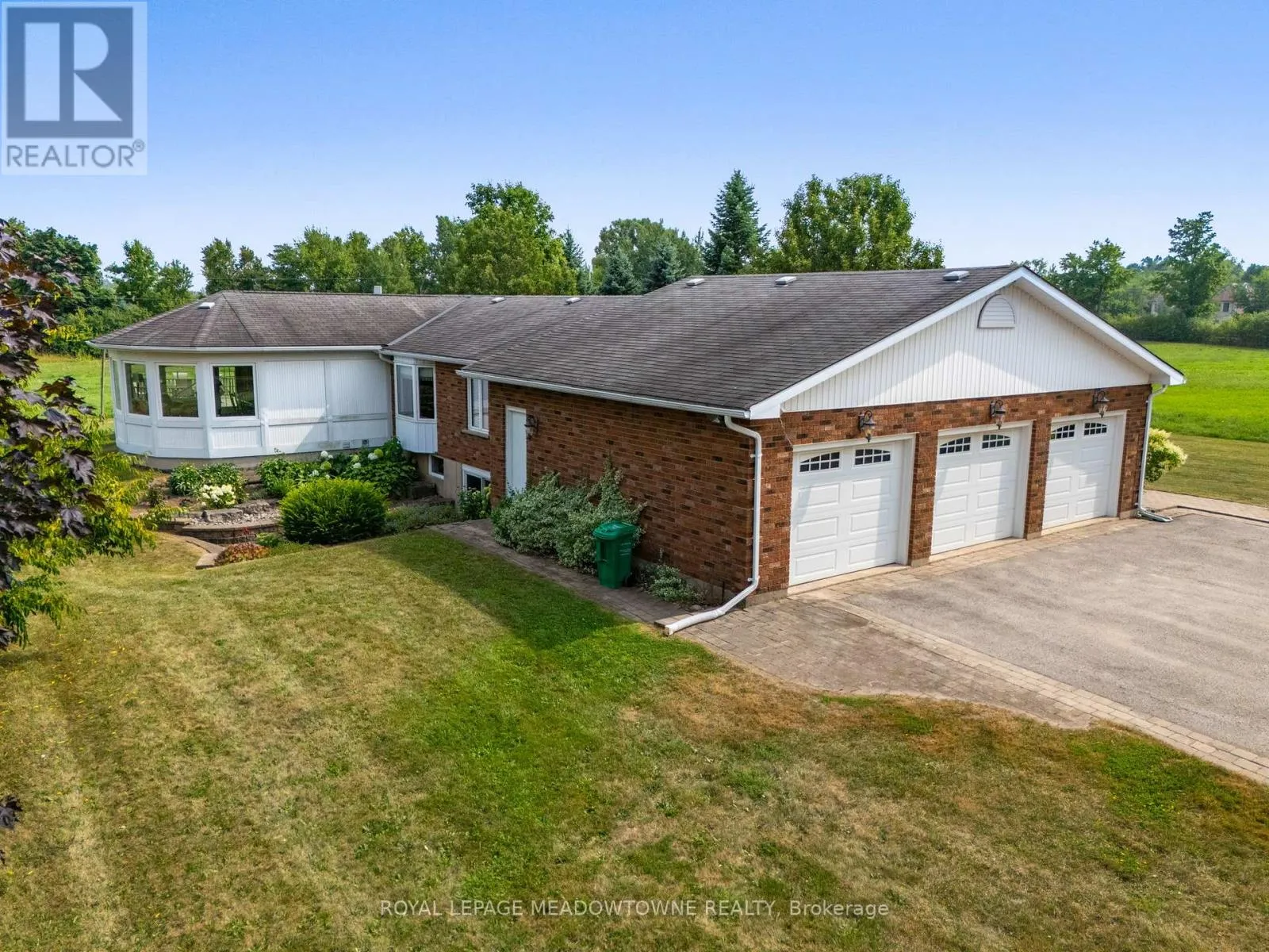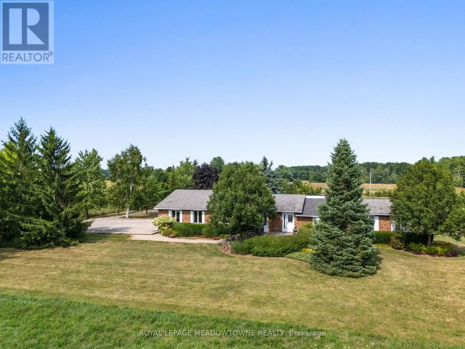 Winston Churchill & Old School Investment! Family Home! Bungalow on 50 Flat acres just north of the proposed Hwy 413. Currently farmed with great possibilities. The 3 bedroom home has a huge, sunfilled kitchen with morning sunrises and a large primary suite with walk-out. Large family room in the lower level with walkout/separate entrance and useable unfinished space. Oversized 3 car garage and Main floor laundry with another entrance. Large 90 x 40 barn easily convertible to a workshop and separate run-in shed which may also be used as a workshop. Home and buildings privately located at the end of a long drive. Conveniently Located close to Brampton and Georgetown. (id:27476)