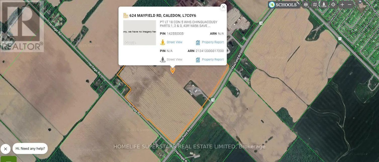 Cross Streets: HERITAGE RD AND MAYFIELD RD. ** Directions: NORTH EAST CORNER OF HERITAGE RD AND MAYFIELD RD. Great opportunity to acquire 93.84 acres of a large parcel of land (North East corner of Mayfield rd. and Heritage rd. ) in the fast growing areas of Caledon .Designated employment areas in Caledon official plan. The land is a part of Alloa secondary plan of Caledon. New highway 413 route exit will be right on the corner of this property making it high exposure site for future development. The buyer and his agent to verify all the info regarding development potential of the property. VTB(vendor take back) possible to a qualified buyer . (id:27476)