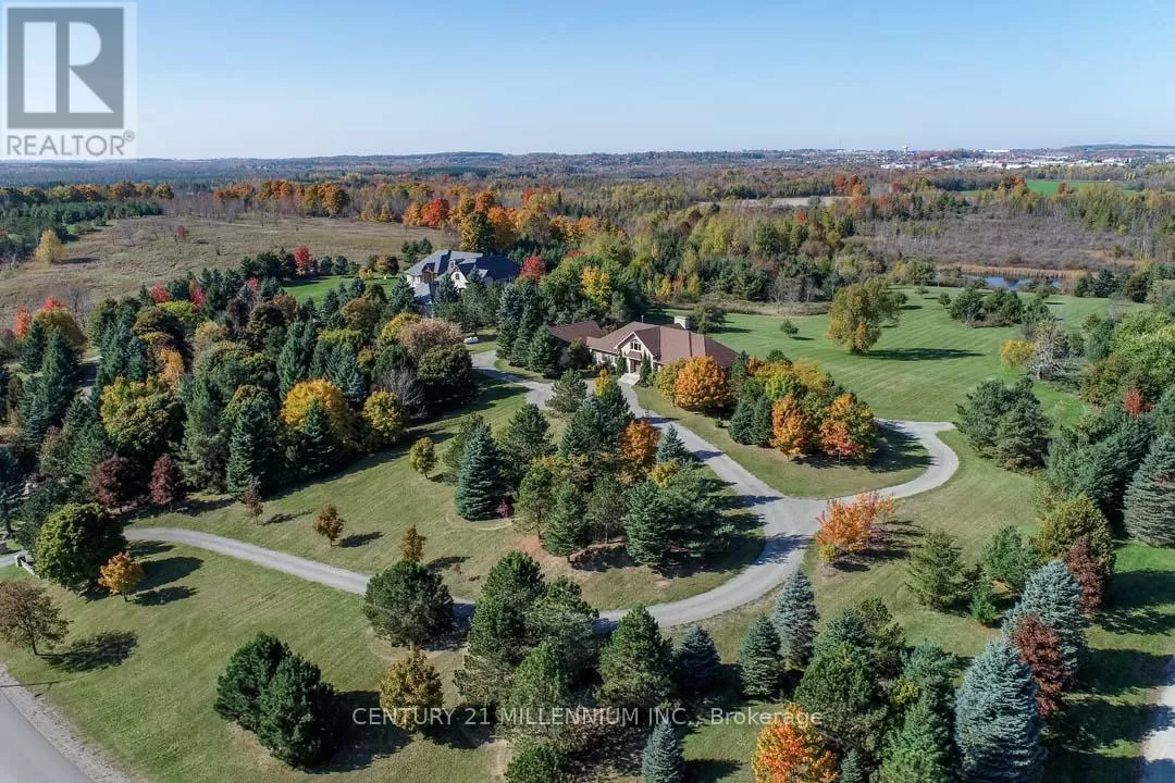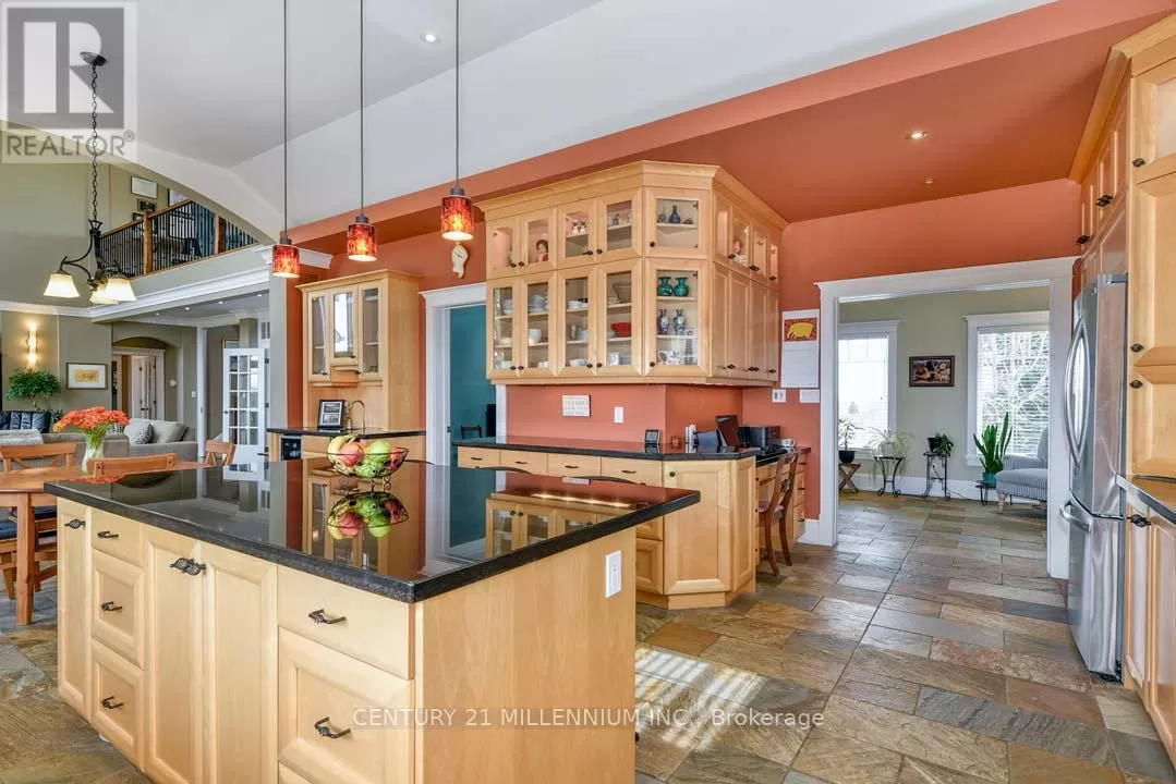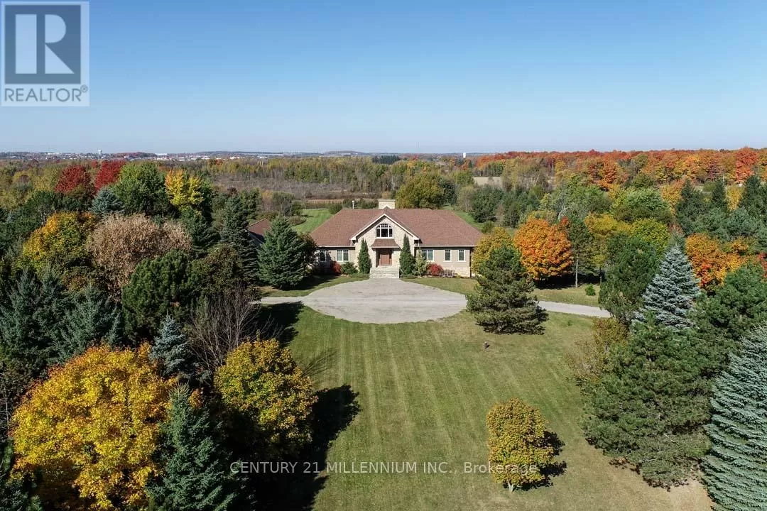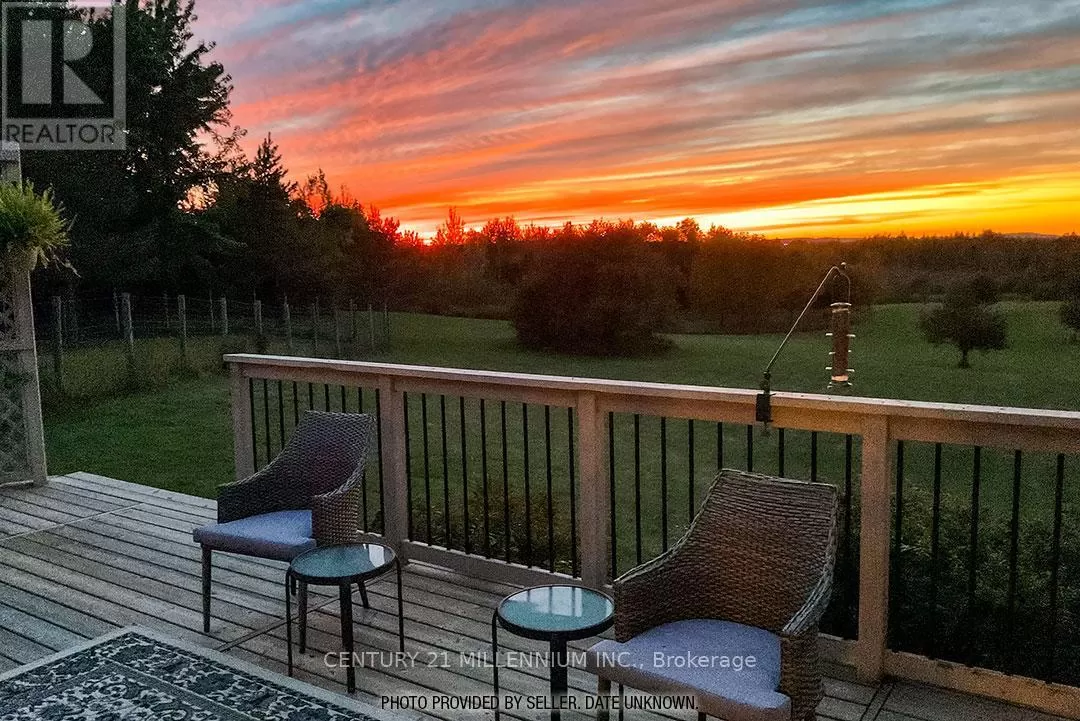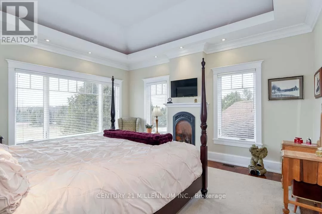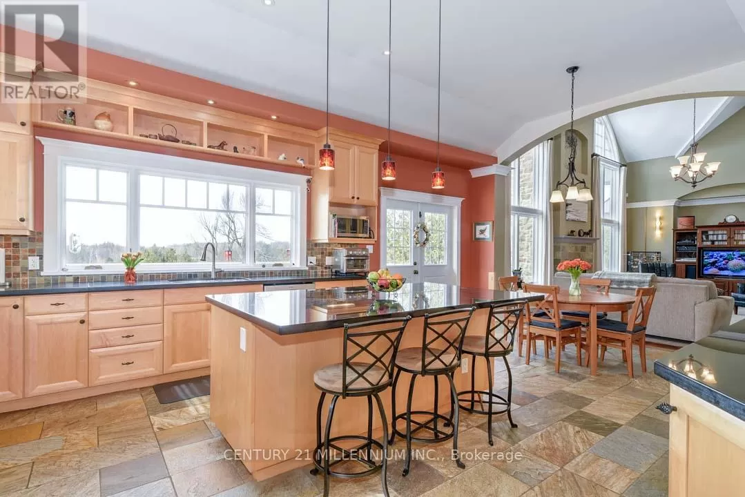 Cross Streets: Porterfield Rd (136)/Flaherty Lane. ** Directions: From the South - Hwy 10 North - West on 109 Bypass - South on 136 (Porterfield Rd) - West on Flaherty Ln. On a prestigious cul de sac, mins outside Alton & Orangeville, is this outstanding custom-designed 3+2 bed, 3.5 bath bungaloft with a finished walk-out bsmt in the French chateau style, with breathtaking views, both north and south, over the Caledon countryside. Sitting stately on the hillside w/ manicured grounds, this home features 4 fireplaces, multiple walkouts, a fenced dog run, a large wraparound deck w/ views of the private rear field w/ apple trees, and a 1+ acre pond. Bright & spacious 2-bed in-law suite has a 1-car attached garage (a rarity!), sep entry & a walk-out to a private patio w/ perennial garden. Extensive architectural qualities include elegant crown mouldings, bump-out niches & faux columns, pocket doors, arched hallways, strategically located pot lights, tray ceilings w/ ribbon lighting & quality materials such as cross-sawn oak floors thru/o. Dramatic Great room w/ soaring 19 ft. cathedral ceiling & stone-clad gas FP and mantle is open to the chefs Kitchen in natural maple wood w/ a large c-island w/ b-bar, granite c-tops, 12 ft. tray ceiling w/ lighting, SS appliances, a desk, wet bar, heated stone floors & a garden door to the deck w/ a gas BBQ hook-up. Primary has walk-in closet, gas FP, 5-piece ensuite w/ a glass shower & soaker tub. Laundry rm off the ensuite. Double French pocket doors on the main level offer privacy to the loft Office w/ a gas fireplace, built-in cabinetry & south-facing views. Lower level Rec rm has a garden door w/o to the b/yard. Rough-in 3-piece bath. Built in 2008, offering approx. 5100 sq.ft. of fin living space, 9 ft. ceilings on the main level, privacy, on 10.85 acres, while being close to Highways 10 and 9 for easy commuting, the hospital & Orangeville for all amenities. Near quaint restaurants, craft breweries, farmers markets, TPC Toronto Golf at Osprey Valley, Millcroft Inn & Spa, Hockley Valley Resort, hiking trails & conservation areas, and the Hill Academy. 45 mins to TO & Pearson Airport. (id:27476)