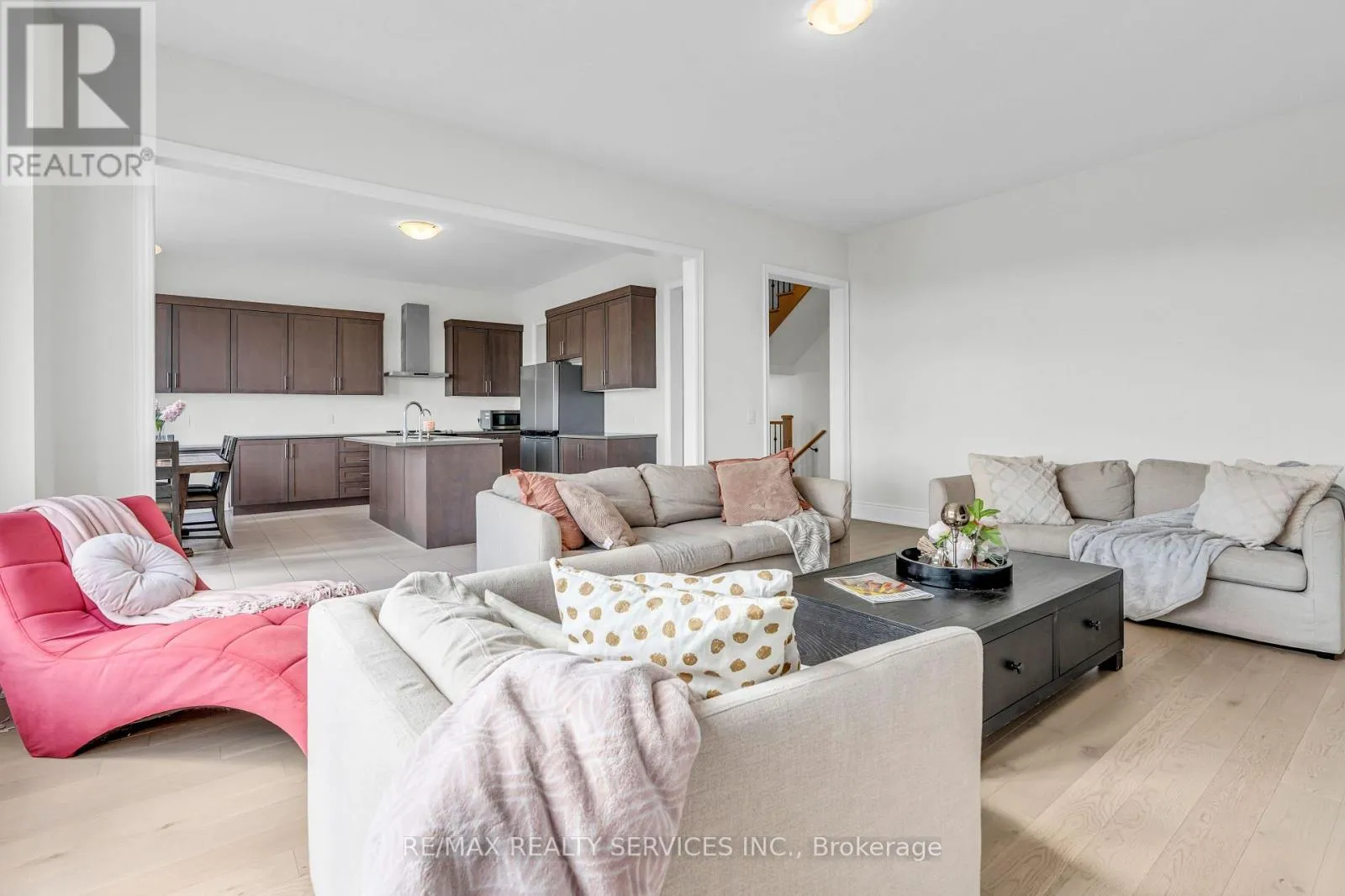 Cross Streets: Airport Rd/Walker Way. ** Directions: off Airport Rd. turn east onto Old Church Rd. north on to Atchinson dr.,James will be the first right. This exceptional 5-bed, 6-bath home offers spacious living with each bedroom featuring a private ensuite and customized walk-in closet. Enjoy 10-ft ceilings on the main floor, 9-ft on the second, a main-floor office, and smooth ceilings throughout. Features include 4 engineered hardwood, oak veneer stairs with metal pickets, crown molding, upgraded baseboards, and main-floor laundry.The walk-out basement boasts 9-ft ceilings, upgraded French doors to a ravine, and rough-ins for a separate suite, including plumbing, electrical, and gas line for BBQ. Optional side entrance available. Additional Features: 200 AMP service, 2-car garage with openers, 4-car driveway parking. Steps to trails, nature, and recreational amenities. (id:27476)