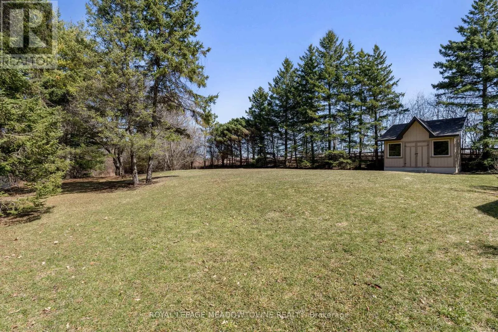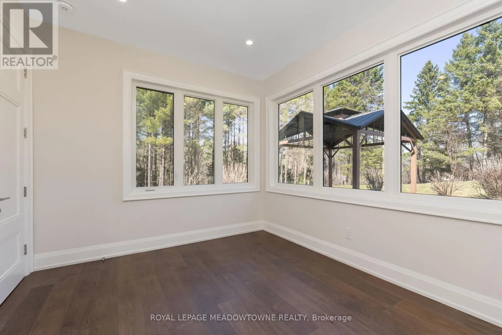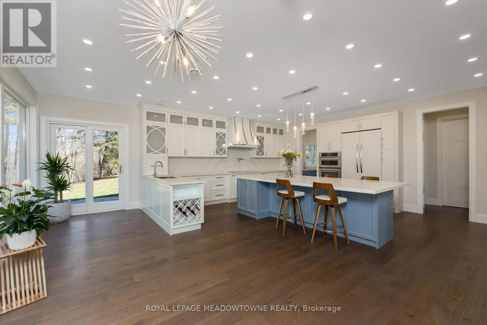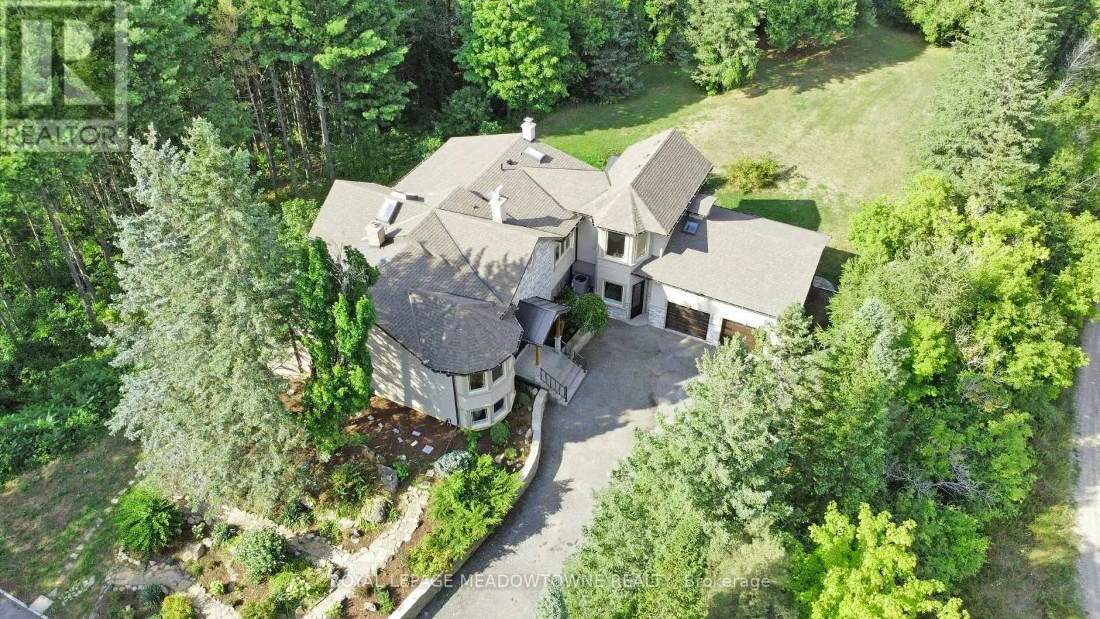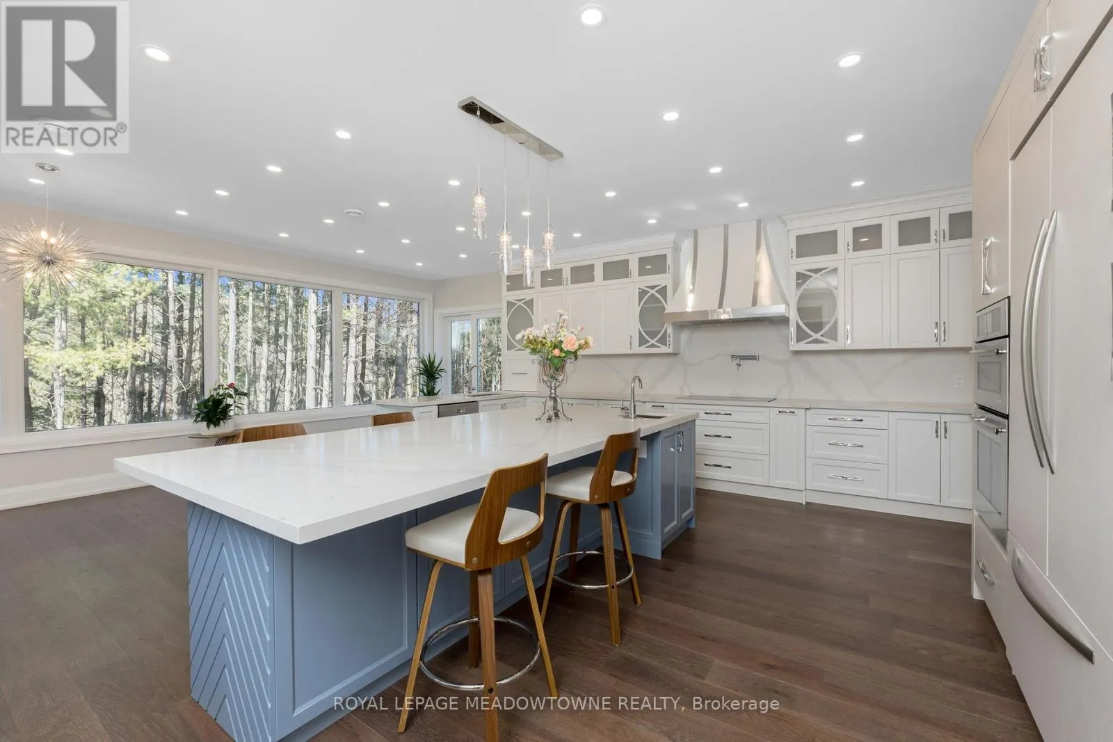 King & Heritage Brand New Custom Luxury Home in Sought-After Southwest Caledon! Be the first to live in this exceptional, privately built estate on a stunning ravine lot near Terra Cotta. Offering over 4,000sq ft of premium living space, this home combines luxury, functionality, and privacy within minutes to GO, Pearson Airport, major highways, and amenities. Featuring a designer chefs kitchen with quartz countertops, oversized island, high-end appliances, and separate pantry. Soaring 22-ftceilings in the living room with custom trim & fireplace. Main floor great room with family/dining area and walkout to a pool-sized yard. Primary suite includes a spa-inspired ensuite, walk-in closet, private balcony, and bonus office/nursery space. Flexible layout with main floor bedroom offering a separate entrance, ensuite bath, and kitchenette ideal for nanny, in-laws, or home office. Quality finishes throughout: thick hardwood flooring, heated floors, custom wood doors & trim, and built-in closet cabinetry. Ample parking, large garden shed/workshop, and the perfect balance of country tranquility with city convenience. High-end appliances, custom trim & millwork, heated floors, separate pantry, private balcony, garden shed, extensive parking. (id:27476)