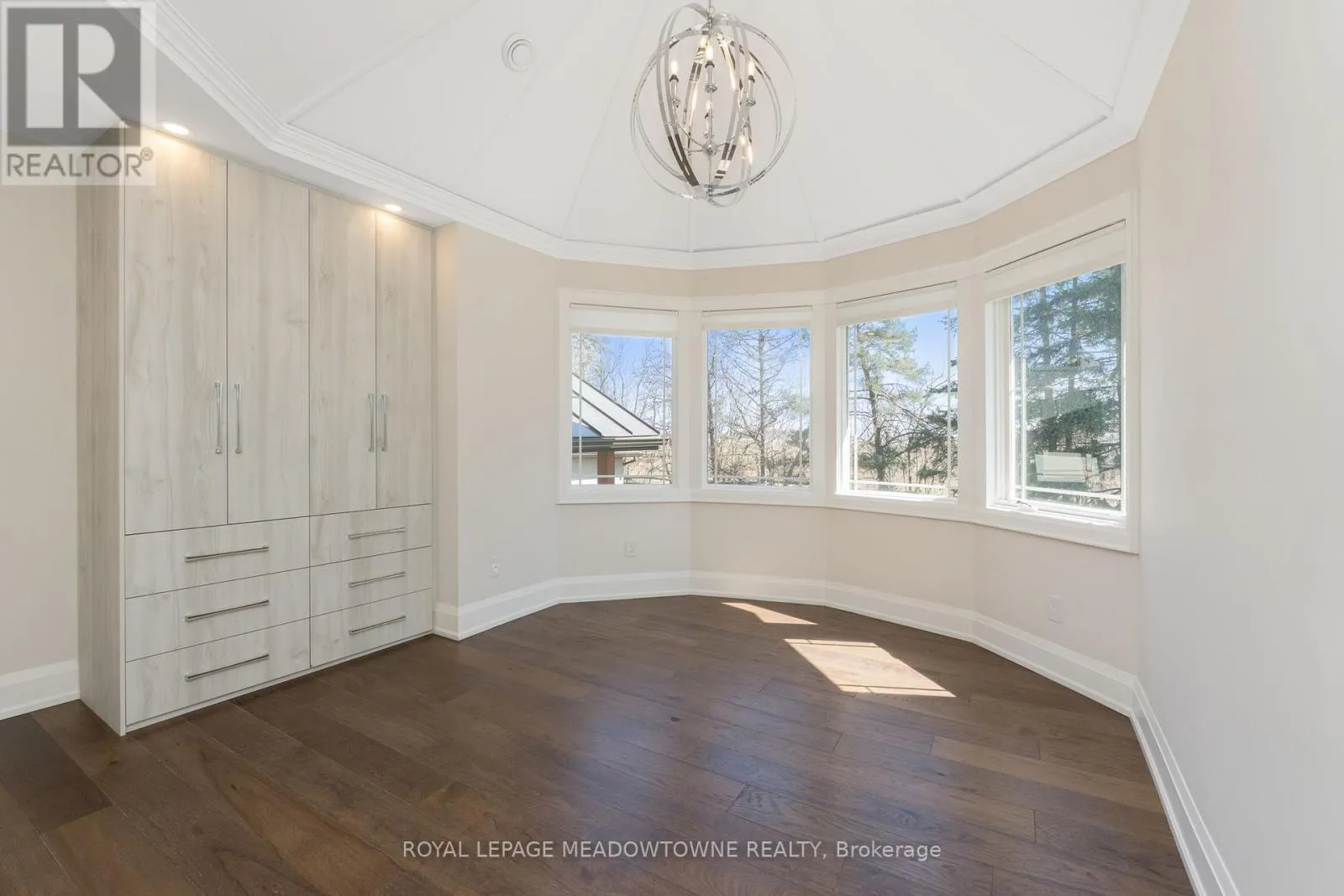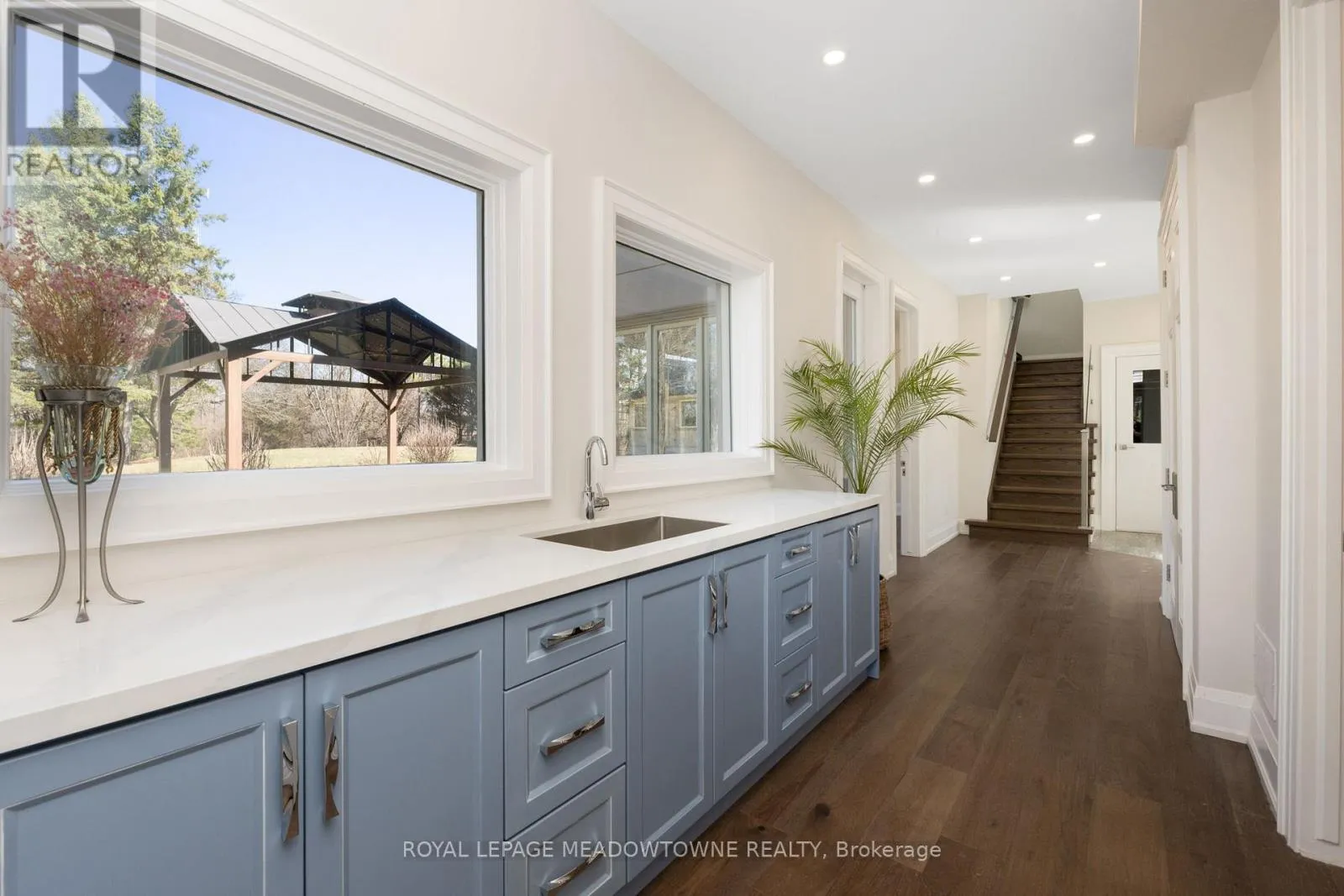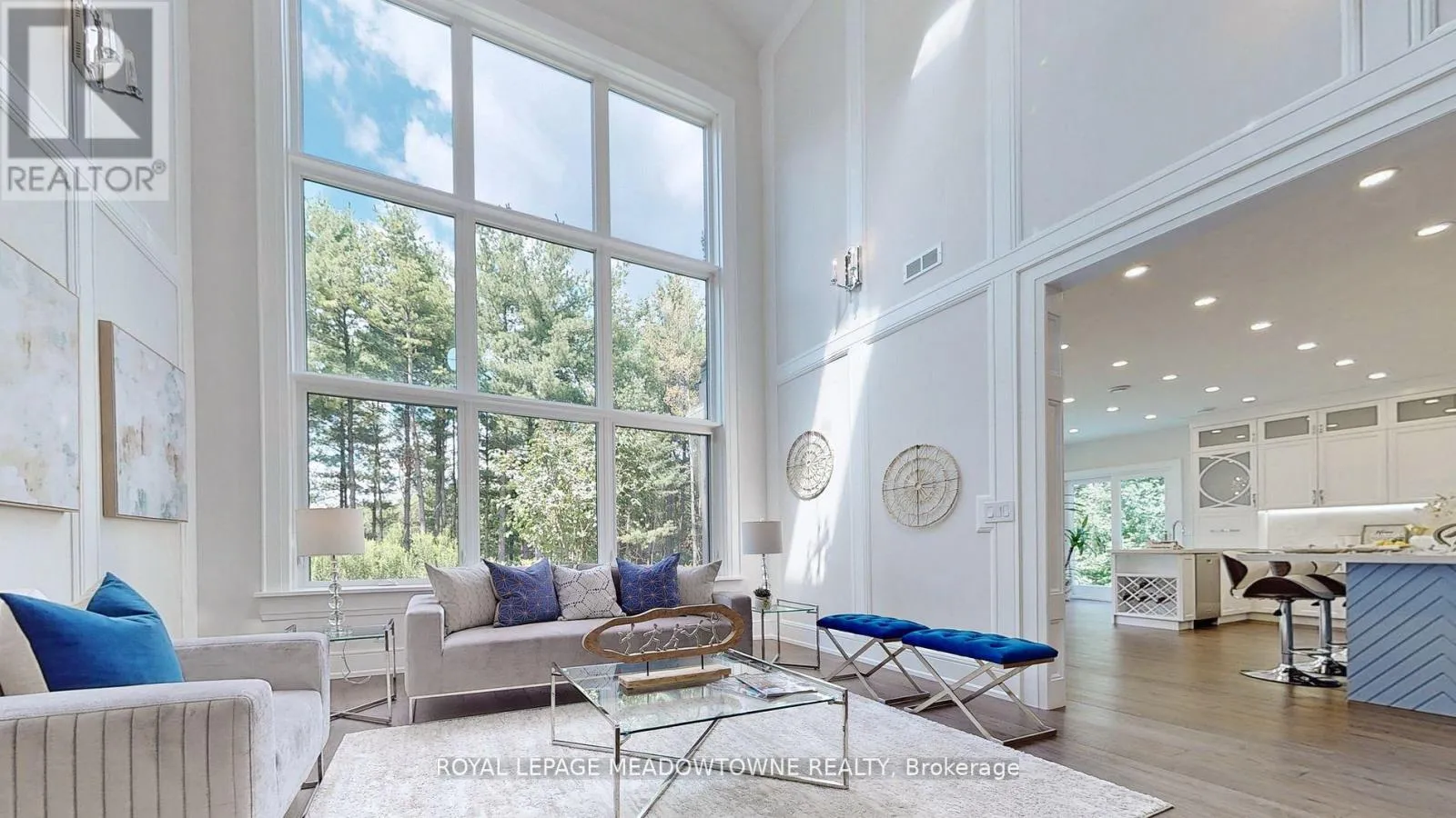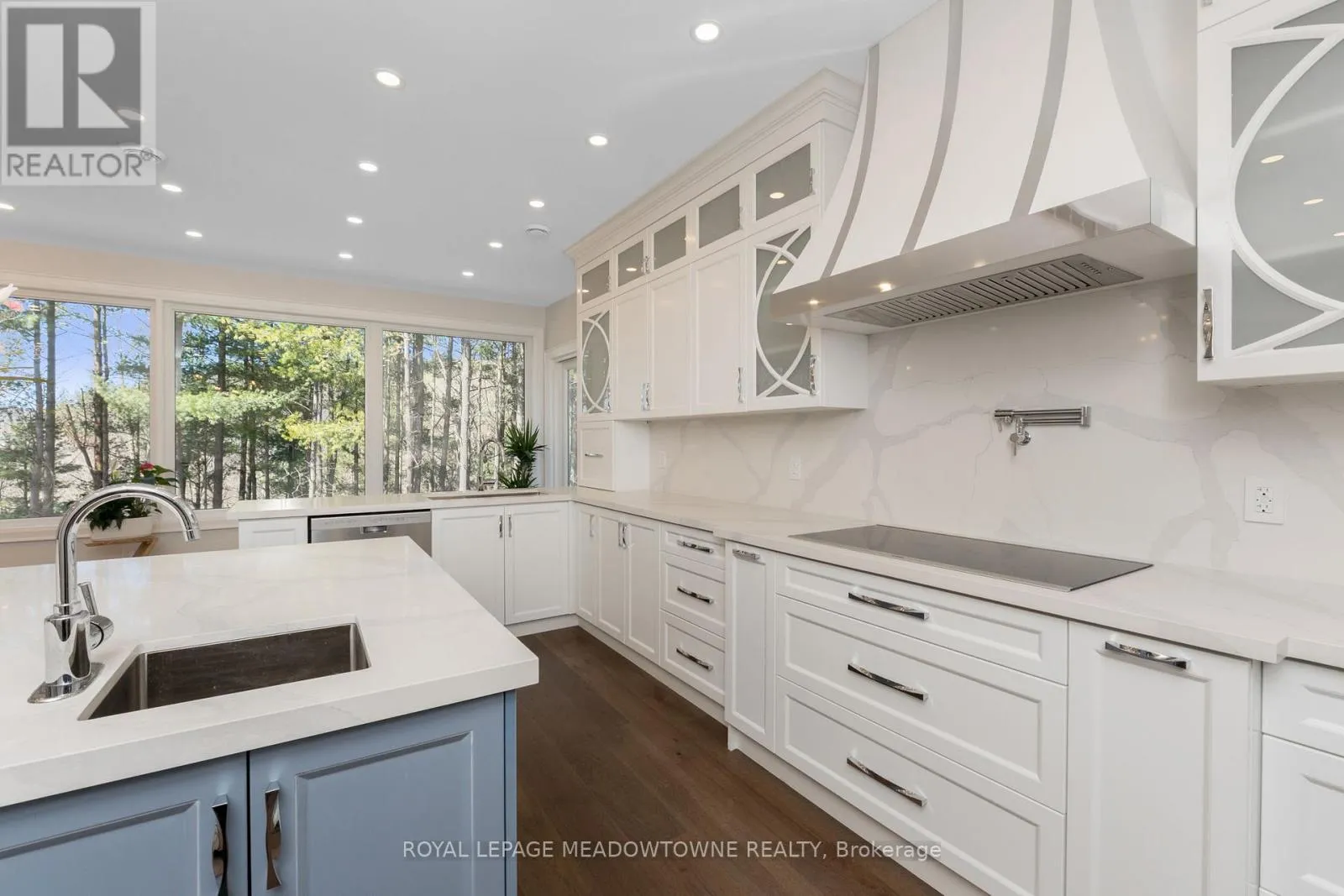 King & Heritage Brand New Custom Luxury Home in Sought-After Southwest Caledon! Be the first to live in this exceptional, privately built estate on a stunning ravine lot near Terra Cotta. Offering over 4,000sq ft of premium living space, this home combines luxury, functionality, and privacy within minutes to GO, Pearson Airport, major highways, and amenities. Featuring a designer chefs kitchen with quartz countertops, oversized island, high-end appliances, and separate pantry. Soaring 22-ftceilings in the living room with custom trim & fireplace. Main floor great room with family/dining area and walkout to a pool-sized yard. Primary suite includes a spa-inspired ensuite, walk-in closet, private balcony, and bonus office/nursery space. Flexible layout with main floor bedroom offering a separate entrance, ensuite bath, and kitchenette ideal for nanny, in-laws, or home office. Quality finishes throughout: thick hardwood flooring, heated floors, custom wood doors & trim, and built-in closet cabinetry. Ample parking, large garden shed/workshop, and the perfect balance of country tranquility with city convenience. High-end appliances, custom trim & millwork, heated floors, separate pantry, private balcony, garden shed, extensive parking. (id:27476)