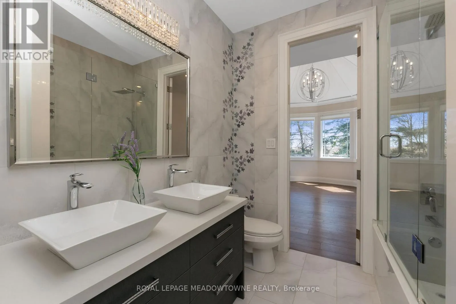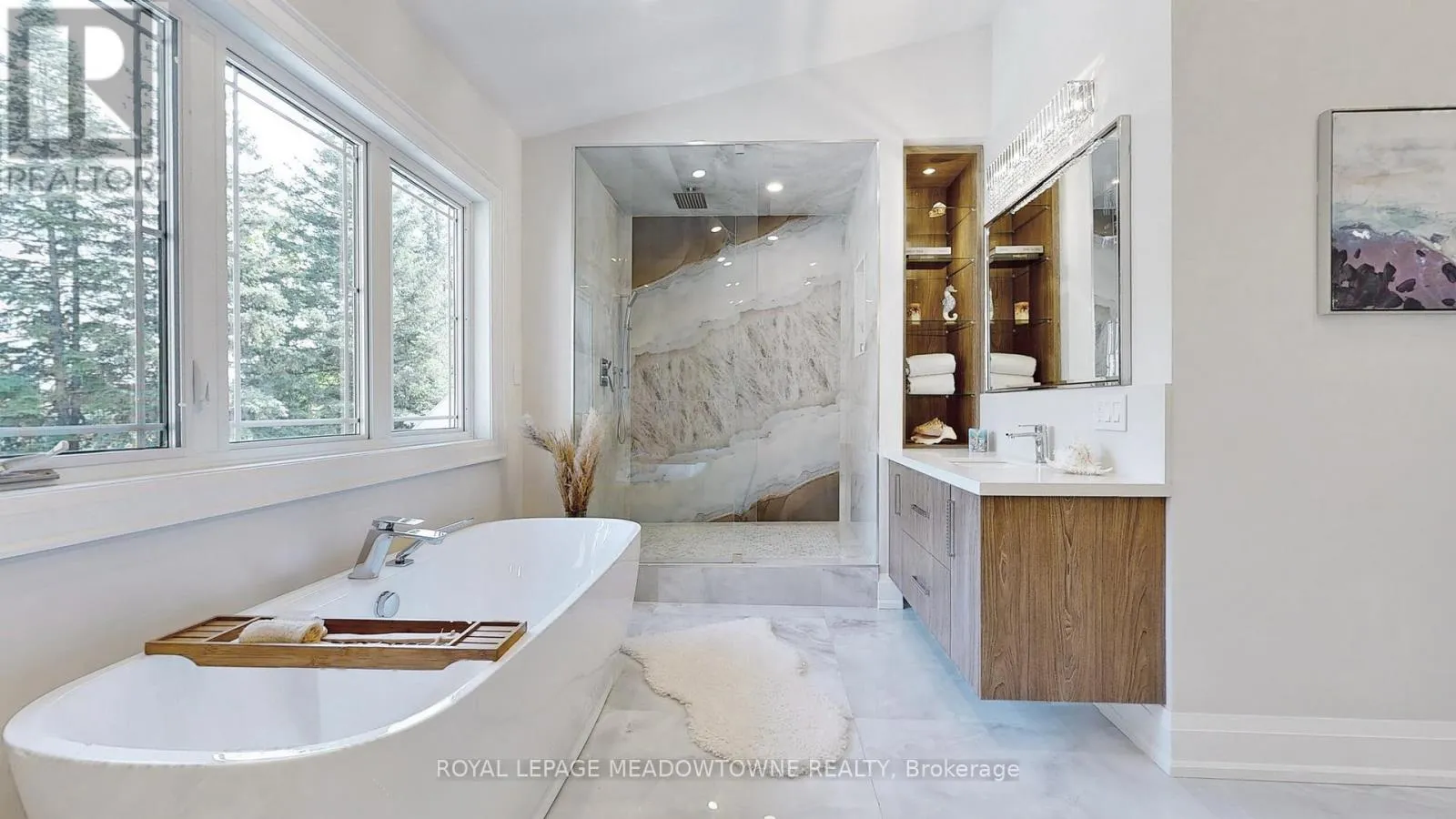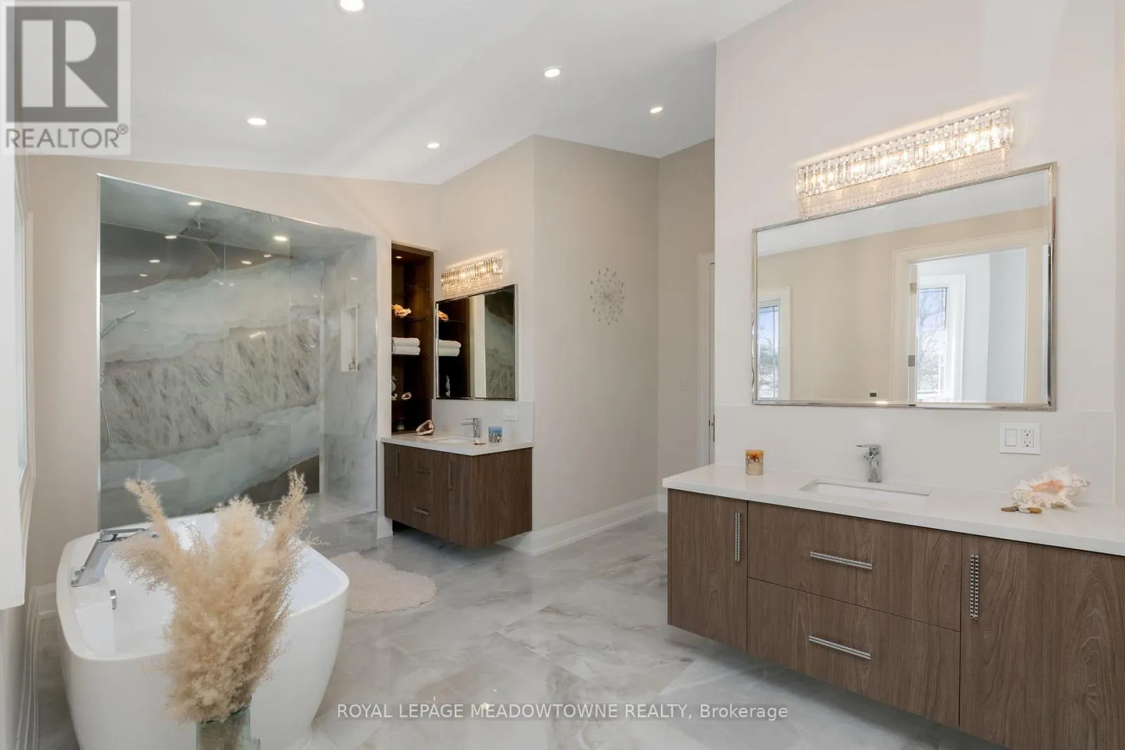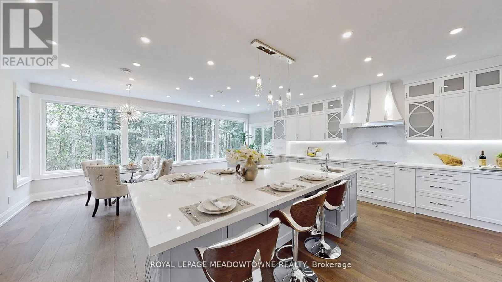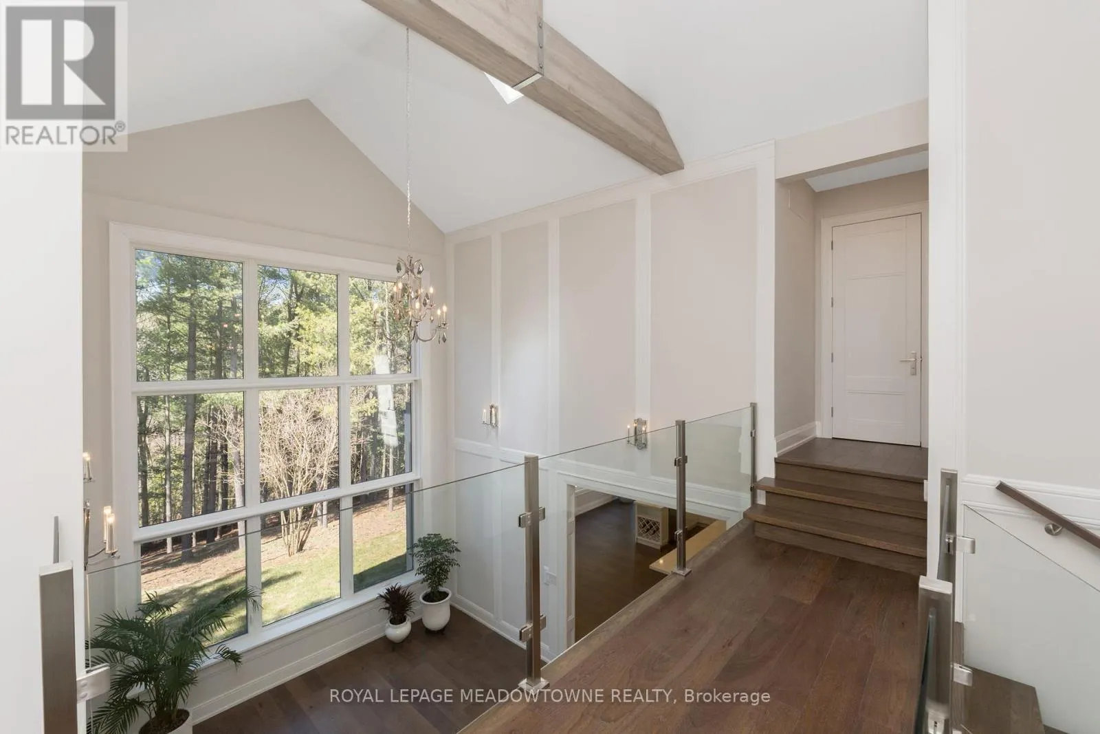King & Heritage Brand New Custom Luxury Home in Sought-After Southwest Caledon! Be the first to live in this exceptional, privately built estate on a stunning ravine lot near Terra Cotta. Offering over 4,000sq ft of premium living space, this home combines luxury, functionality, and privacy within minutes to GO, Pearson Airport, major highways, and amenities. Featuring a designer chefs kitchen with quartz countertops, oversized island, high-end appliances, and separate pantry. Soaring 22-ftceilings in the living room with custom trim & fireplace. Main floor great room with family/dining area and walkout to a pool-sized yard. Primary suite includes a spa-inspired ensuite, walk-in closet, private balcony, and bonus office/nursery space. Flexible layout with main floor bedroom offering a separate entrance, ensuite bath, and kitchenette ideal for nanny, in-laws, or home office. Quality finishes throughout: thick hardwood flooring, heated floors, custom wood doors & trim, and built-in closet cabinetry. Ample parking, large garden shed/workshop, and the perfect balance of country tranquility with city convenience. High-end appliances, custom trim & millwork, heated floors, separate pantry, private balcony, garden shed, extensive parking. (id:27476)