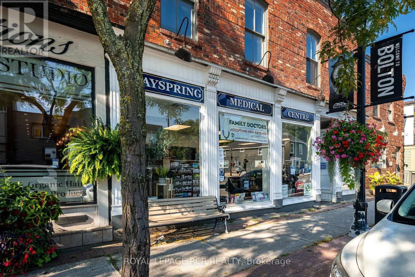 Cross Streets: King St/Queen St. ** Directions: Hwy 9 East, South on Hwy 50 (Queen St N). Calling all investors! An outstanding commercial opportunity in the centre of downtown Bolton, offering both immediate income and future growth potential. Designated Core Commercial, this property combines strong income stability with long-term flexibility. With a total building size of 12,000 sq. ft., the property is comprised of seven residential apartments and two commercial units. The commercial portion spans 5,074 sq. ft., delivering prime street-level exposure, while the residential units contribute stable, long-term rental income. Positioned along Queen Street North, it benefits from excellent visibility, steady pedestrian traffic, and convenient access to local amenities. The Core Commercial zoning permits a wide range of current and future uses, offering investors versatility and the potential to reposition or redevelop in line with Bolton's evolving downtown landscape. (id:27476)