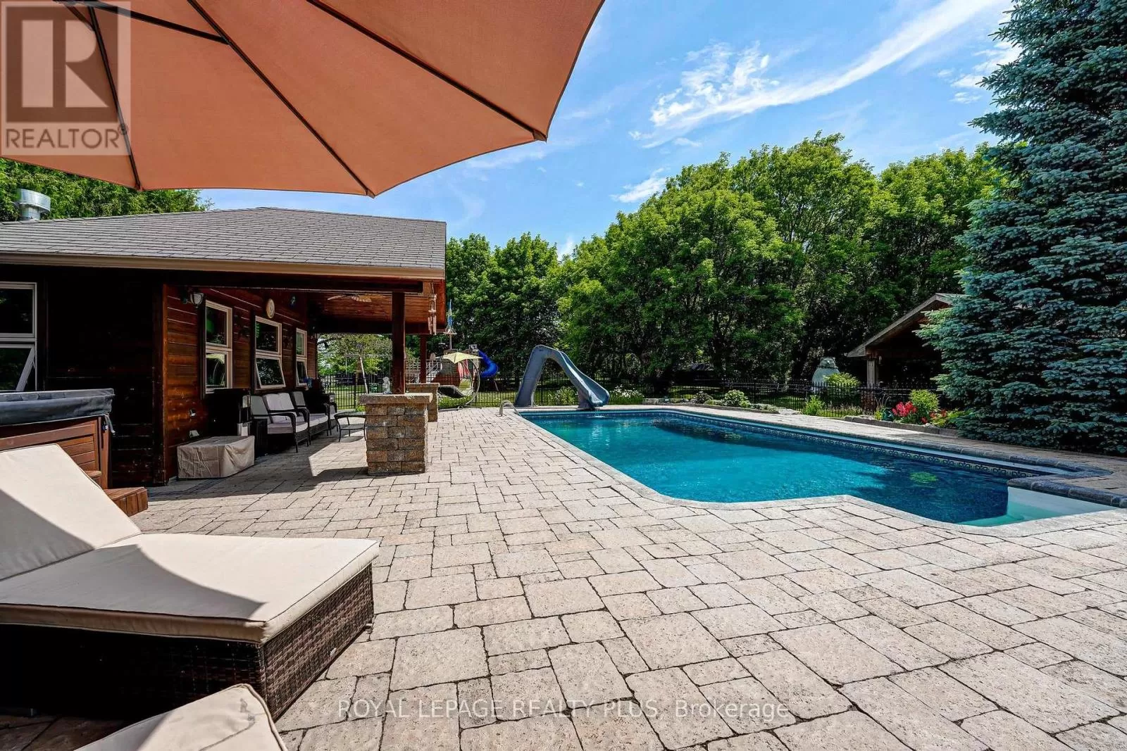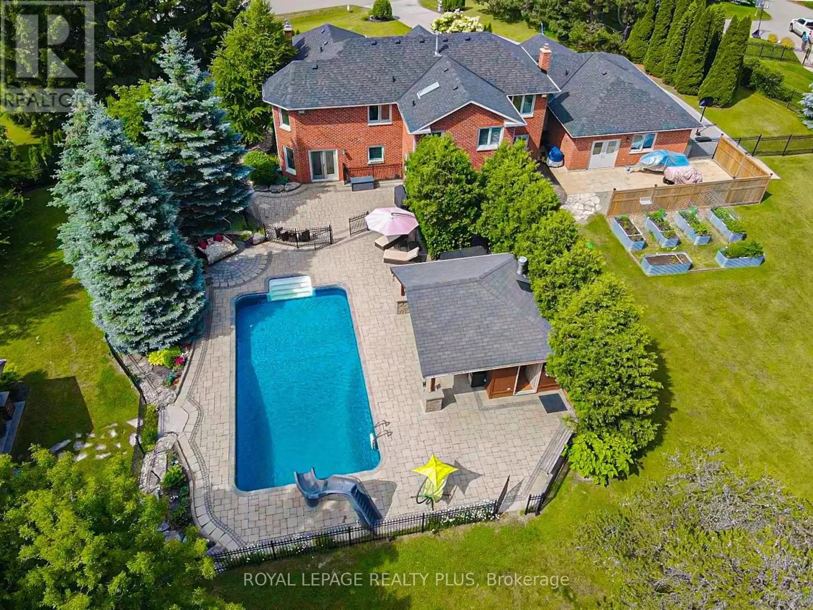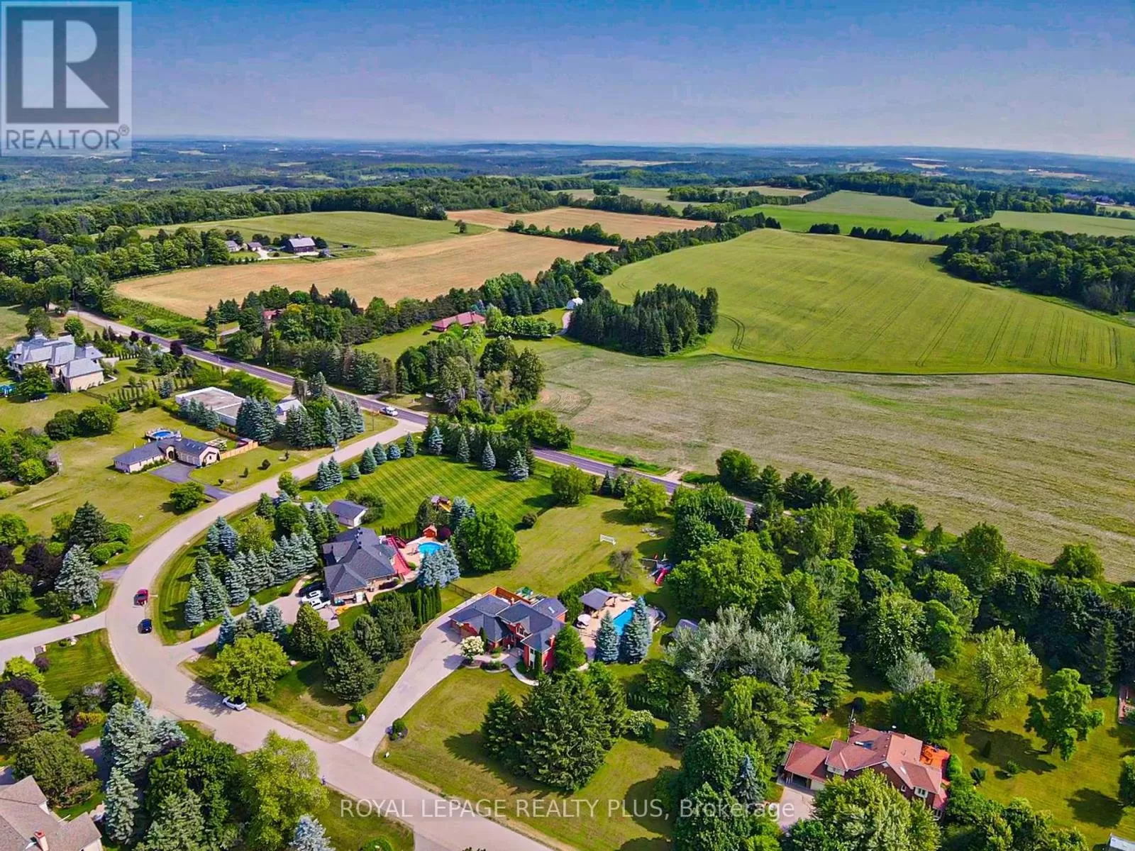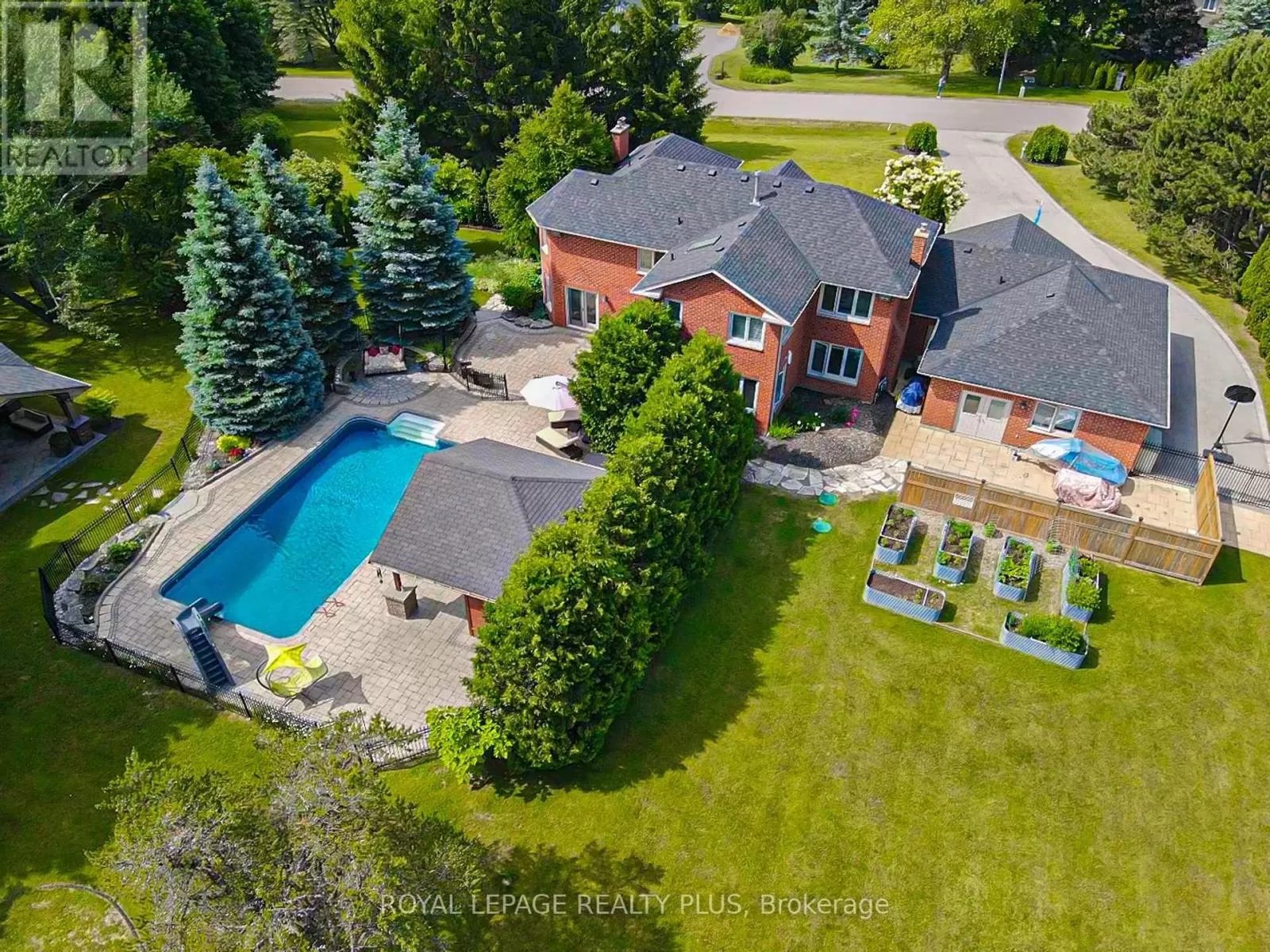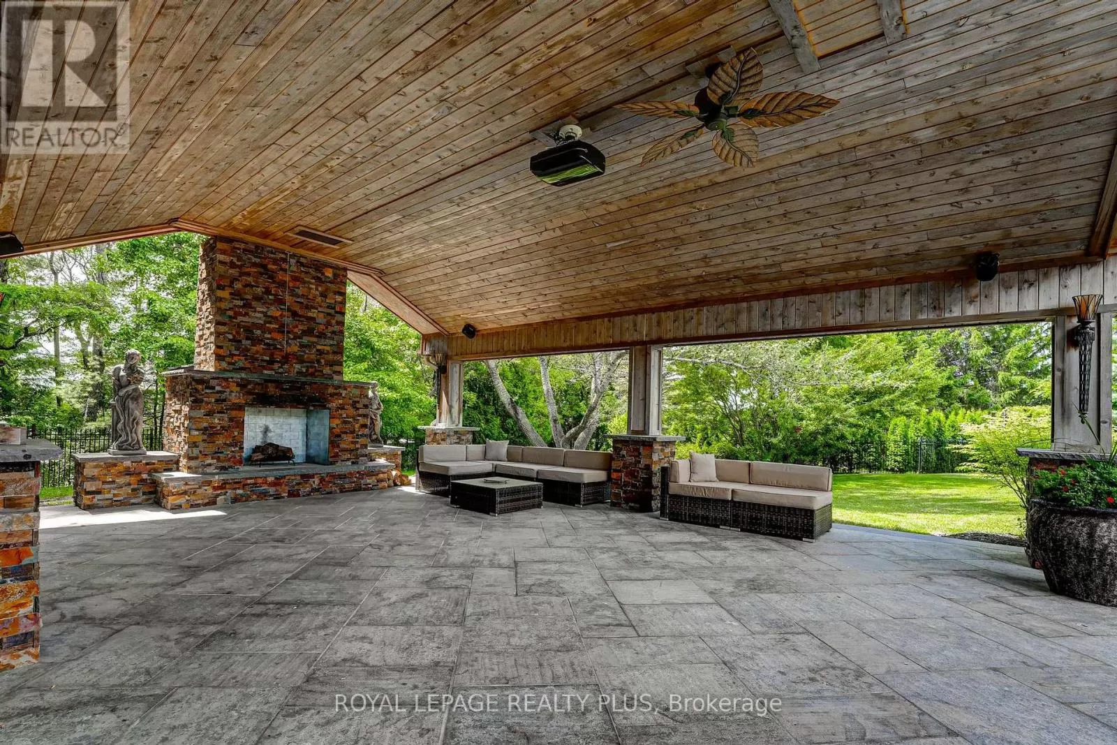 Old Church Rd and Mt Pleasant A rare opportunity to own an elegant estate with sweeping views of the Toronto skyline. Nestled on a beautifully landscaped, fully fenced lot, this remarkable property offers ultimate privacy and luxury. The grounds feature a saltwater pool with a dedicated pool house, an expansive covered outdoor pavilion with cathedral ceiling, fireplace, and theatre, plus a wood sauna, large workshop, and a long, gated driveway. Mature trees, iron fencing, and curated gardens create a truly serene setting. Inside, the home showcases refined living with generous principal rooms, stunning sightlines, and an open-concept design that blends seamlessly with the outdoors. The upper level offers four spacious bedrooms, including a serene primary suite complete with a walk-in closet and spa-inspired ensuite. The lower level is a warm, inviting retreat with entertaining space and a home office. A property of this scale, setting, and versatility is an exceptional offering just beyond the city. (id:27476)