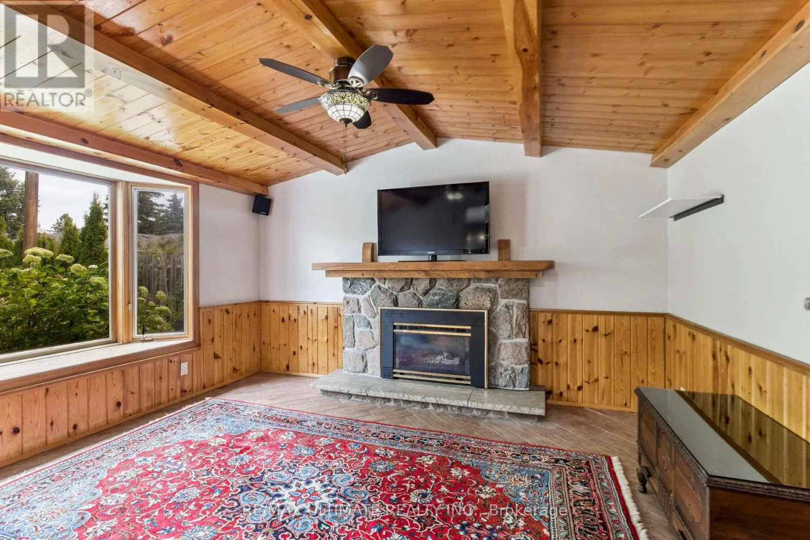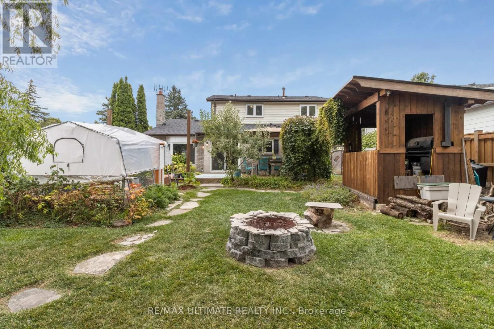 Humber Valley Heritage Trail 40 Birchview Crescent, Bolton Welcome to this charming family home on a kid-safe street, just steps from schools. The main floor showcases maple hardwood floors, a large vaulted kitchen with island and walkout to the backyard, plus a sunken family room with cozy fireplace, formal dining, living room, and powder room. Upstairs, you'll find 3 spacious bedrooms, including a primary suite with walk-in closet, ensuite shower, and jacuzzi tub, along with another full bath. The finished basement offers a rec room, bar, laundry, and bamboo floors with ample storage. Outside is a true gardeners dream: a deck, raised vegetable beds, lush landscaping, mature trees (including two 40-ft curly willows), fire pit, gardening shed, and outdoor bar with concrete counter perfect for entertaining. A rare opportunity to own a home that combines comfort, convenience, and natural beauty. (id:27476)