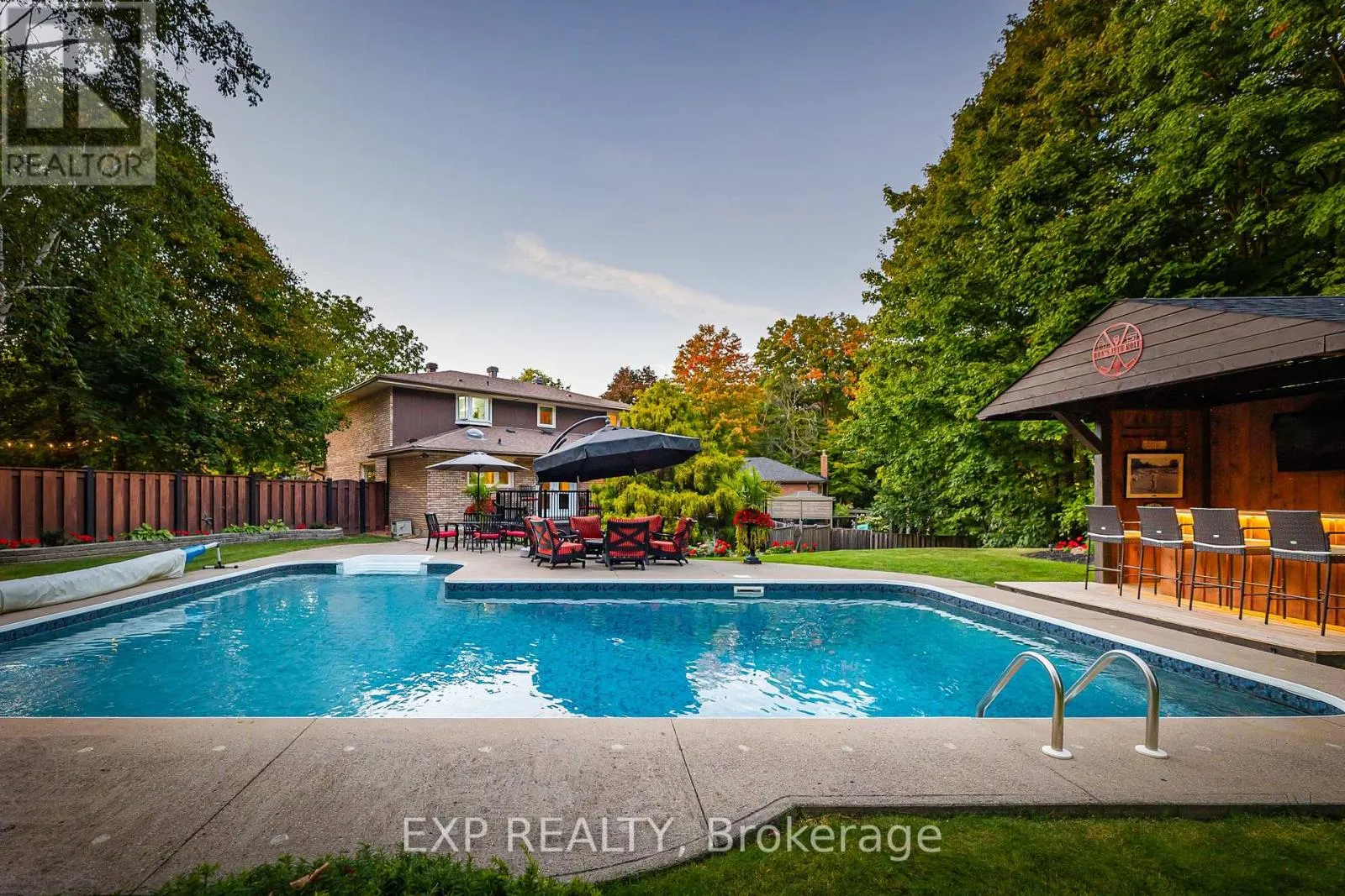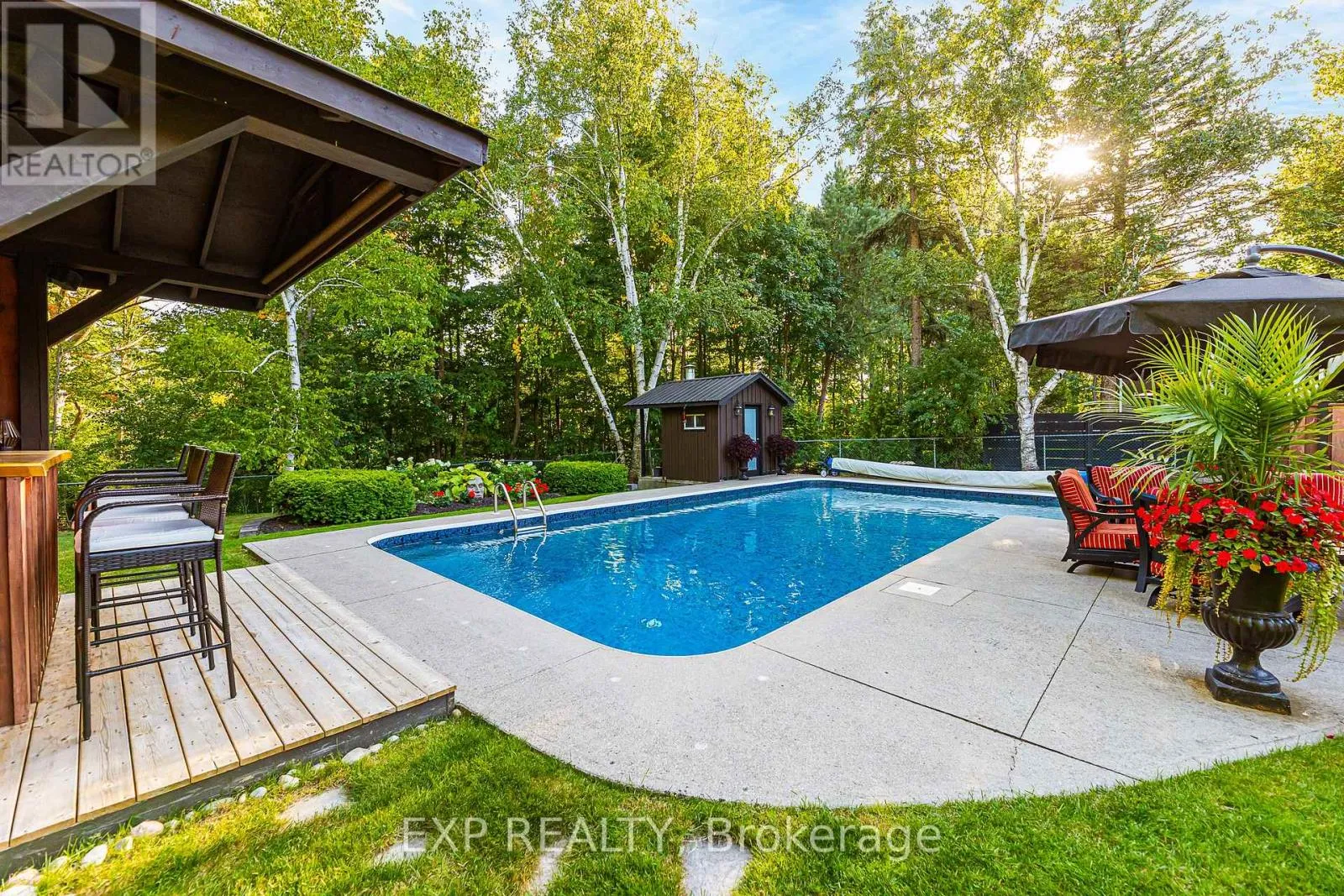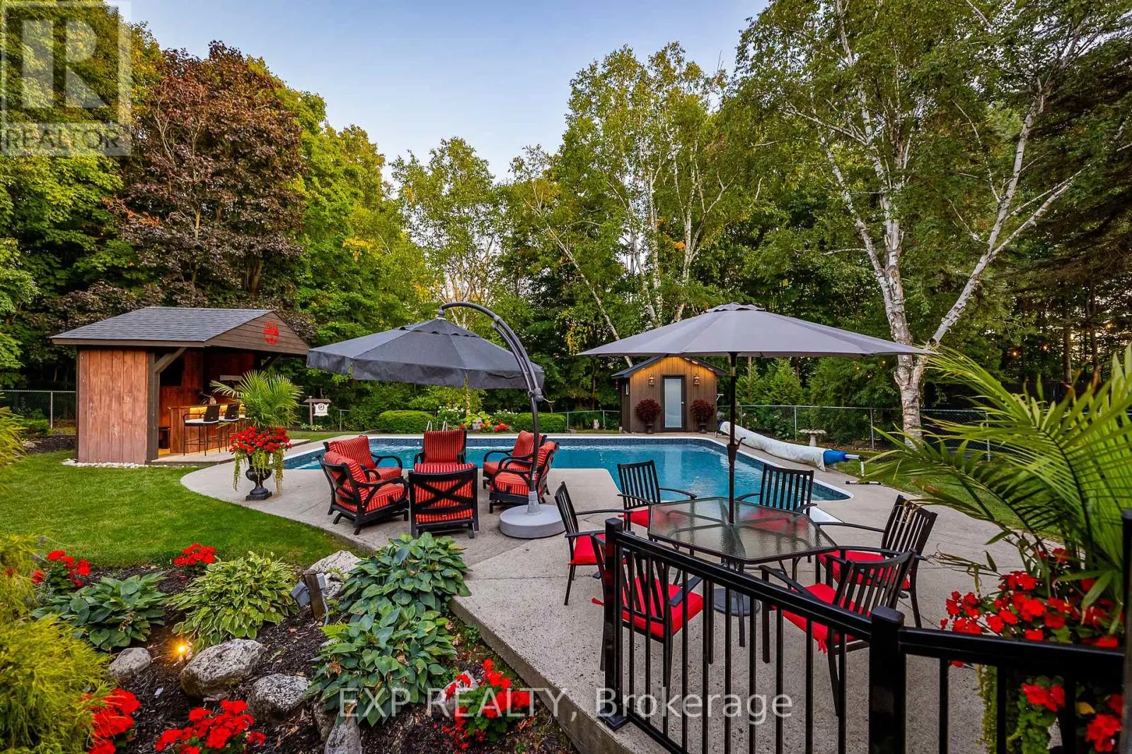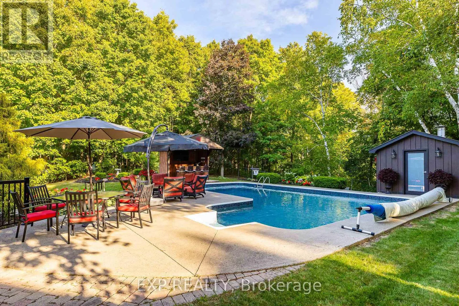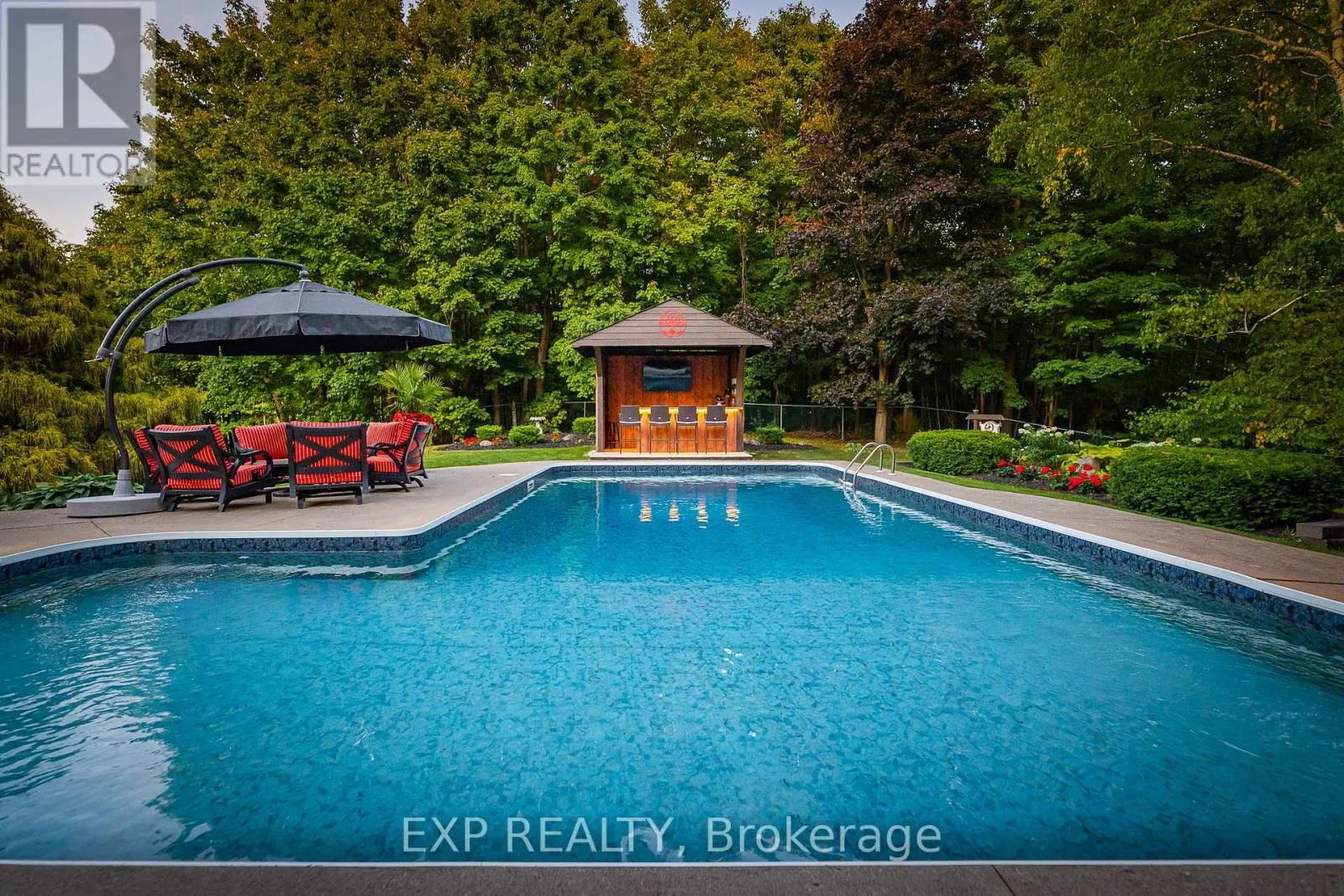 Humber Lea Rd/Crestwood Rd/Little Court Welcome to 160 Little Court, a rare offering on Boltons most exclusive 7-home private court. This exceptional 4-bedroom family residence sits on nearly half an acre with no neighbours behind, backing onto protected conservation. The true showstopper is the sun-drenched southeast-facing backyard a one-of-a-kind retreat featuring a heated saltwater pool, pool bar, and pool shed, with expansive green space still left for kids, pets, or gardens. Complete privacy, morning-to-afternoon sun, and tranquil views make this backyard unmatched in Bolton. Inside, discover a bright and spacious layout with a formal living room (gas fireplace, bay window, built-ins), elegant dining room, open-concept family room (gas fireplace, custom shelving), and a large family-sized kitchen with granite counters, stainless appliances, and walkout to your backyard paradise. Upstairs offers 4 generous bedrooms, including a renovated primary ensuite with double sinks and walk-in shower. The walkout basement features a cedar-lined closet, large cold room, and wood stove. With parking for 8, renovated bathrooms, and walk-to-town convenience near schools, parks, and trails, this extraordinary home is designed for the family who deserves the rarest combination: privacy, prestige, and unforgettable outdoor living. (id:27476)