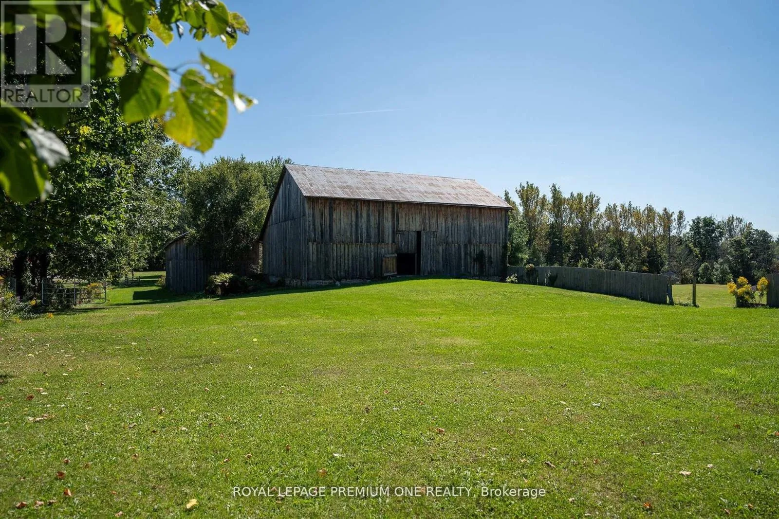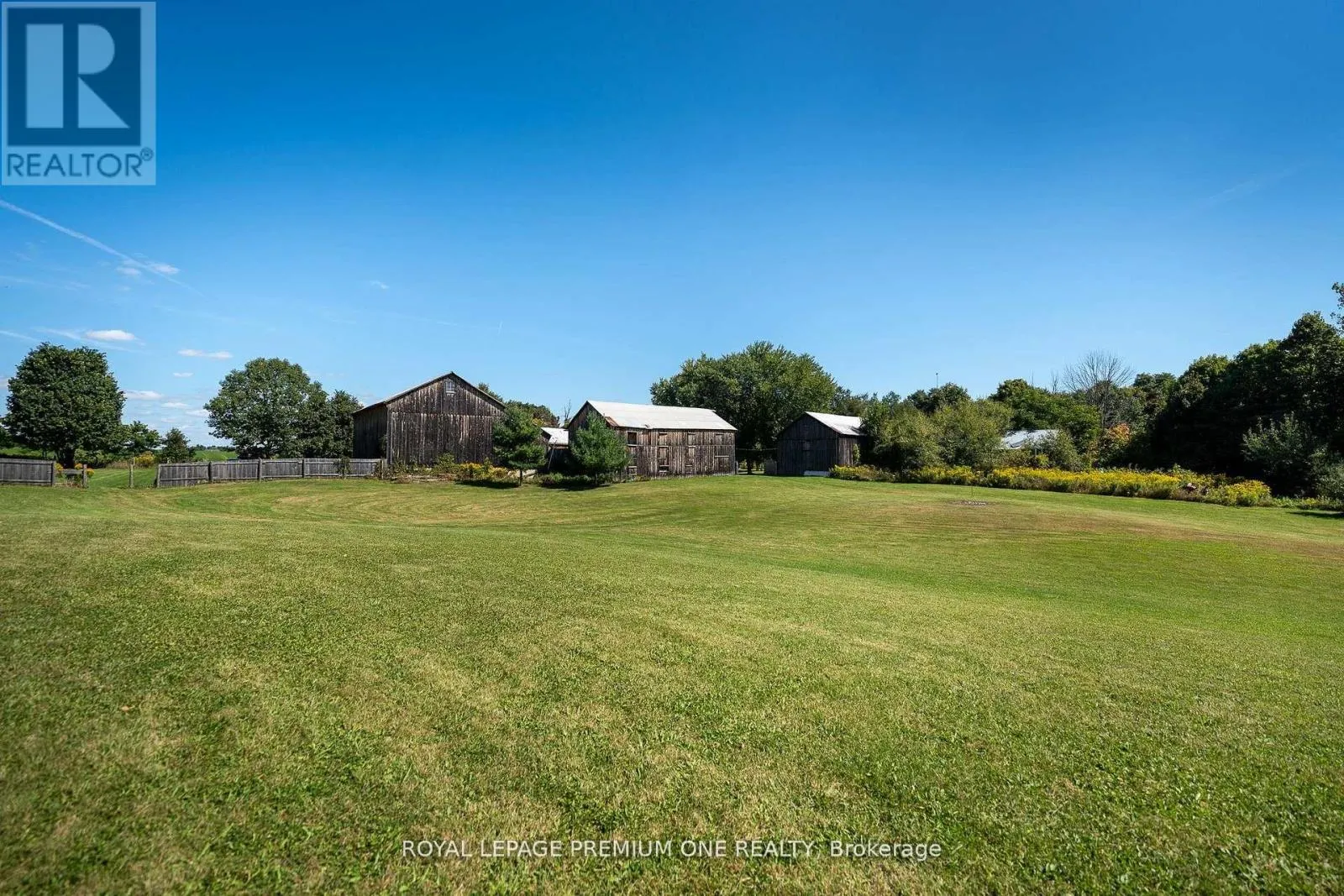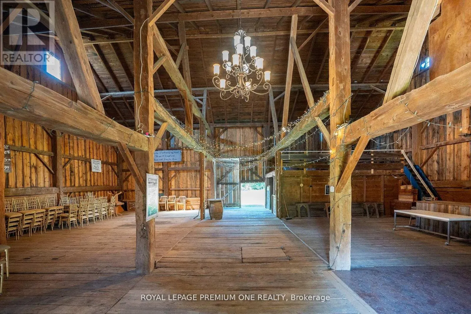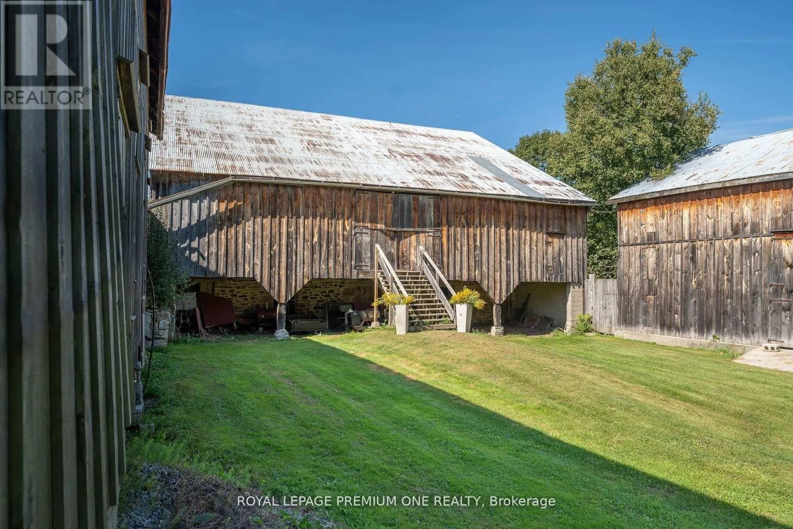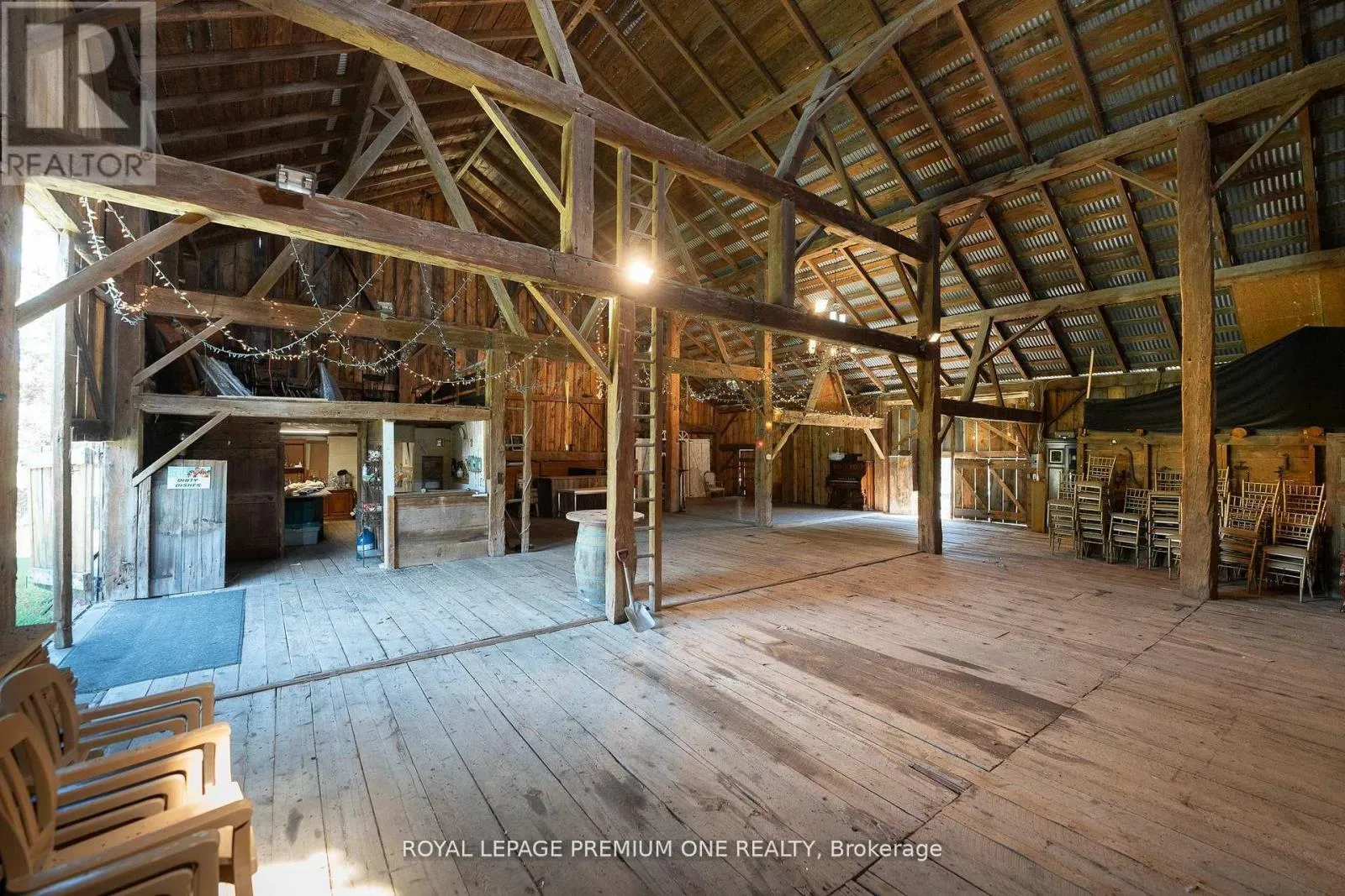HEART LAKE ROAD AND KING STREET Bursting with charm and storied in history. This 1864 gem and 5 out buildings are with period features and old-world character. The Alexander Smith farmhouse is a good representation of the vernacular style known as "Ontario Gothic". This style is the L-Shaped floor plan, polychromatic brick patterning, buff brick quoins and voussoirs. The residence also has coursed polychromatic end chimneys, a projecting bay window, lancet & paired gable windows. A porch with decorative bargeboards wraps around the NE corner of the house. Attached to the NW corner of the house is the summer kitchen & brick carriage house with the original farm bell on the roof. Located across the farm lane, are the 5 out buildings. The buildings consist of the chicken house, implement shed, and three timber frame barns set in a U-Shape, all with medium pitched gable roofs & board and batten cladding. The farm complex is surrounded by a mix of open fields, natural growth cedar & areas of reforestation. A cedar rail fence lines the property. Make this property your hobby farm or transform it into an income property by way of hosting events like weddings or corporate gatherings. How about turning it into a wellness retreat or a bed & breakfast. Even add additional outbuildings and increase your income capabilities. The opportunities at this farm complex are endless. (id:27476)