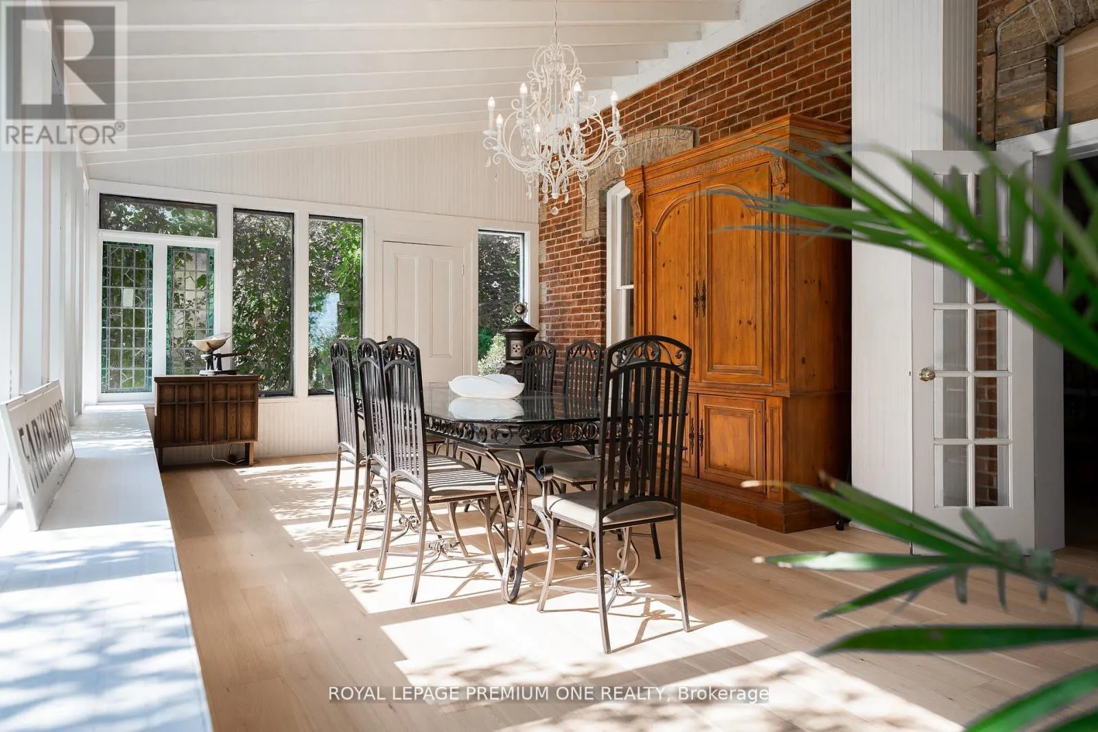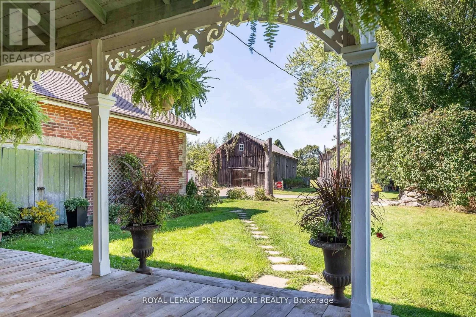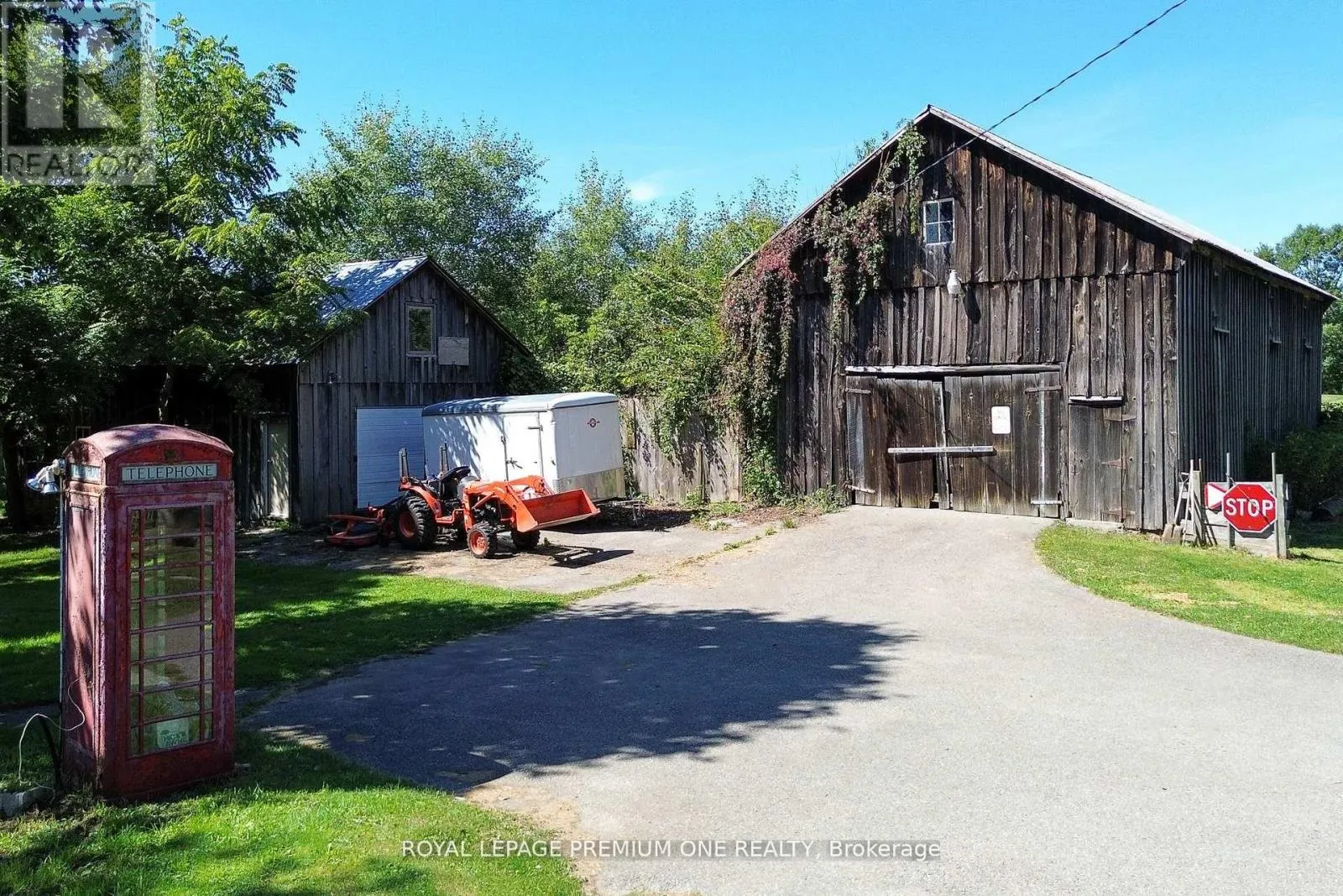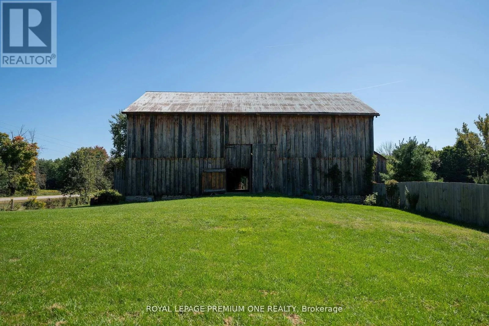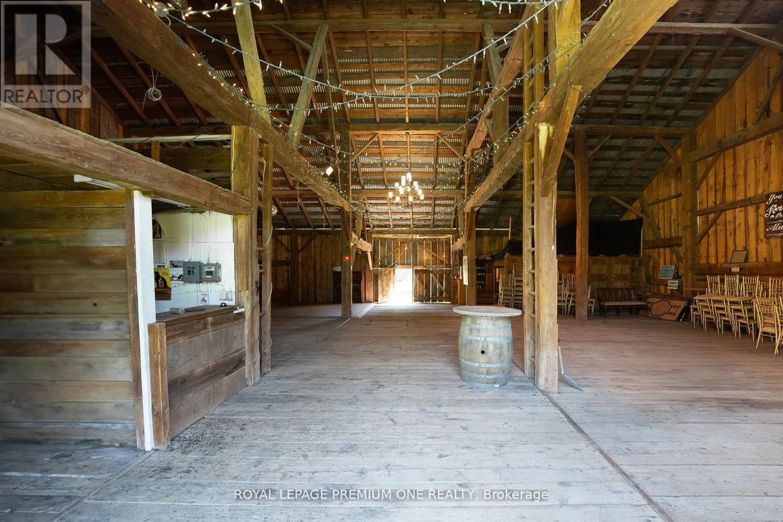 HEART LAKE ROAD AND KING STREET Bursting with charm and storied in history. This 1864 gem and 5 out buildings are with period features and old-world character. The Alexander Smith farmhouse is a good representation of the vernacular style known as "Ontario Gothic". This style is the L-Shaped floor plan, polychromatic brick patterning, buff brick quoins and voussoirs. The residence also has coursed polychromatic end chimneys, a projecting bay window, lancet & paired gable windows. A porch with decorative bargeboards wraps around the NE corner of the house. Attached to the NW corner of the house is the summer kitchen & brick carriage house with the original farm bell on the roof. Located across the farm lane, are the 5 out buildings. The buildings consist of the chicken house, implement shed, and three timber frame barns set in a U-Shape, all with medium pitched gable roofs & board and batten cladding. The farm complex is surrounded by a mix of open fields, natural growth cedar & areas of reforestation. A cedar rail fence lines the property. Make this property your hobby farm or transform it into an income property by way of hosting events like weddings or corporate gatherings. How about turning it into a wellness retreat or a bed & breakfast. Even add additional outbuildings and increase your income capabilities. The opportunities at this farm complex are endless. (id:27476)