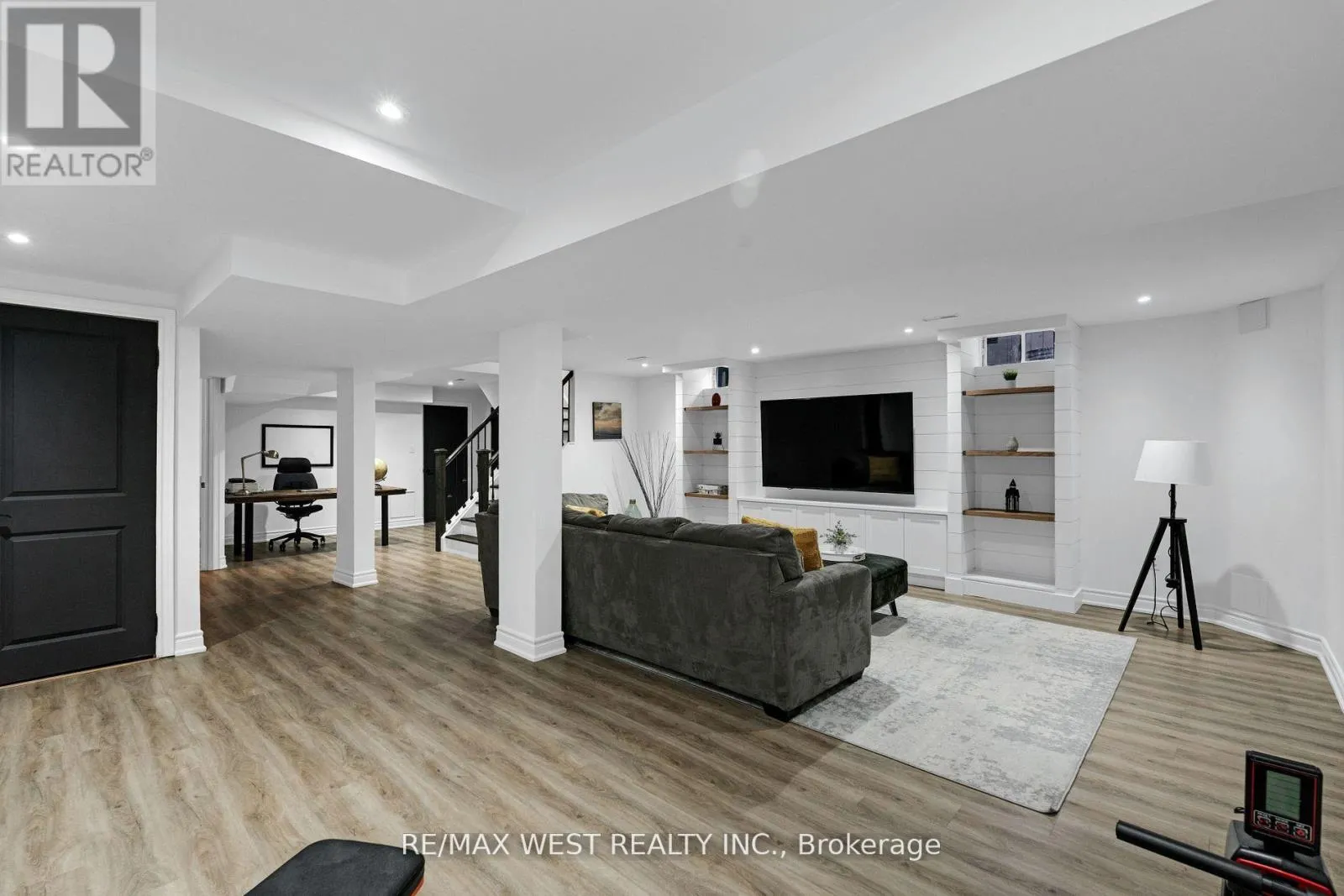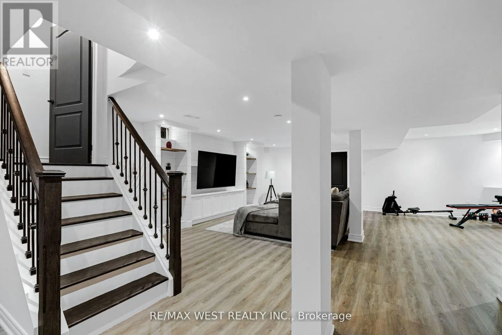 King St/Station Rd Welcome to 43 Wakely Blvd, Bolton - Bright, Spacious, and Move-In Ready Pride of ownership is clear in this beautifully maintained 4-bedroom home, ideally located in one of Bolton's most family-friendly neighbourhoods. Set on a private, fully fenced lot with a covered front porch, double garage, and built-in sprinkler system, this home blends comfort and practicality inside and out. The main floor features a bright open-concept layout with hardwood flooring, a cozy family room with a gas fireplace, and a spacious kitchen with quartz counters, stainless steel appliances, and a sunny breakfast area that opens to a large deck-perfect for outdoor dining. A generous laundry/mudroom with garage access adds to the convenience. Upstairs, the primary suite includes a walk-in closet and an elegant 4-piece ensuite with a soaker tub. Three additional bedrooms provide plenty of space for a growing family. The finished basement offers a large rec room with custom built-in, a dedicated home office, and ample storage- ideal for movie nights, working from home, or a kids' play zone. Close to schools, parks, shopping, and commuter routes, this home checks all the boxes for modern family living. (id:27476)