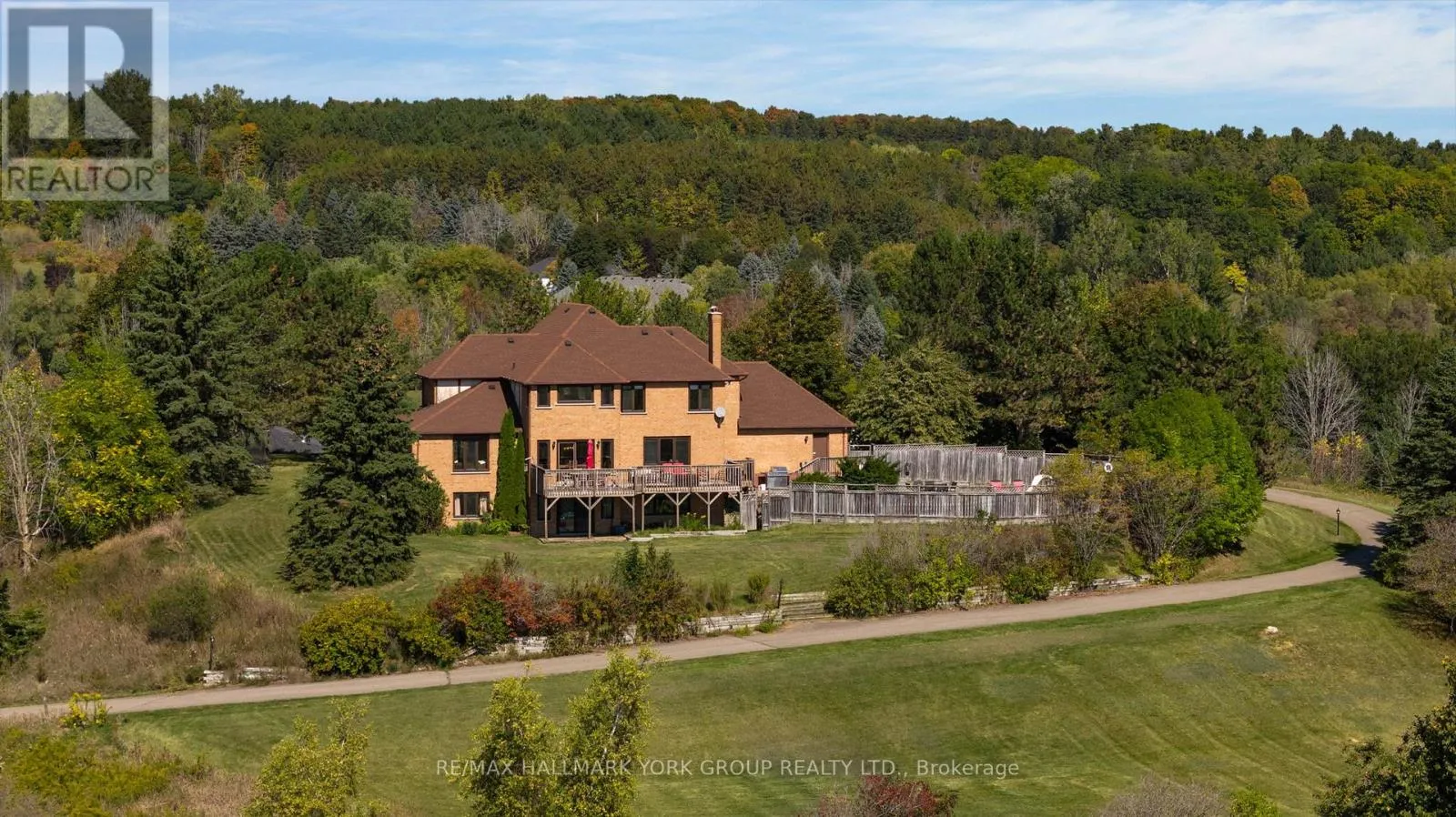Cross Streets: Old Church Rd & Mount Hope Rd. ** Directions: Off Old Church Rd (Btwn Mount Hope & Mount Pleasant), East of Hwy 50. Perched high on a hill in one of Palgrave's most sought-after estate communities, this over 4000 sq ft home sits on nearly 3.5 private acres surrounded by mature trees and breathtaking panoramic views of Caledon. Featuring 5 bedrooms and 4 bathrooms, this elegant home is filled with natural light from expansive windows that frame stunning vistas in every direction. Designed for both comfort and entertaining, the property boasts three brick fireplaces, a finished walkout basement, and a custom wine cellar. The heart of the home includes a bright kitchen with a built-in gas cooktop and spacious principal rooms, while outdoors you'll enjoy sun all day by the inground pool, plus a cedar lined sauna for year-round relaxation.With its seamless blend of space, privacy, and luxury features, plus newer roof, furnace, and windows already in place, this estate is an exceptional opportunity to create your dream retreat in one of Caledon's most prestigious enclaves. (id:27476)