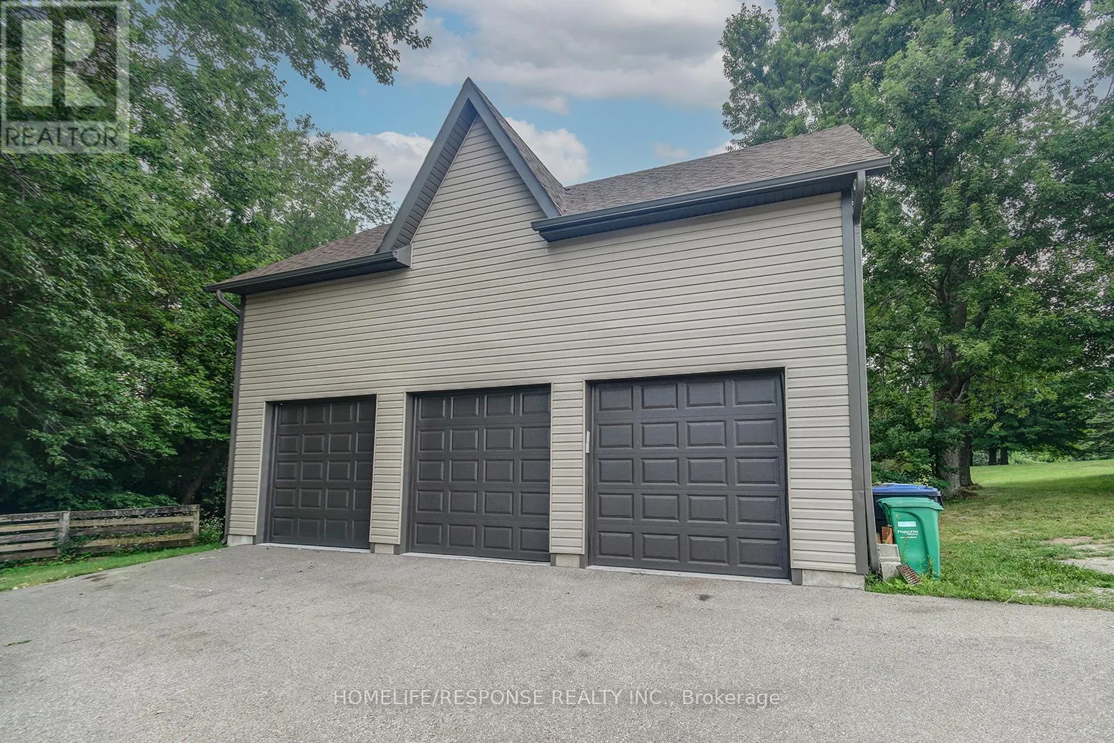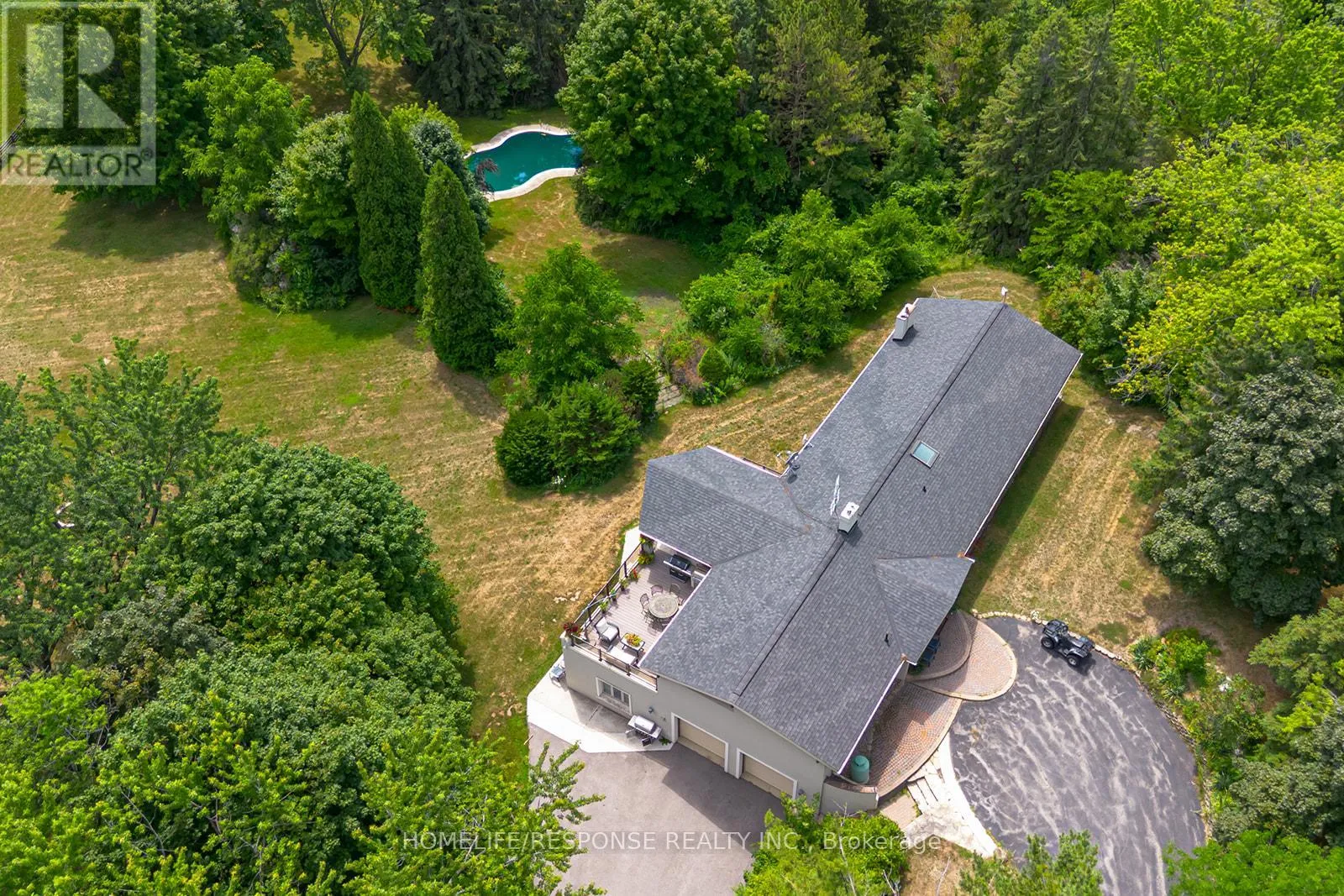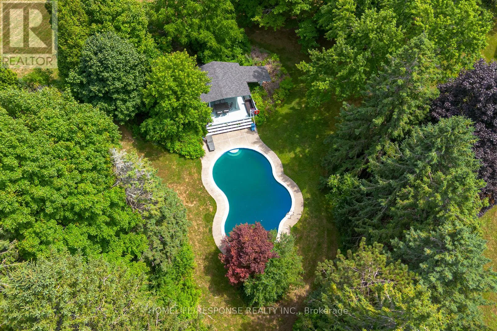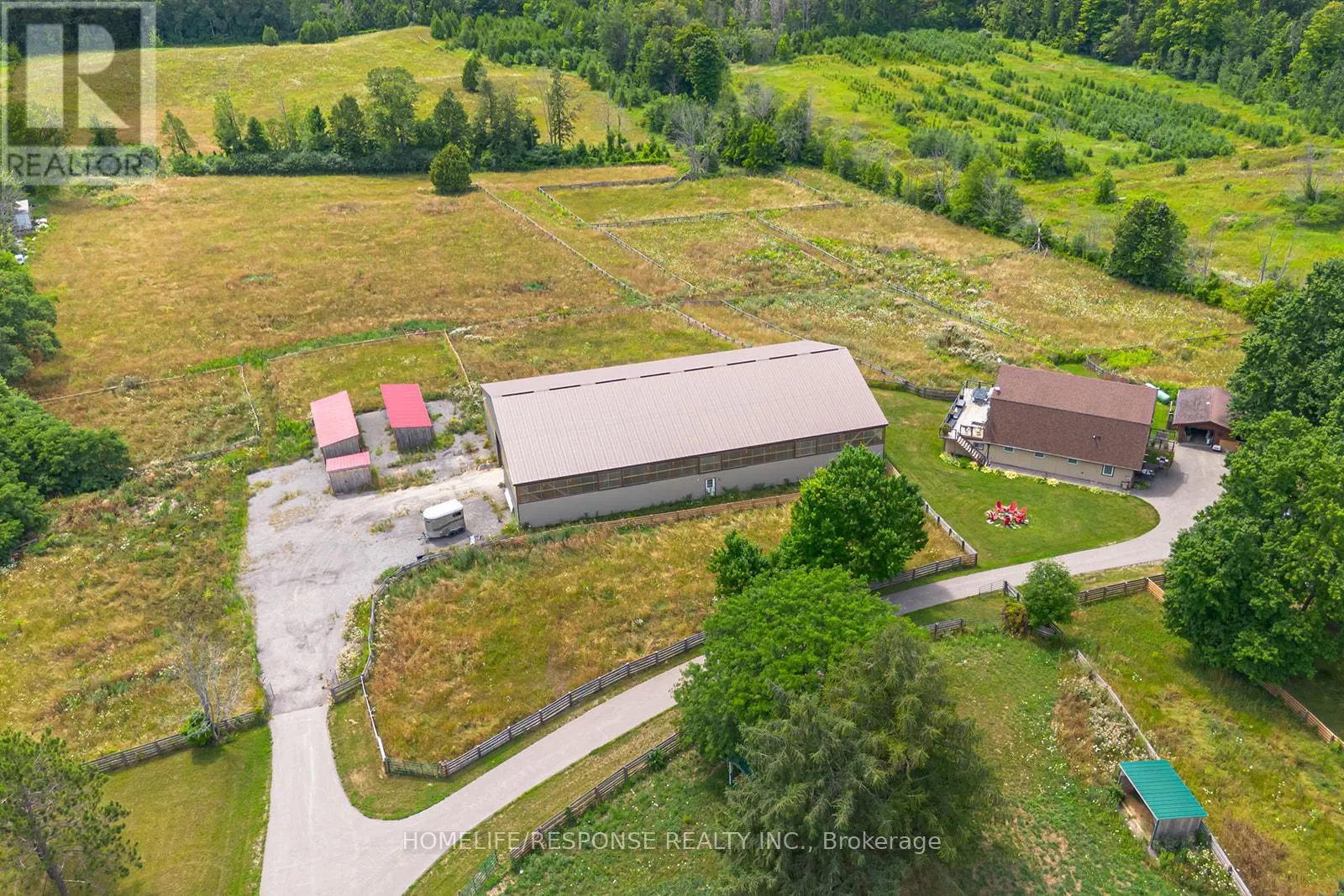 OLD CHURCH RD/CENTREVILLE CREEK ROAD A Rare Caledon Estate. Welcome to this beautiful executive bungalow, privately nestled atop 25+ rolling acres in coveted Caledon. The main residence features a bright, open-concept layout with expansive living spaces, a family-style kitchen, and stunning countryside views. The spacious primary suite includes a luxe 4-piece ensuite, complemented by two additional bedrooms. A fully finished lower level adds a large family room with fireplace and wet bar, gym, office, and extra bedroom. The property offers a built-in 2-car garage, a separate detached 2-car garage, and plenty of additional parking. A second private drive leads to a renovated modern guest house with two self-contained apartments (2-bed & 3-bed) and a detached 3-car garage ideal for extended family, rental income, or multigenerational living. Equestrians will love the large horse arena, while outdoor amenities include a saltwater pool, tennis court, and lush landscaped grounds. Set on a gentle hilltop, enjoy panoramic views of the valley, paddocks, and beyond. A truly one-of-a-kind opportunity offering luxury, privacy, and endless potential. Please do not walk on the property without a confirmed appointment. (id:27476)
