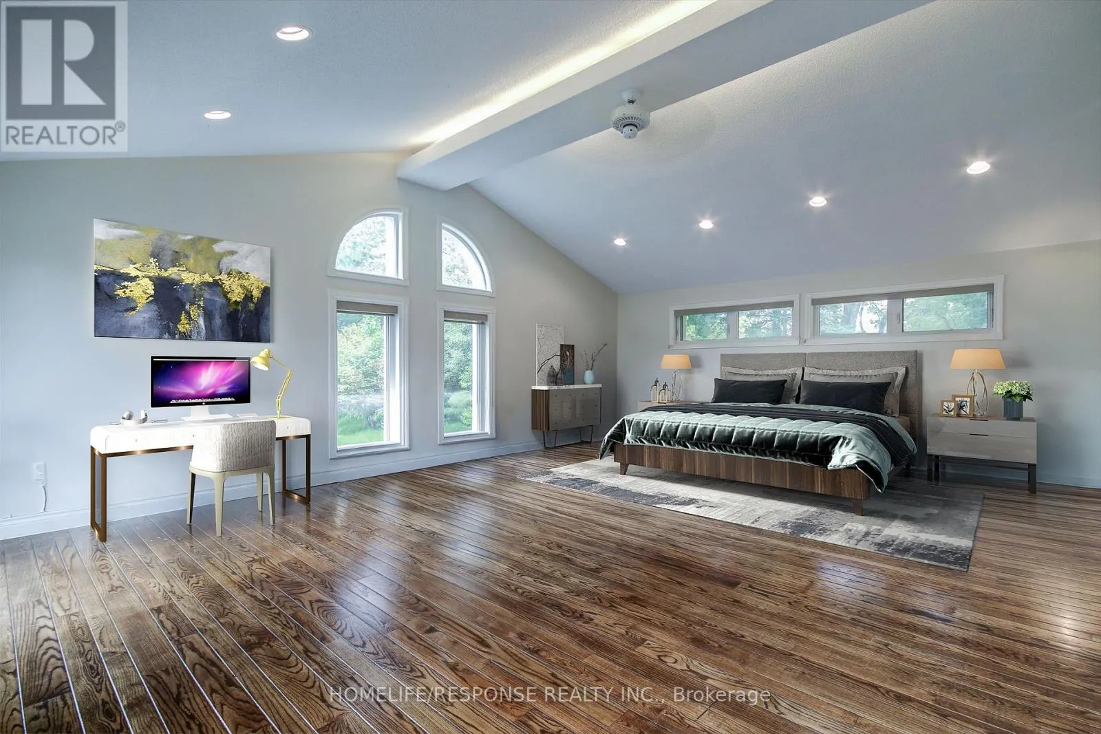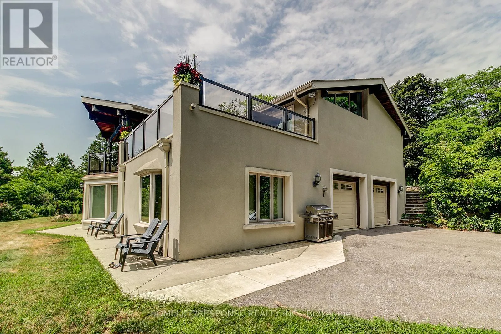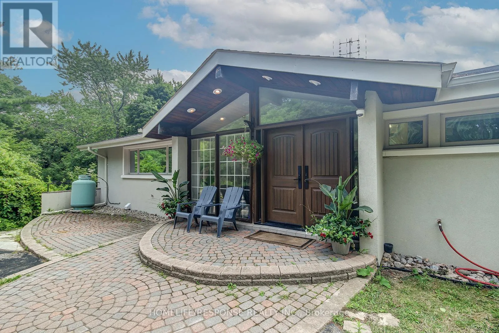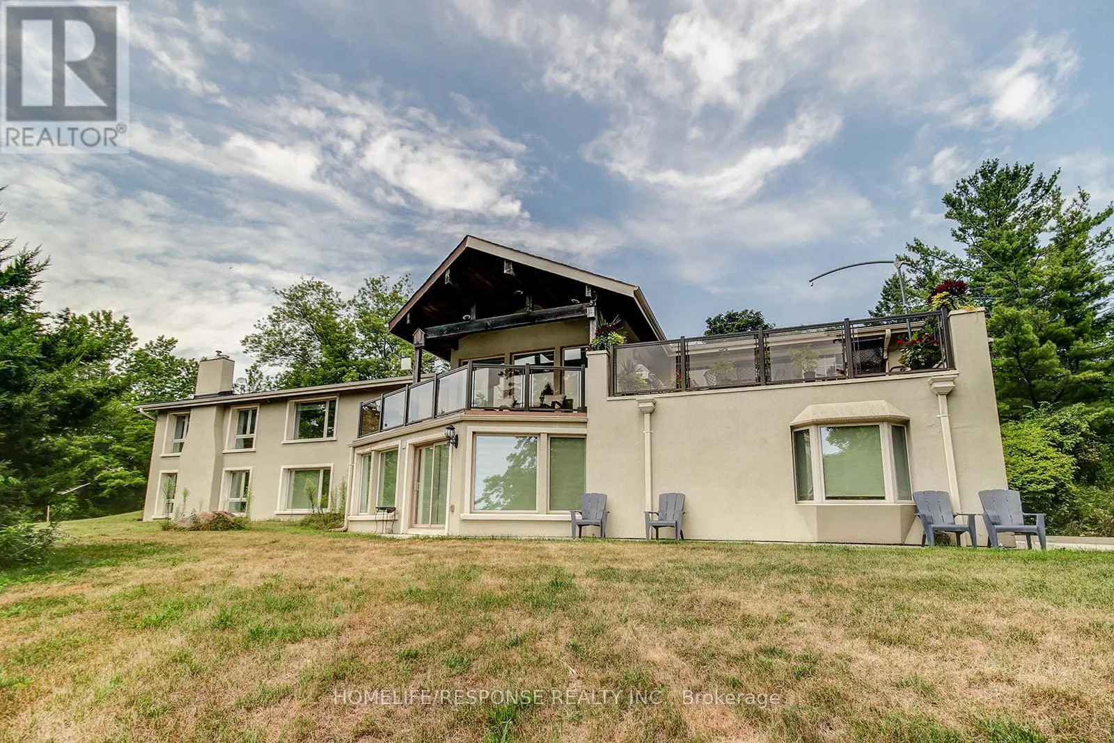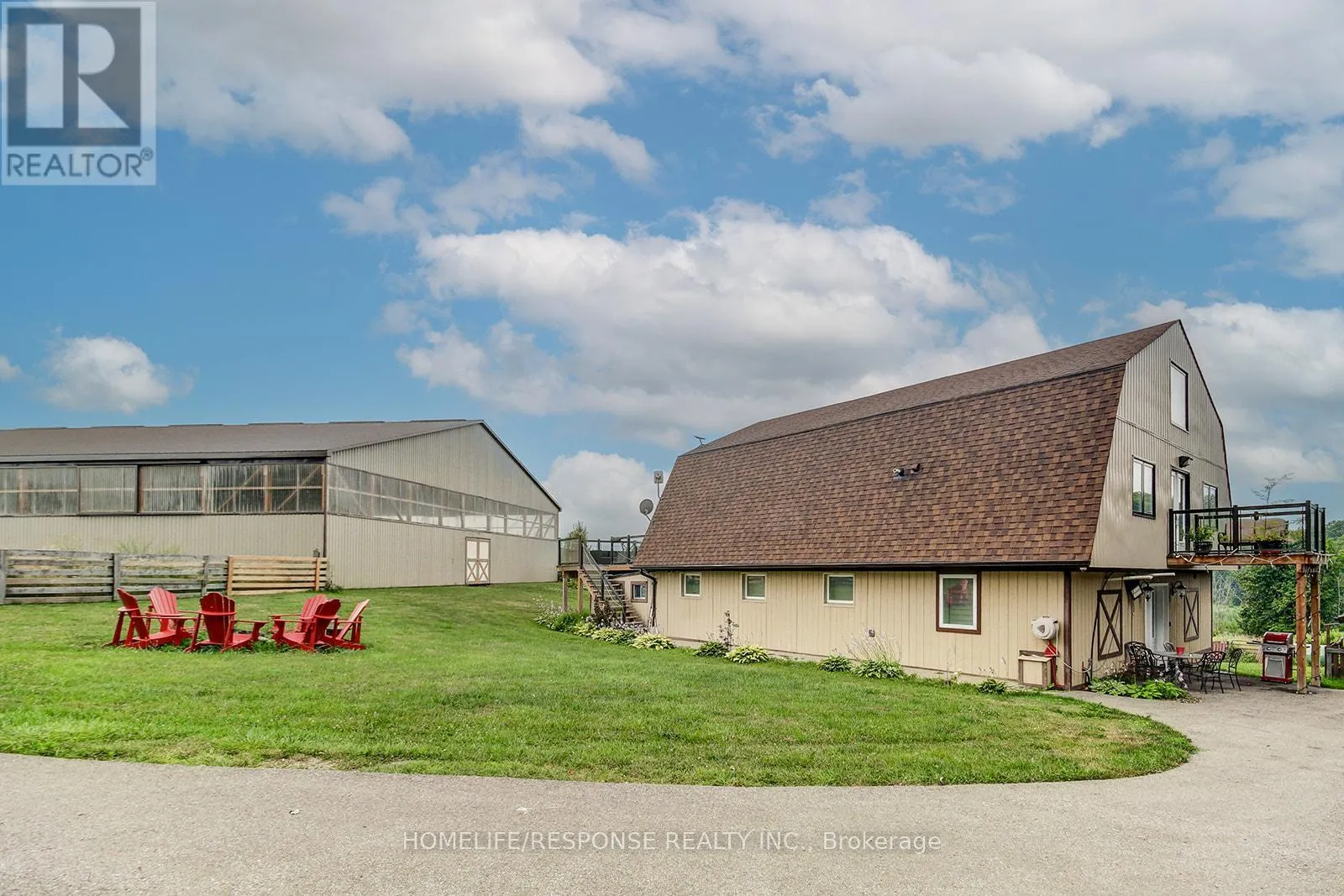 OLD CHURCH RD/CENTREVILLE CREEK ROAD A Rare Caledon Estate. Welcome to this beautiful executive bungalow, privately nestled atop 25+ rolling acres in coveted Caledon. The main residence features a bright, open-concept layout with expansive living spaces, a family-style kitchen, and stunning countryside views. The spacious primary suite includes a luxe 4-piece ensuite, complemented by two additional bedrooms. A fully finished lower level adds a large family room with fireplace and wet bar, gym, office, and extra bedroom. The property offers a built-in 2-car garage, a separate detached 2-car garage, and plenty of additional parking. A second private drive leads to a renovated modern guest house with two self-contained apartments (2-bed & 3-bed) and a detached 3-car garage ideal for extended family, rental income, or multigenerational living. Equestrians will love the large horse arena, while outdoor amenities include a saltwater pool, tennis court, and lush landscaped grounds. Set on a gentle hilltop, enjoy panoramic views of the valley, paddocks, and beyond. A truly one-of-a-kind opportunity offering luxury, privacy, and endless potential. Please do not walk on the property without a confirmed appointment. (id:27476)