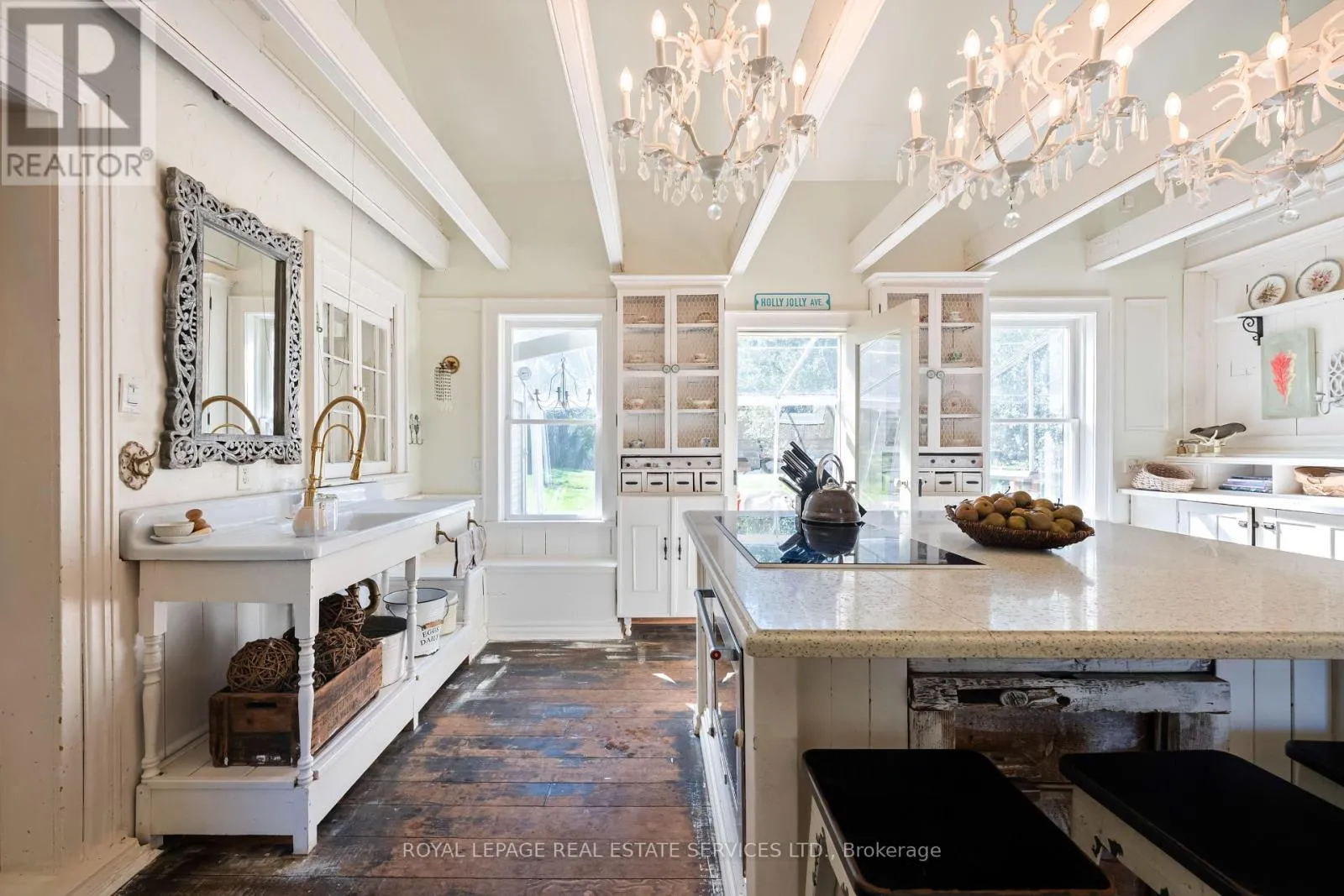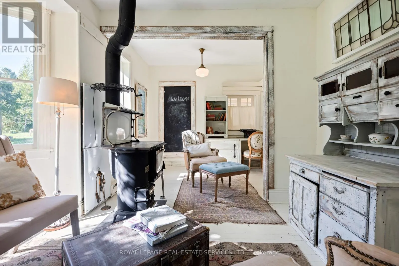 Gore Rd + Hwy 9 Two homes and one magical location, perfect for homesteading nestled on 25.5 acres of carefully maintained with organic practices under the protection of the Nottawasaga Conservation and (Oakridge Moraine protection easement). For over a decade, this land has been organically maintained, loved, nurtured, and left unharmed by chemicals ready for your next chapter of slow, meaningful living. The main residence is a love letter to simpler days, with original wide plank floors, a wood-burning fireplace in the kitchen, and a layout that invites warmth and connection. Share casual meals around the kitchen island or gather for unforgettable dinners in the grand dining room with hidden pantry. The living room radiates rustic elegance, while every bedroom holds its own kind of magic. The primary retreat includes a walk-in closet, studio space, and a fully wheelchair-accessible bathroom. A bright and airy sunroom offers the perfect place to sip morning coffee, read a book, or simply watch the seasons unfold in quiet beauty. A completely separate guest cottage provides space for visitors or 'Airbnb' potential, but with so much serenity, you may choose to keep it all to yourself. With so many areas to relax, indoors and out, there's no need for a cottage escape when you have it all right here. Geothermal and baseboard heating, plus wood fireplaces, keep the home efficient and cozy. A fresh spring-fed well provides excellent water potability, while a spring-fed pond adds a touch of wild beauty to the landscape. Surrounded by hundreds of acres of protected forest, you'll enjoy unmatched privacy, your own network of trails for hiking, snowshoeing or skiing, and the joy of watching animals roam freely or cared for in pens and a charming chicken coop. Just 25 minutes to Orangeville and a short drive to Hockley Valley. Imagine living the dream in this magical location that can be fully sustainable. (id:27476)